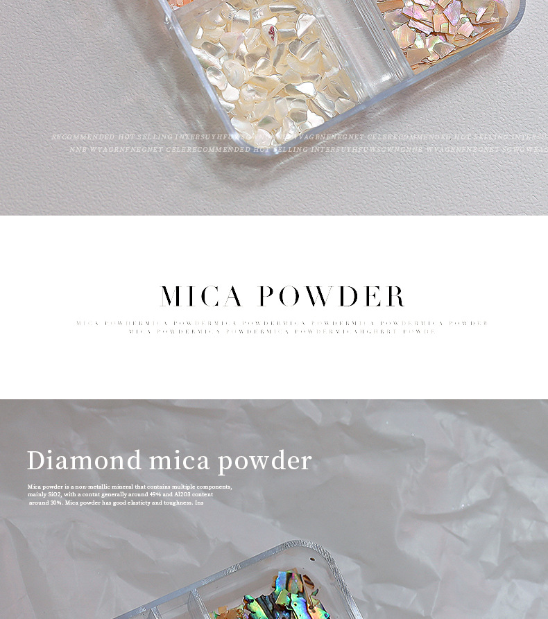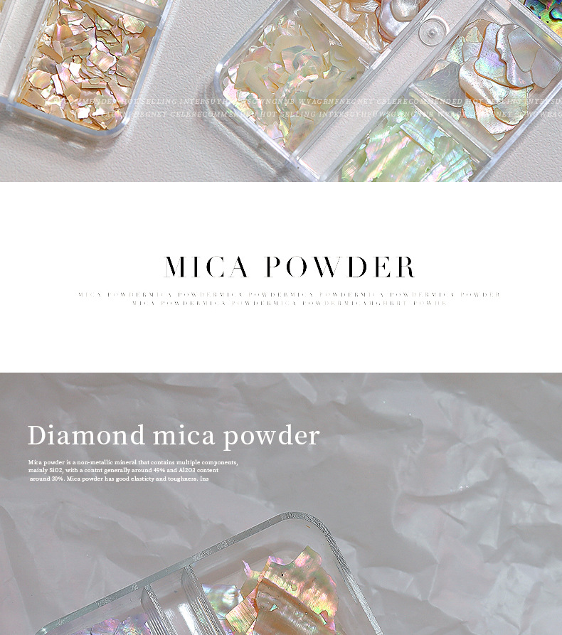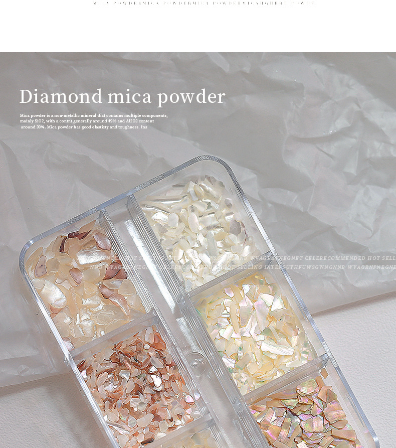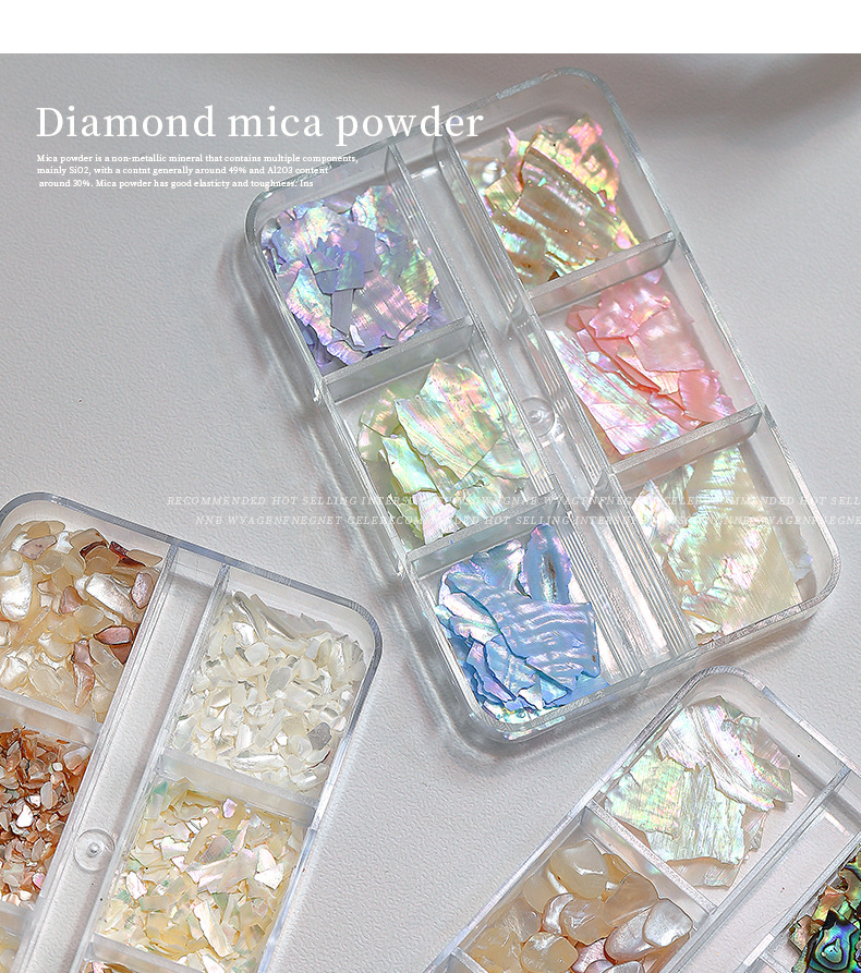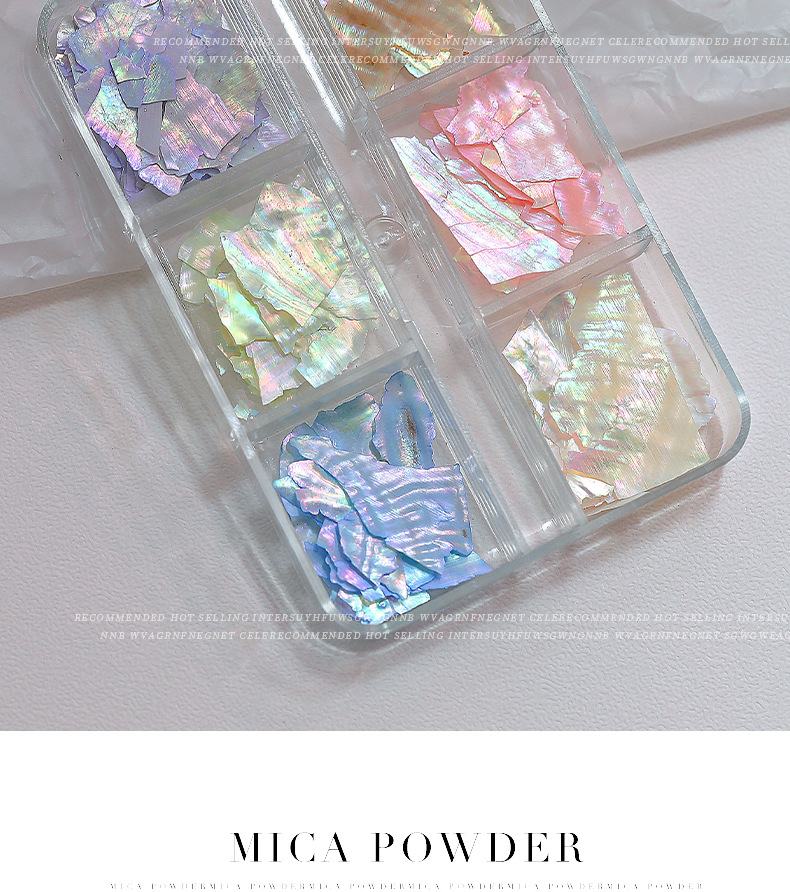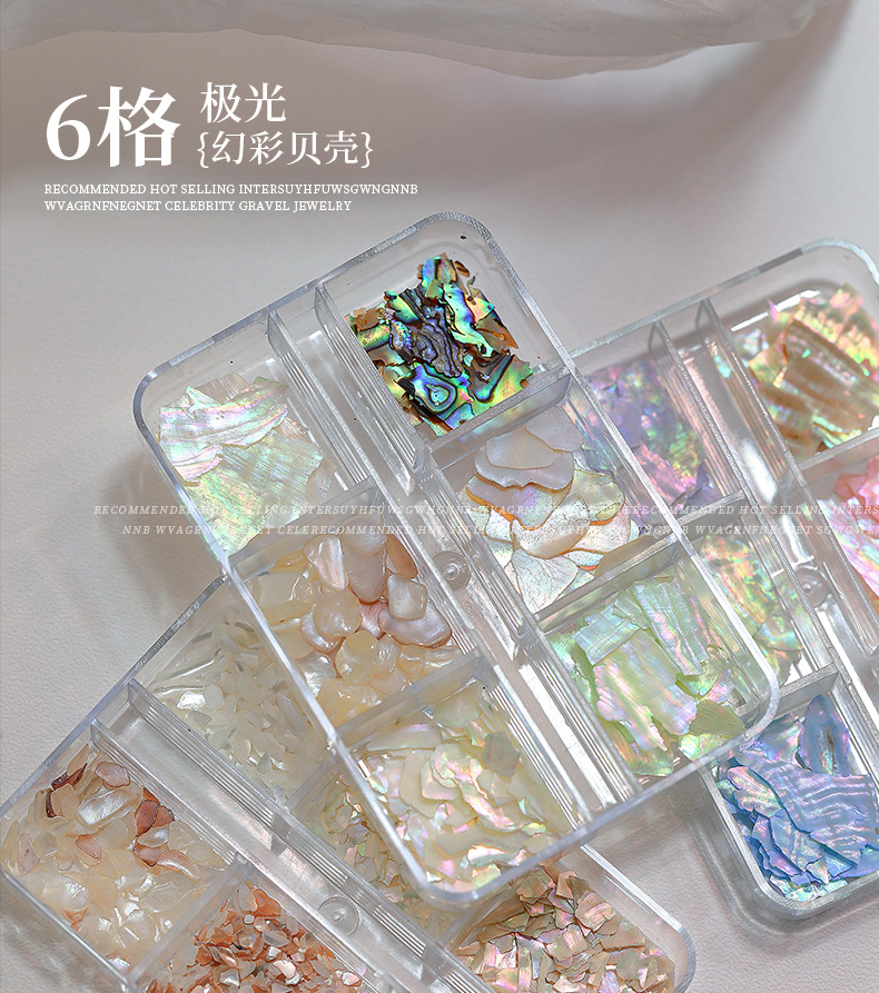 인터넷 유명 인사 새로운 6 그리드 네일 쥬얼리 오로라 매직 컬러 초박형 쉘 피스 올 매치 화이트 전복 피스 네일 액세서리