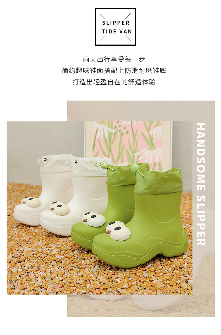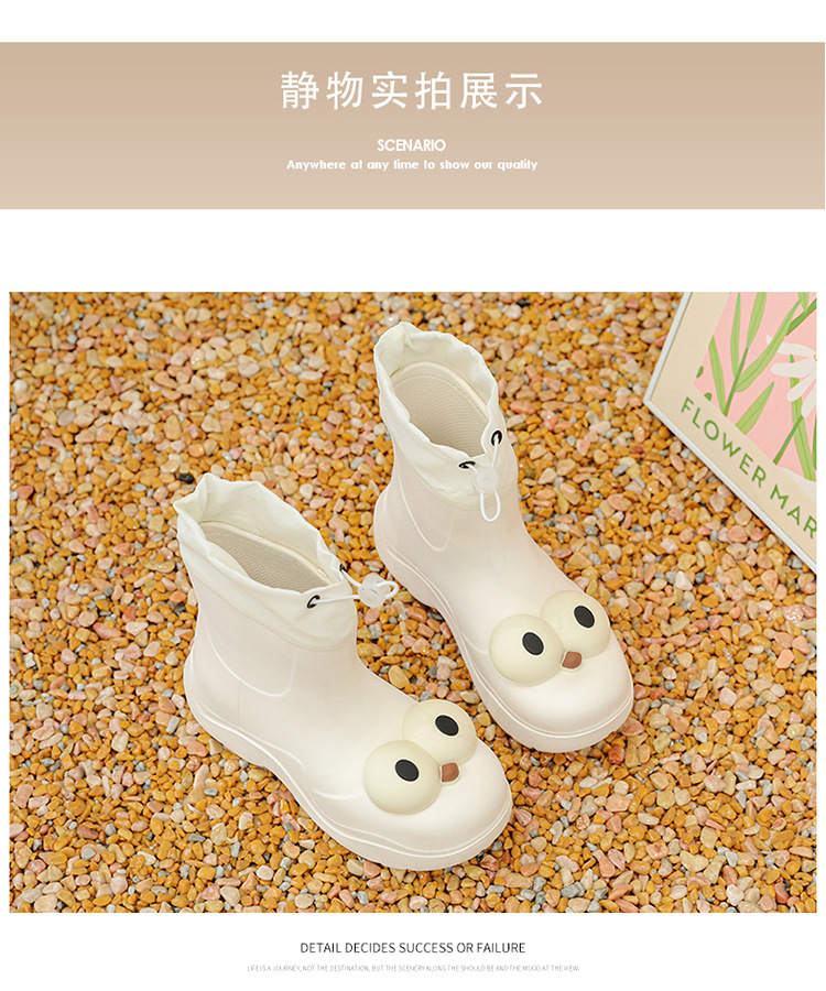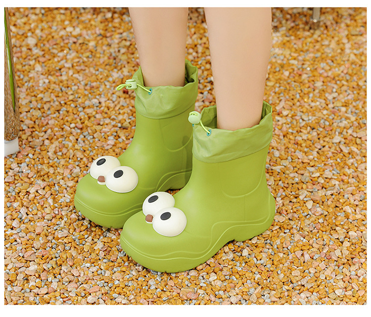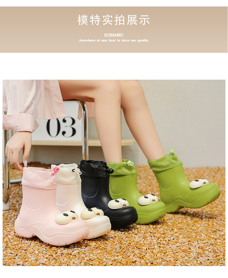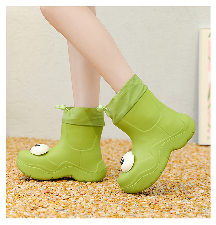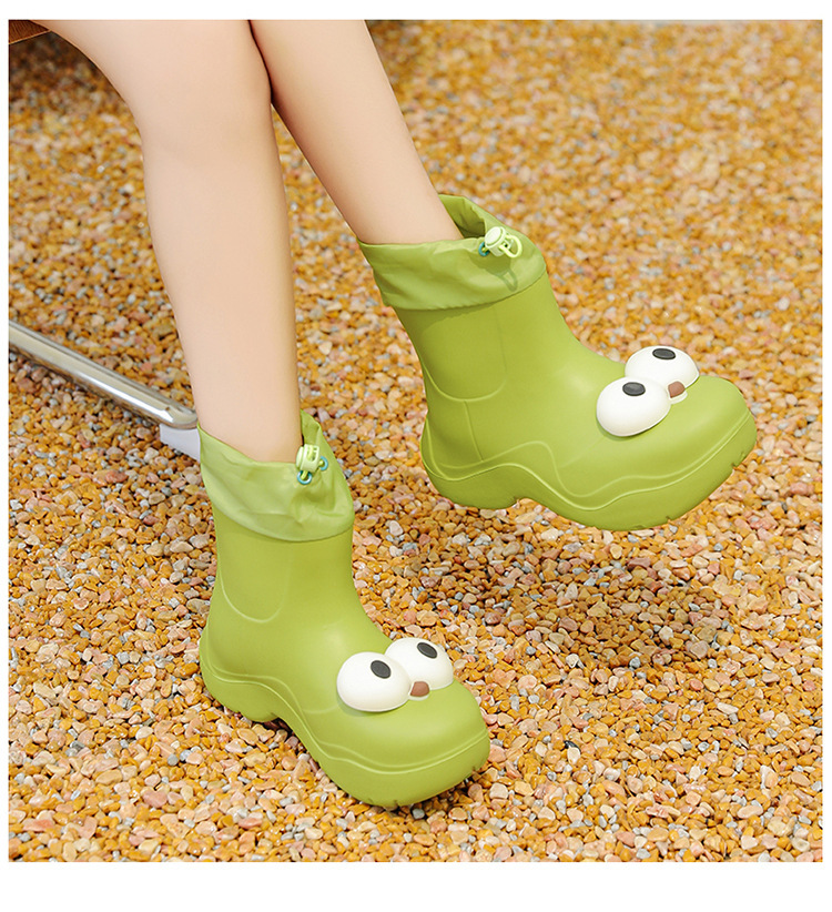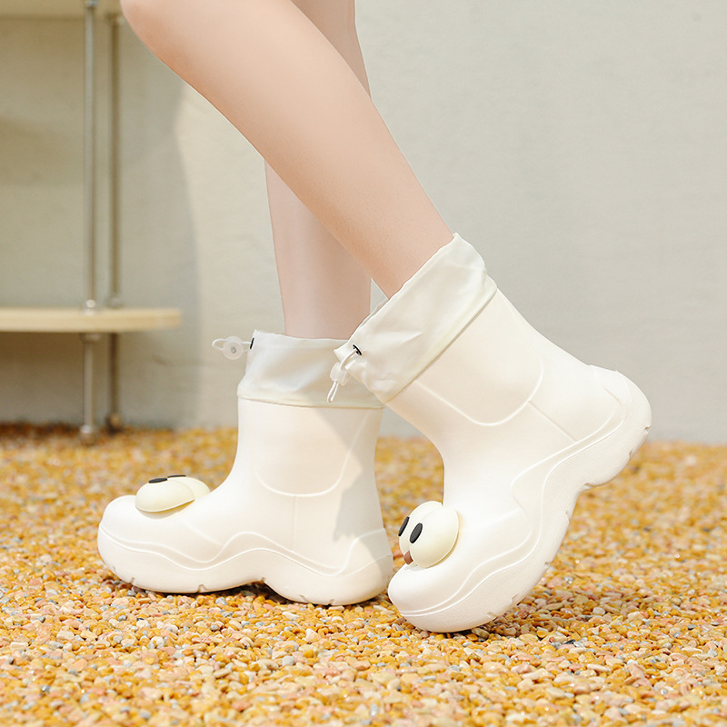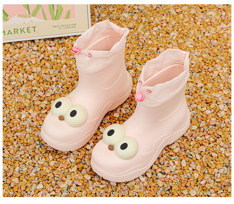 비 부츠 여성 중간 송아지 귀여운 큰 눈 새로운 스타일의 물 신발 여성 방수 미끄럼 방지 야외 장화 강화 오버 슈즈
