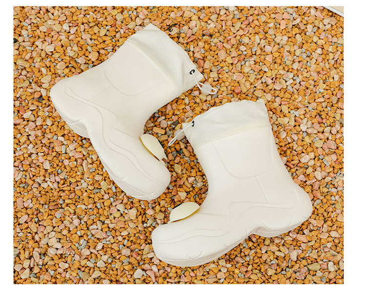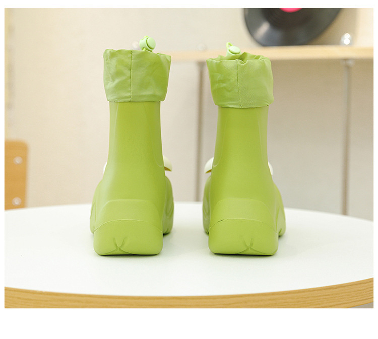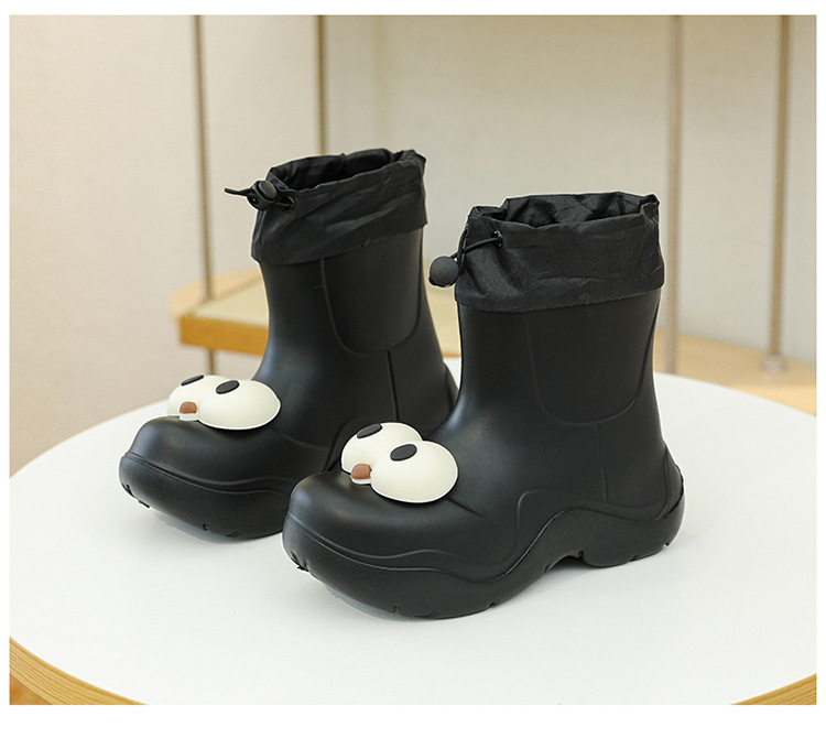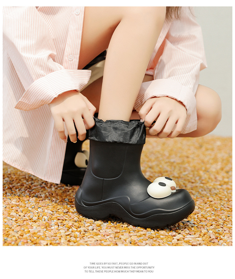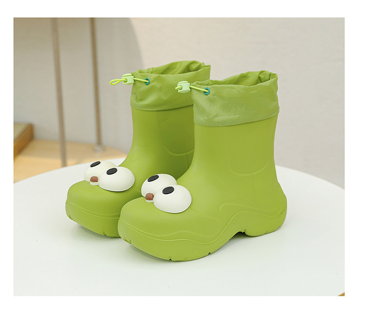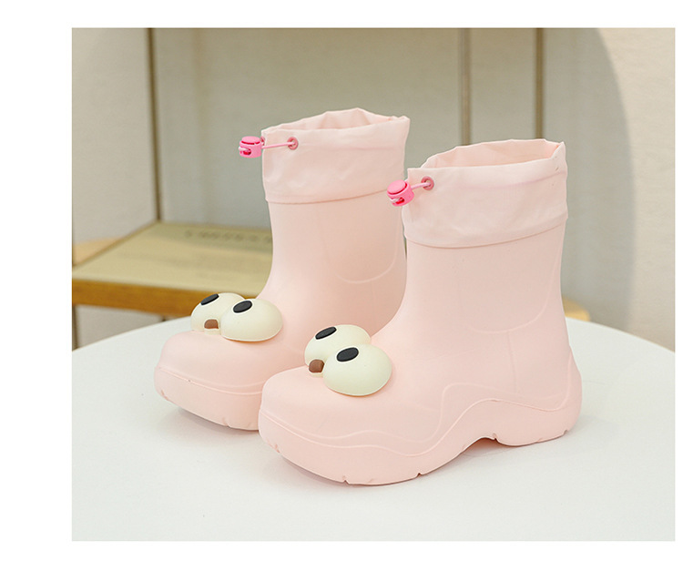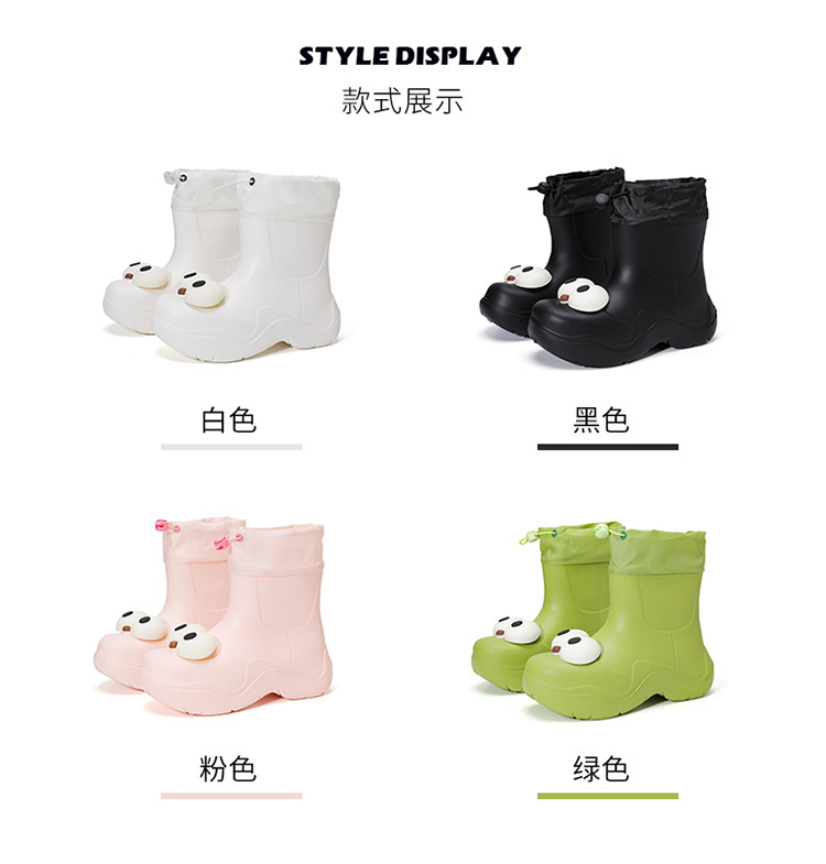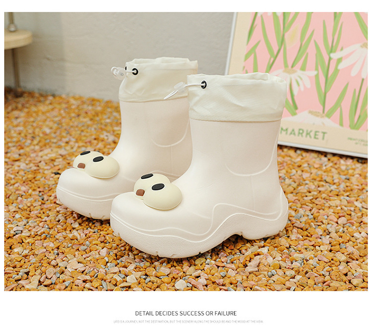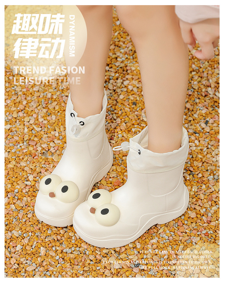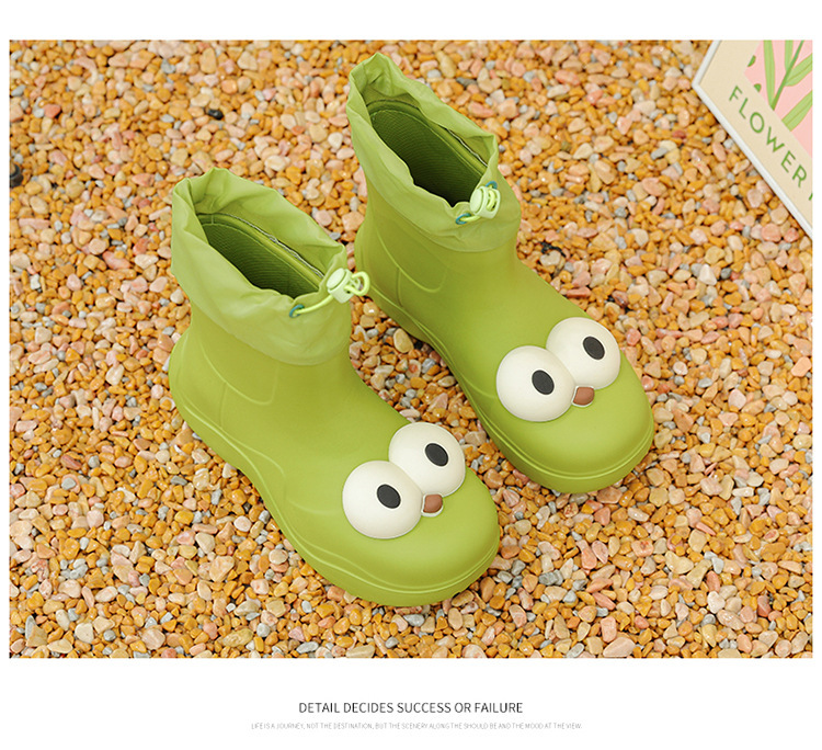 비 부츠 여성 중간 송아지 귀여운 큰 눈 새로운 스타일의 물 신발 여성 방수 미끄럼 방지 야외 장화 강화 오버 슈즈