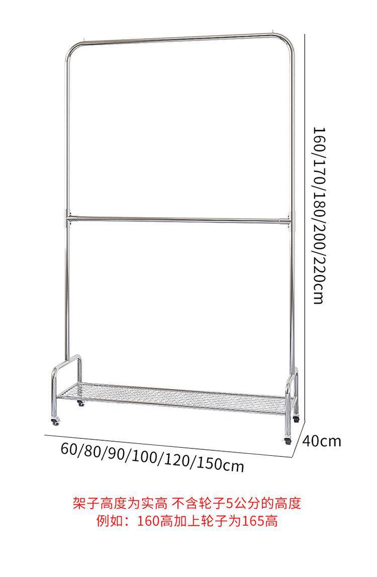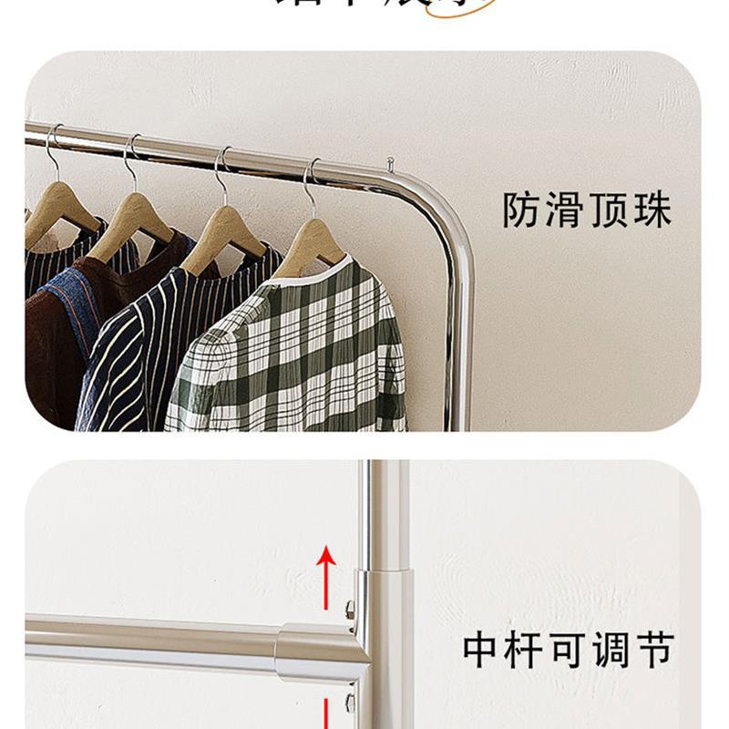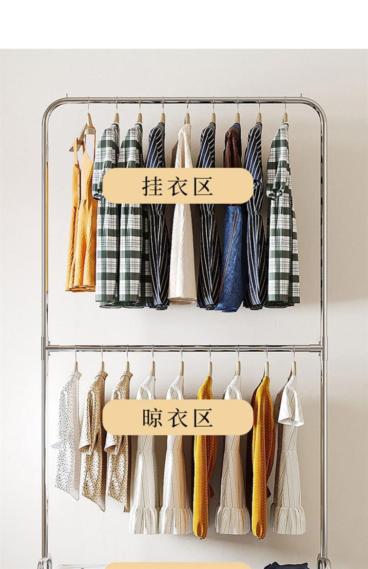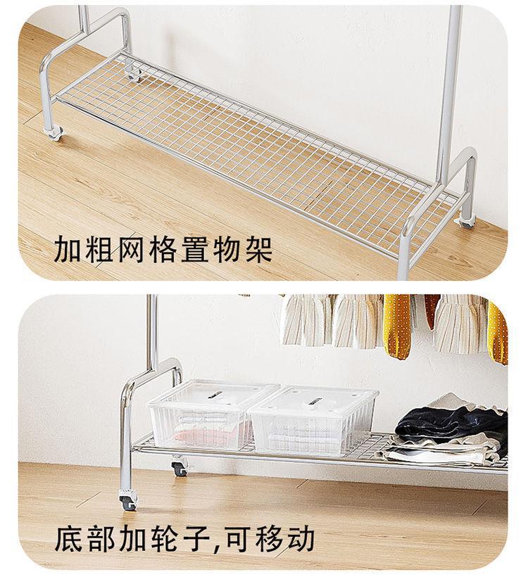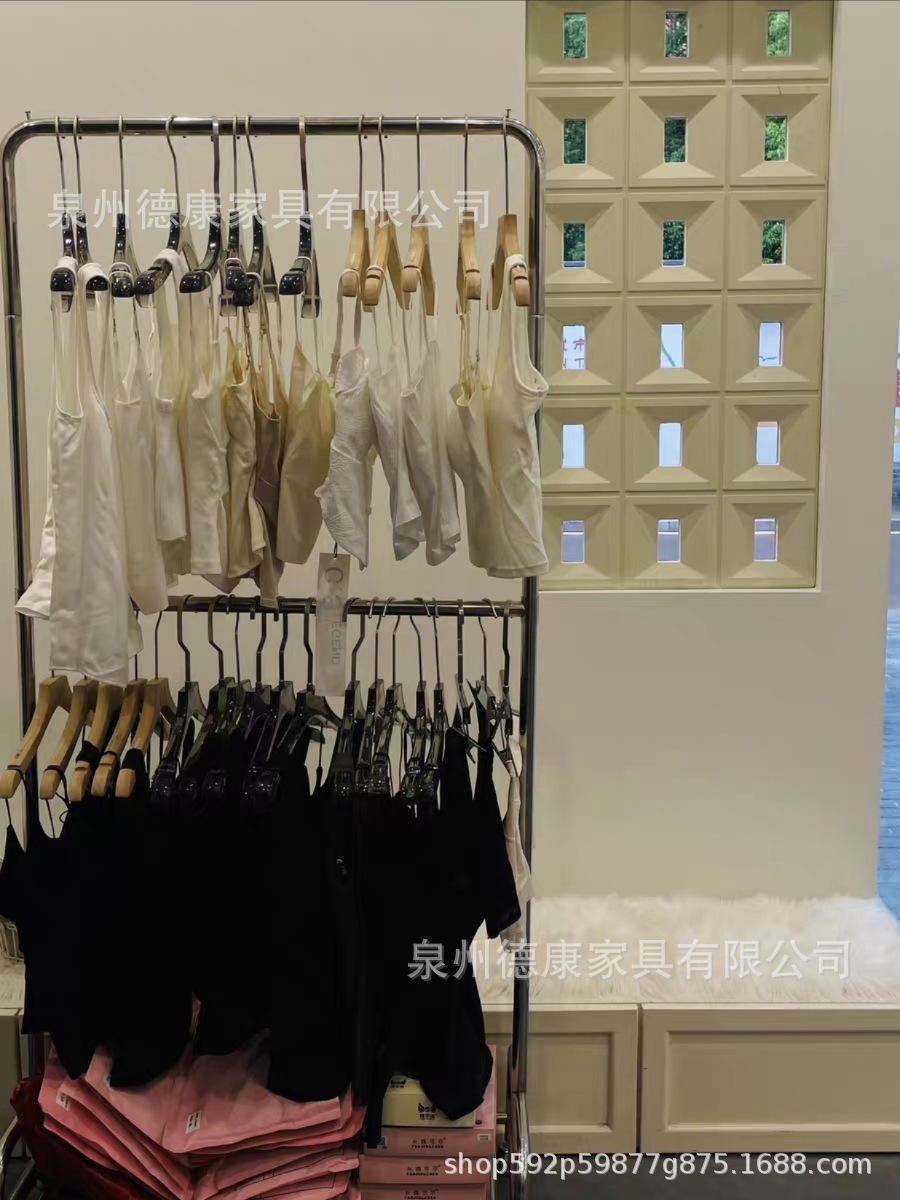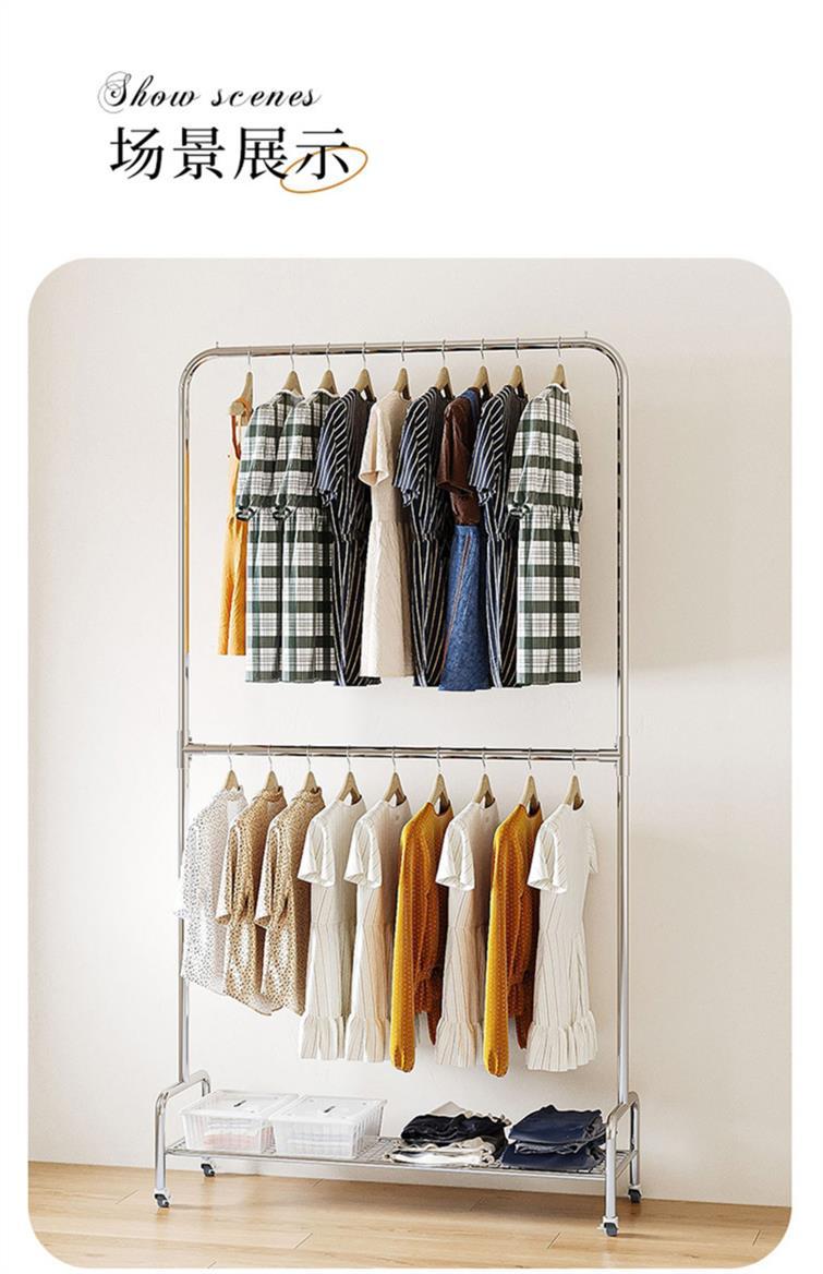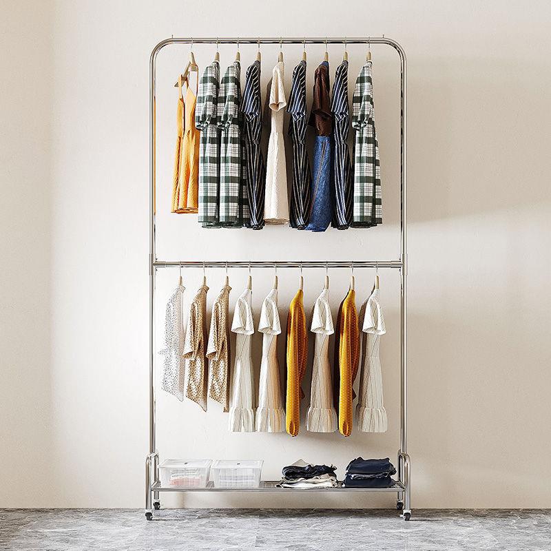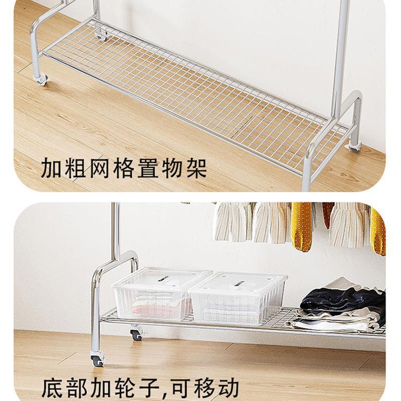 더블 레이어 조정 가능한 행거 바닥 스테인레스 스틸 의류 랙 여성 의류 매장 중다오 선반 바퀴 의류 디스플레이 랙