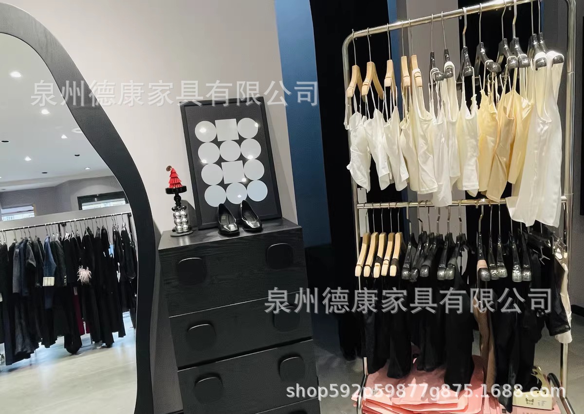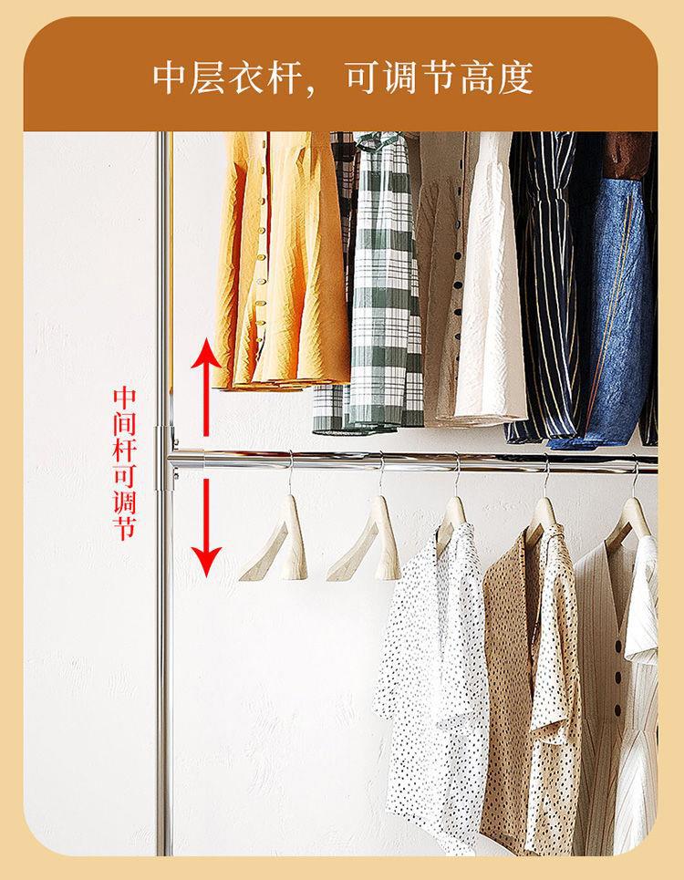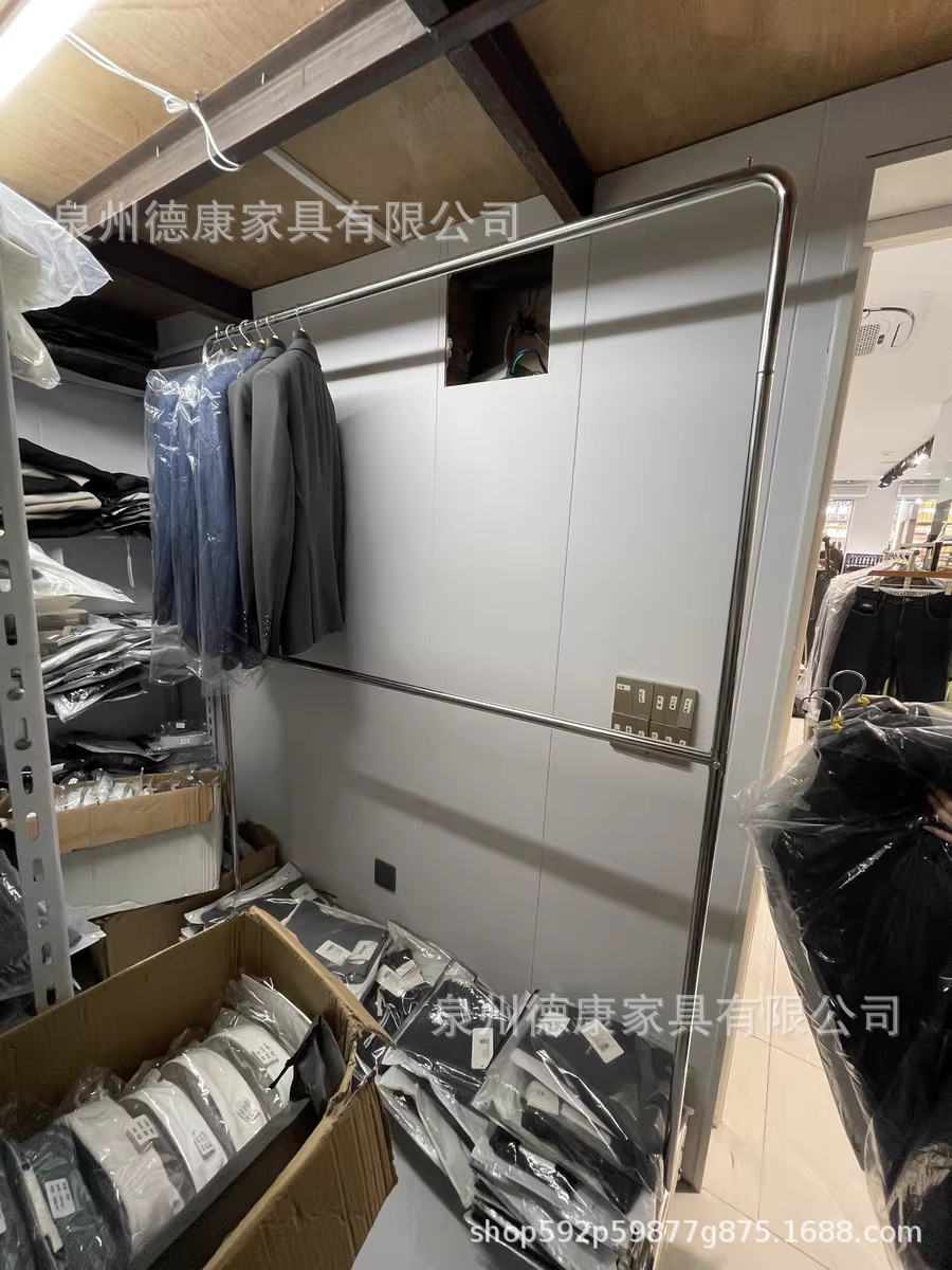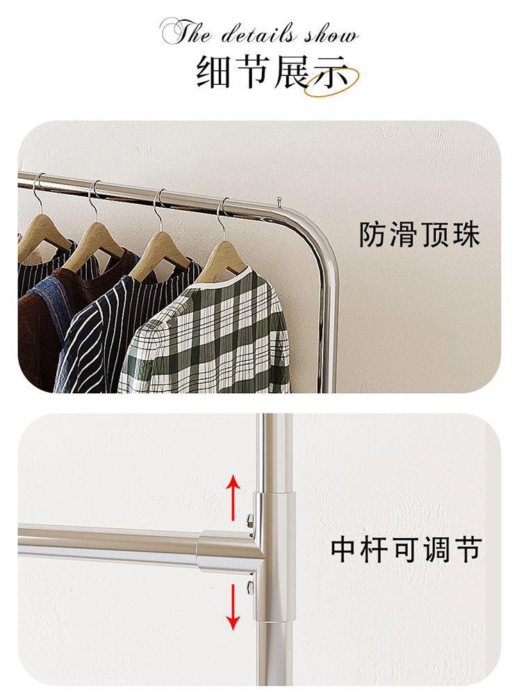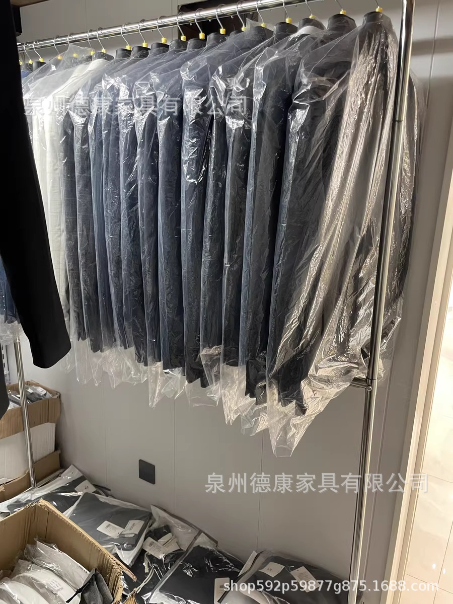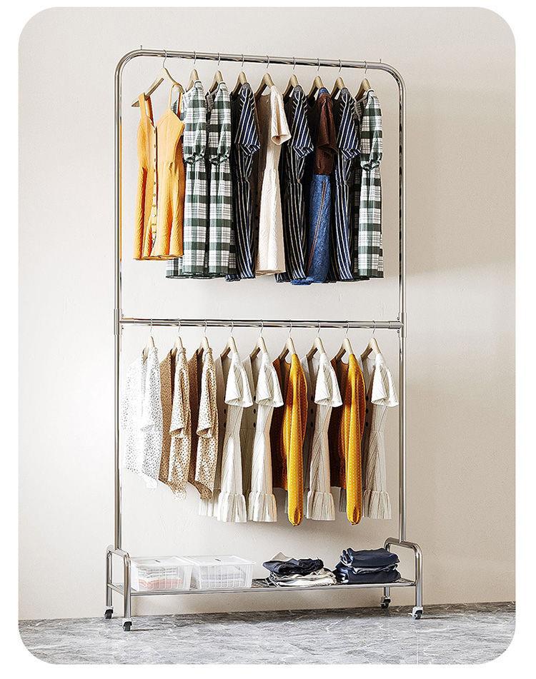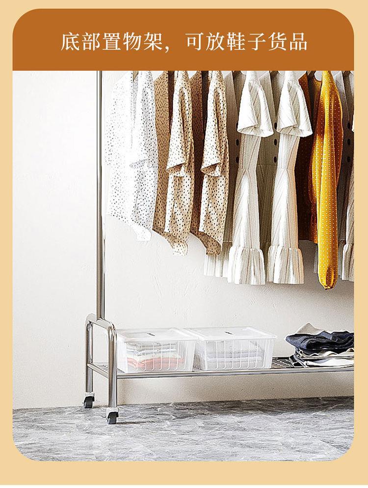 더블 레이어 조정 가능한 행거 바닥 스테인레스 스틸 의류 랙 여성 의류 매장 중다오 선반 바퀴 의류 디스플레이 랙