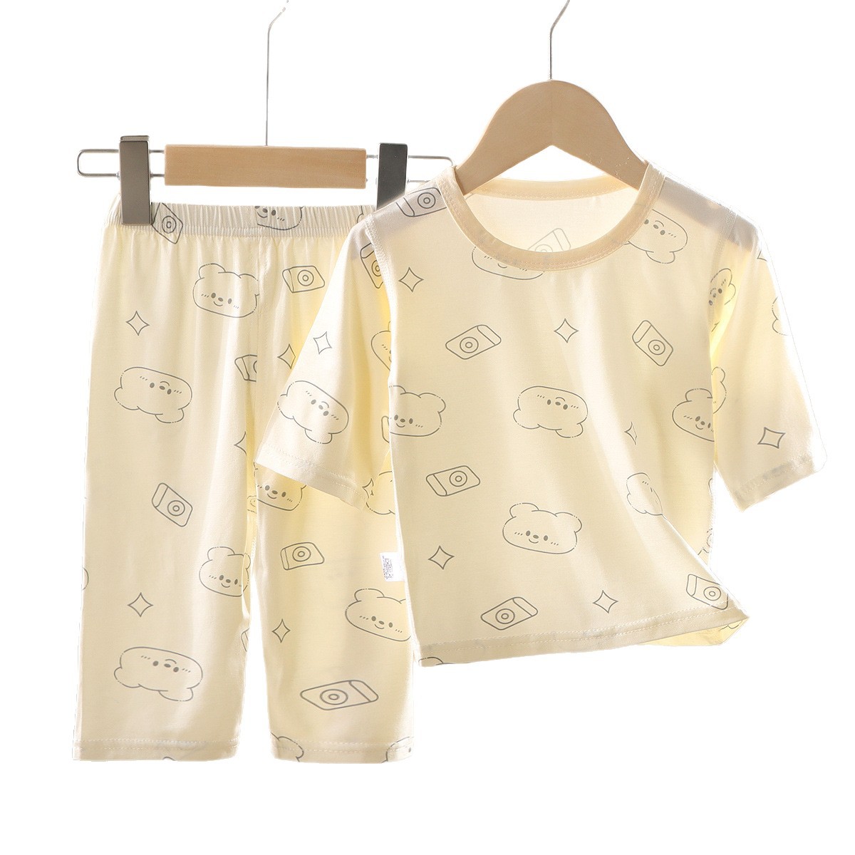 아동 모달 슈트, 여름용 남녀 아기용 루즈한 얇은 에어컨 의류, 캐주얼 통기성 홈웨어 슈트
