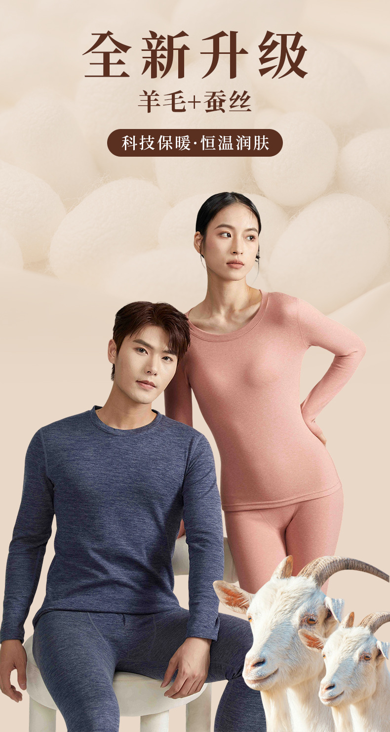 가을 겨울 독일산 보온 내의 세트 실크 울 라운드넥 피부미용 여성용 이너웨어 가을옷 가을바지 도매
