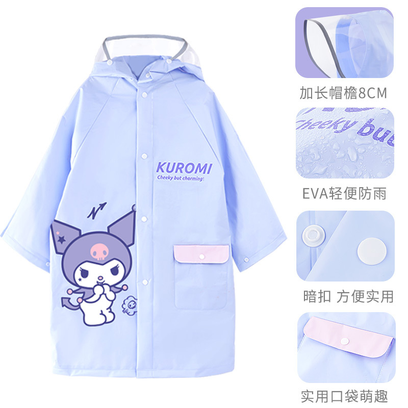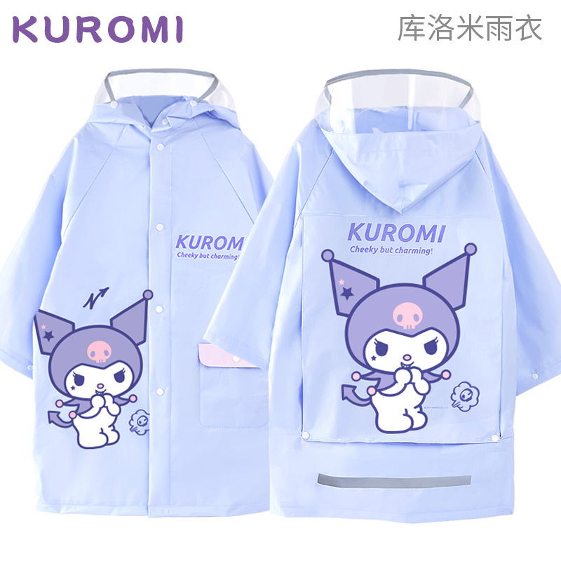 쿨 로미 어린이 비옷 걸스 판초 스쿨 백 비트 빅 햇 브림 학생 학교 방수 옷 소녀 중간 길이