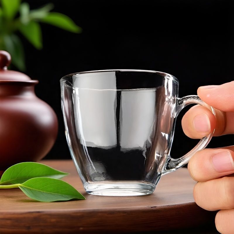 내열성 유리 차 컵 손잡이가있는 작은 컵 두꺼운 차 컵 가정용 간단한 컵 차 그릇 마스터 컵 쿵푸 차 세트