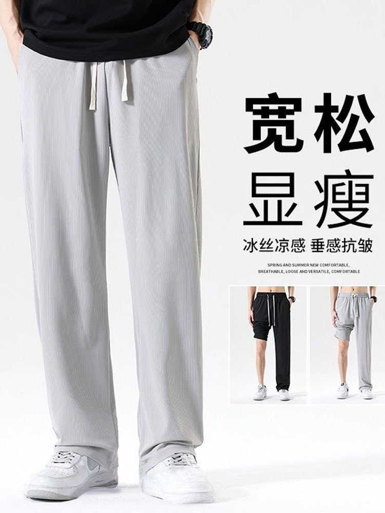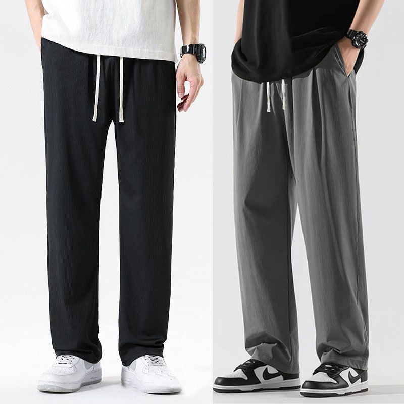 레이스 캐주얼 바지 남성용 스트레이트 느슨한 올 매치 단색 스포츠 바지 트렌디 한 잘 생긴 얇은 긴 바지 원피스 배달