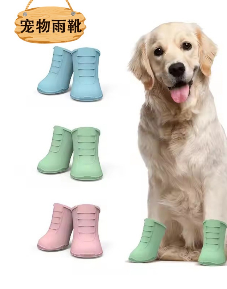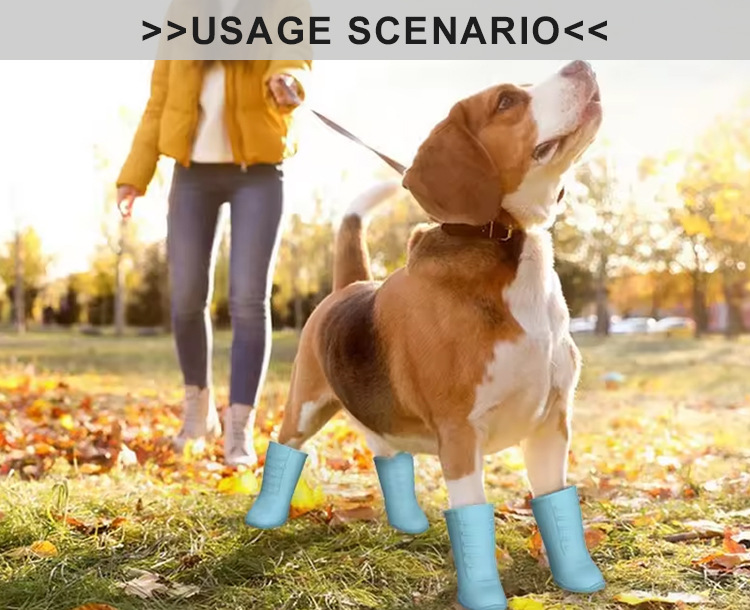 국경 간 뜨거운 애완 동물 실리콘 레인 부츠 4 조각 방수 미끄럼 방지 야외 편안한 개 고양이 신발