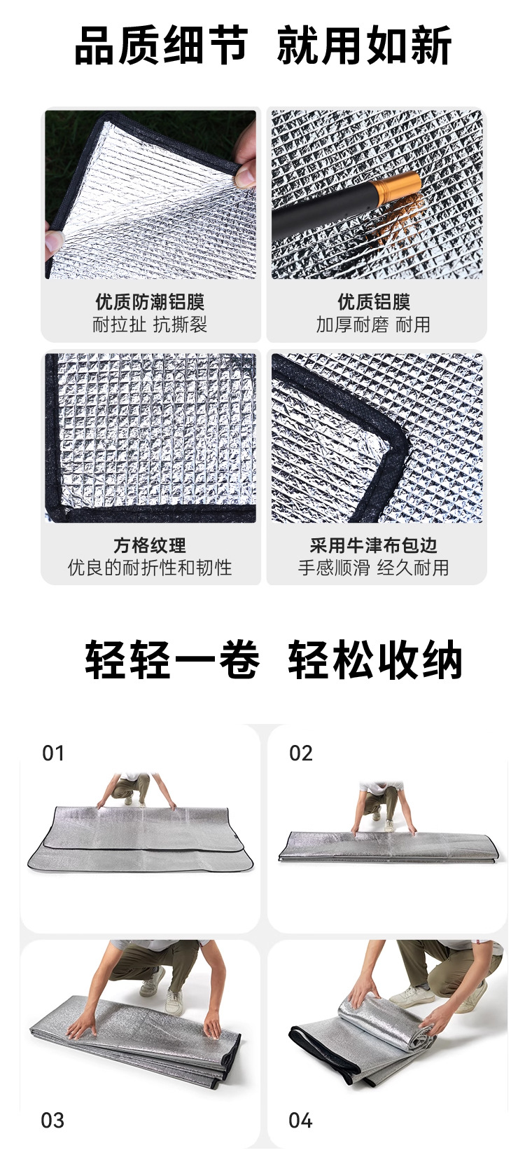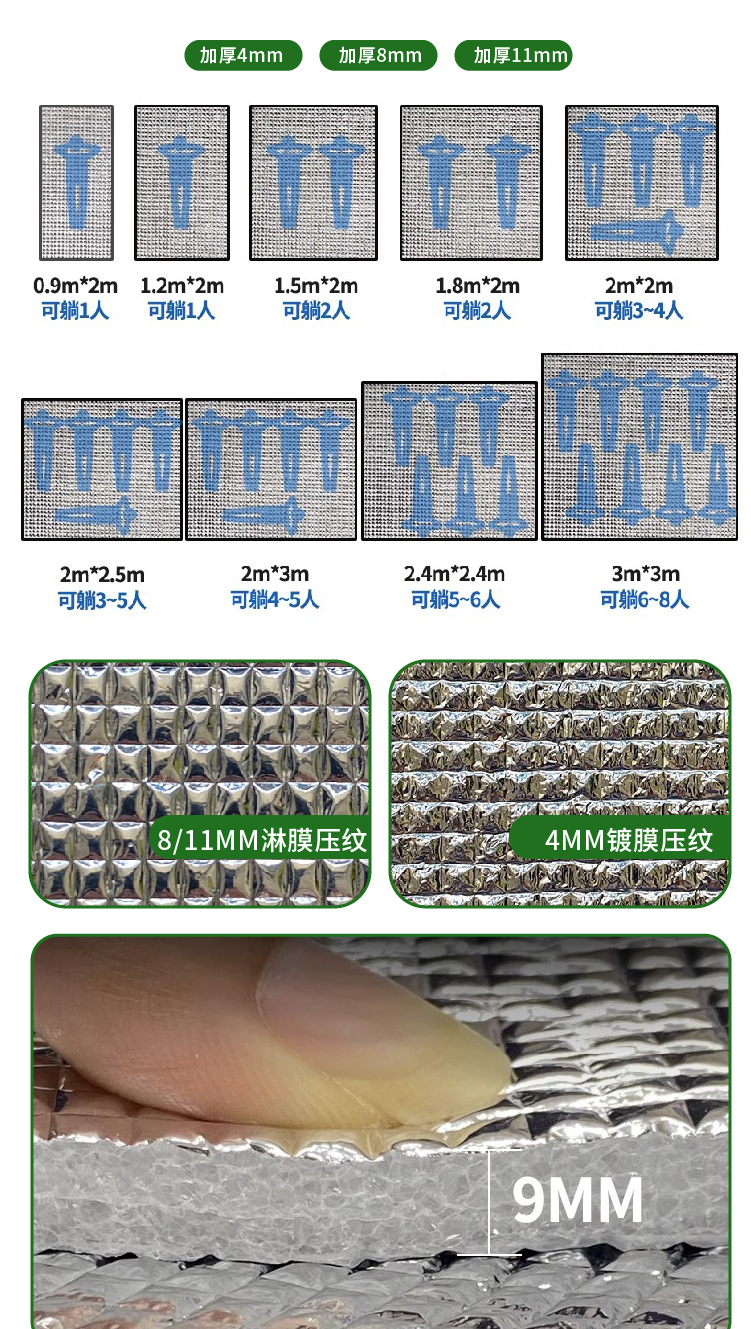 야외 방수 양면 알루미늄 호일 필름 피크닉 매트 두꺼운 방습 텐트 캠핑 휴대용 슬리핑 패드 홈 크롤링 매트