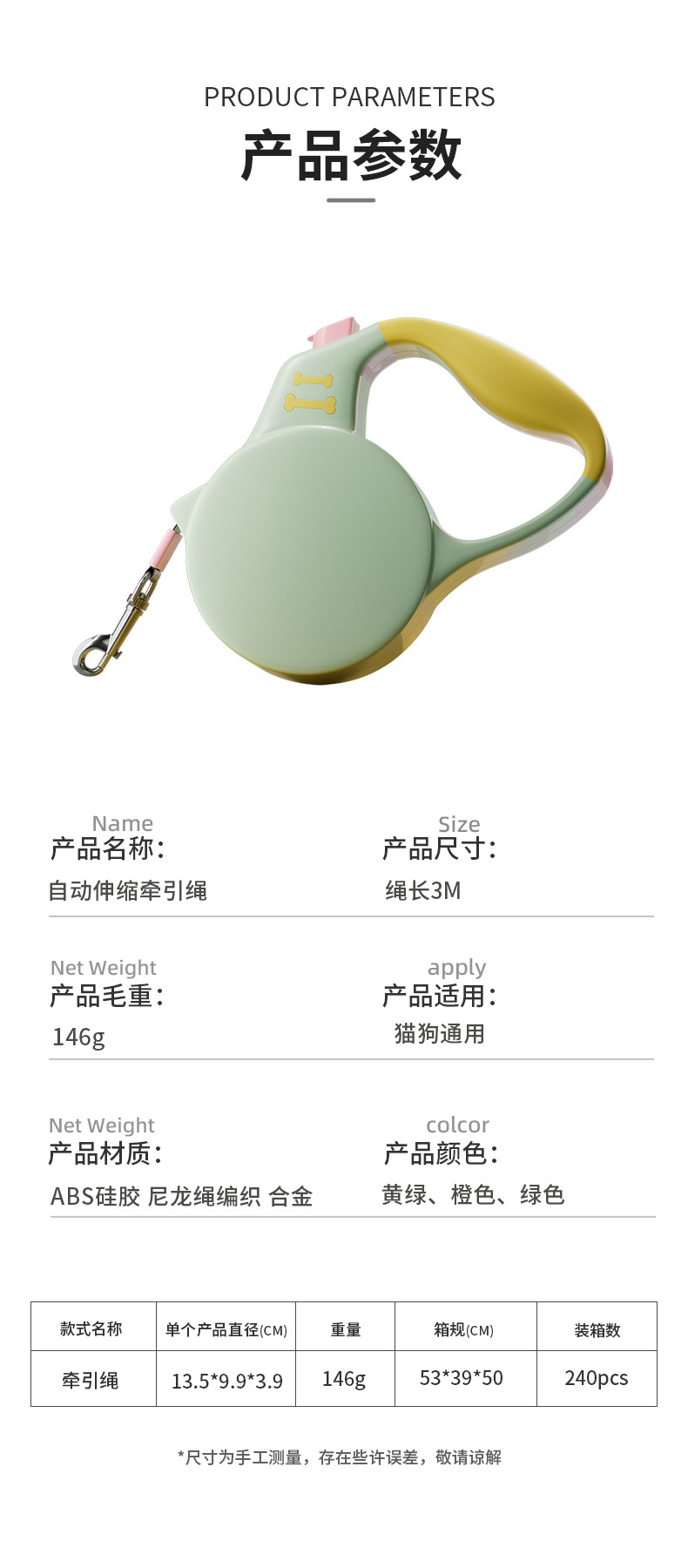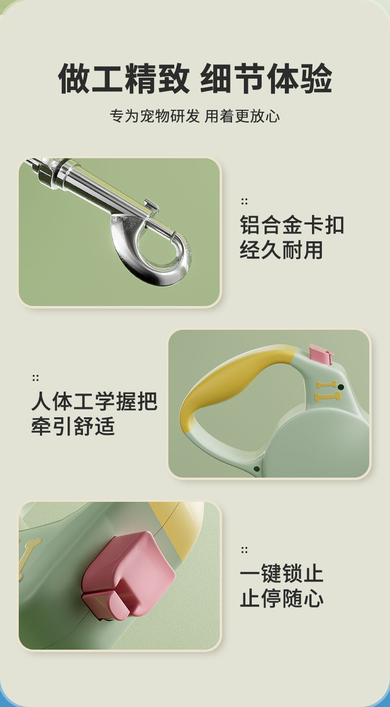새로운 개 가죽 끈 자동 개폐식 매체 및 작은 개 코기 개 걷는 로프 3M 애완 동물 용품 도매