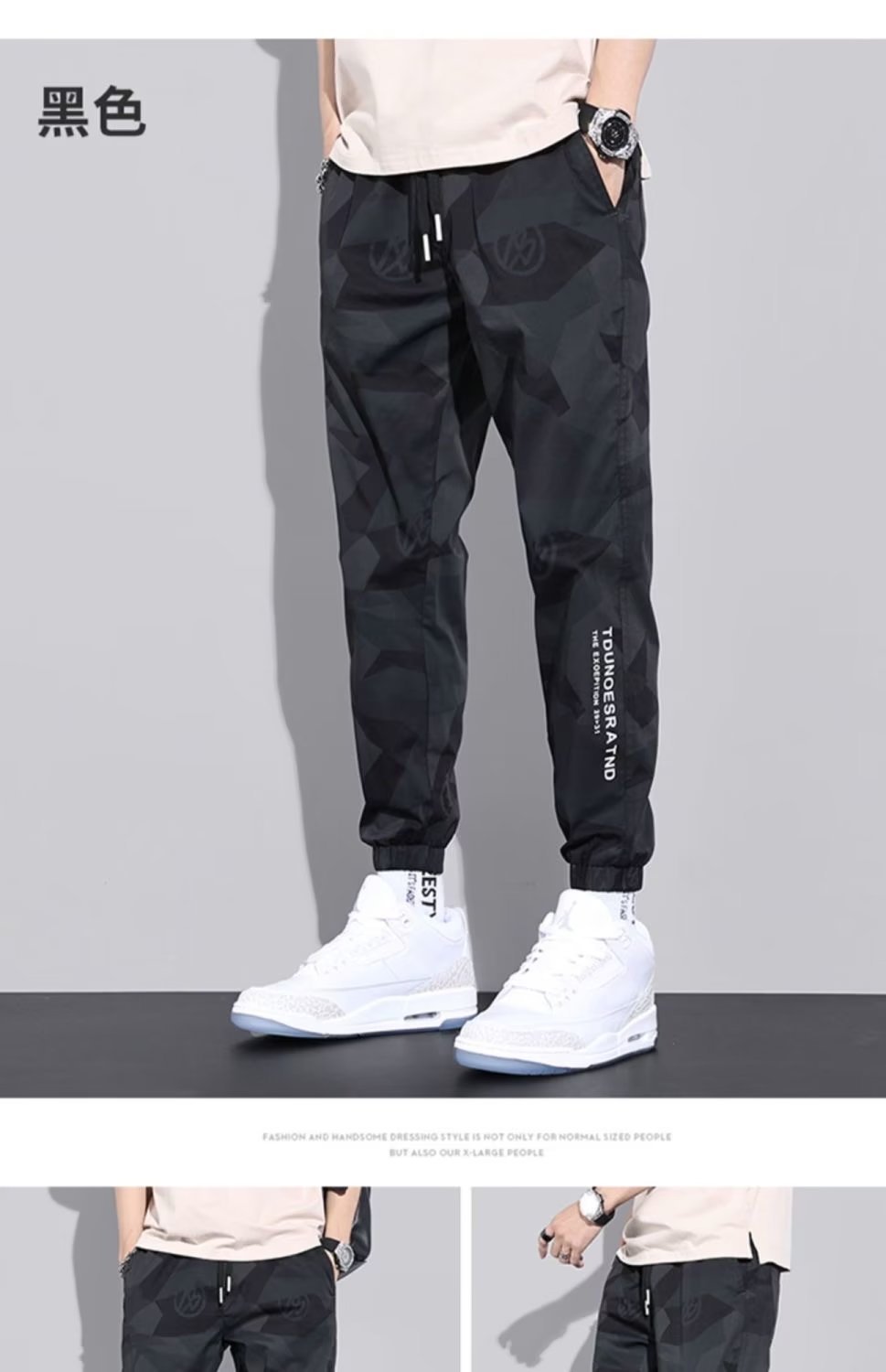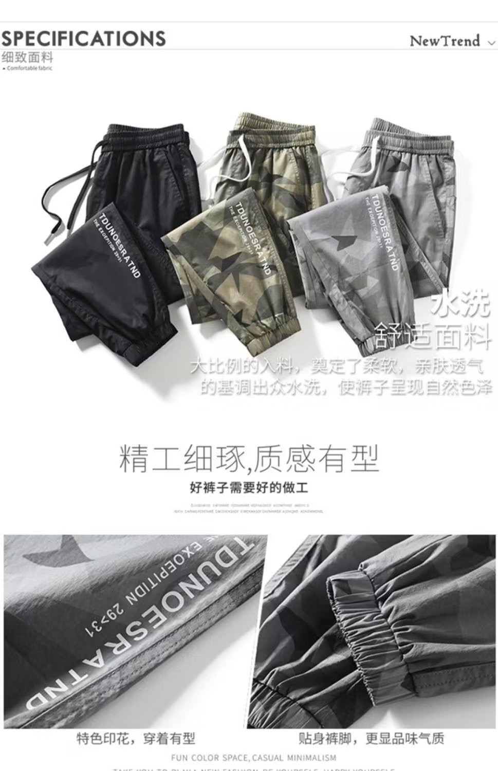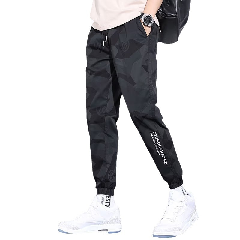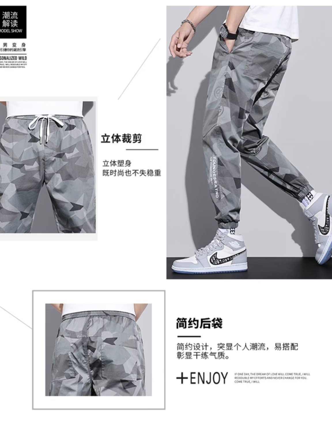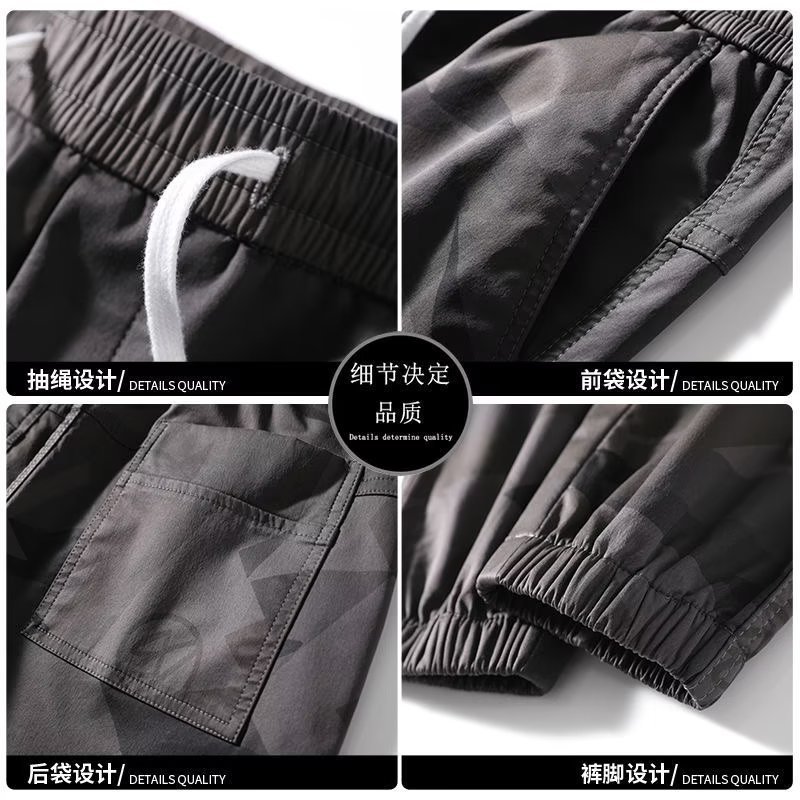 위장 아이스 실크 바지 남성 여름 얇은 스포츠 크롭 팬츠 트렌디 한 봄과 가을 발목 묶은 캐주얼 롱 팬츠 남성