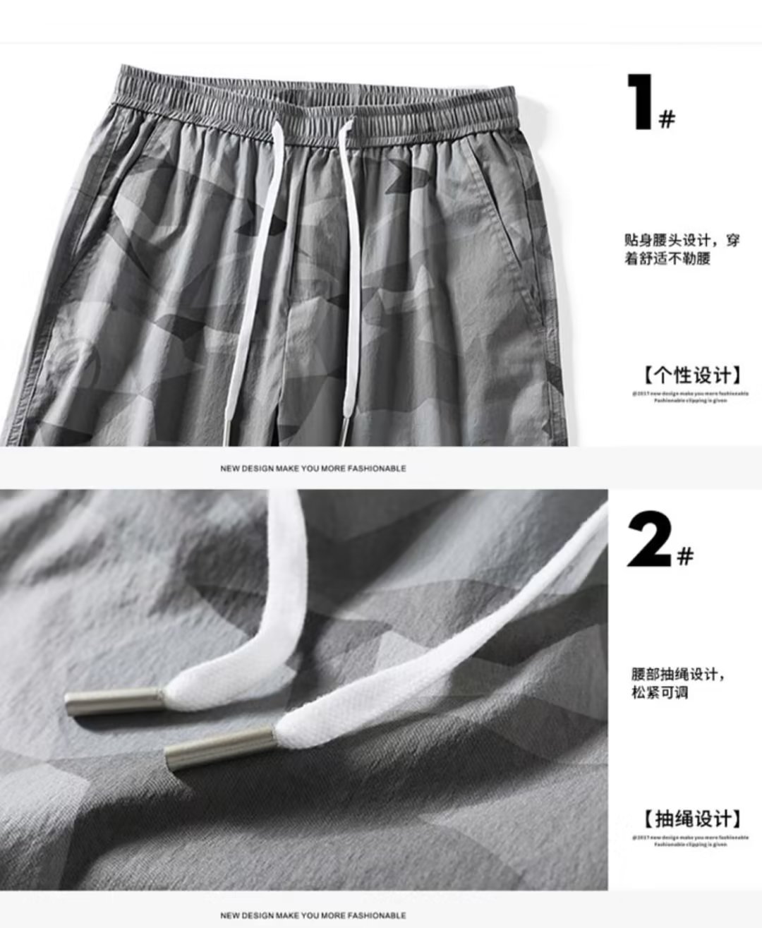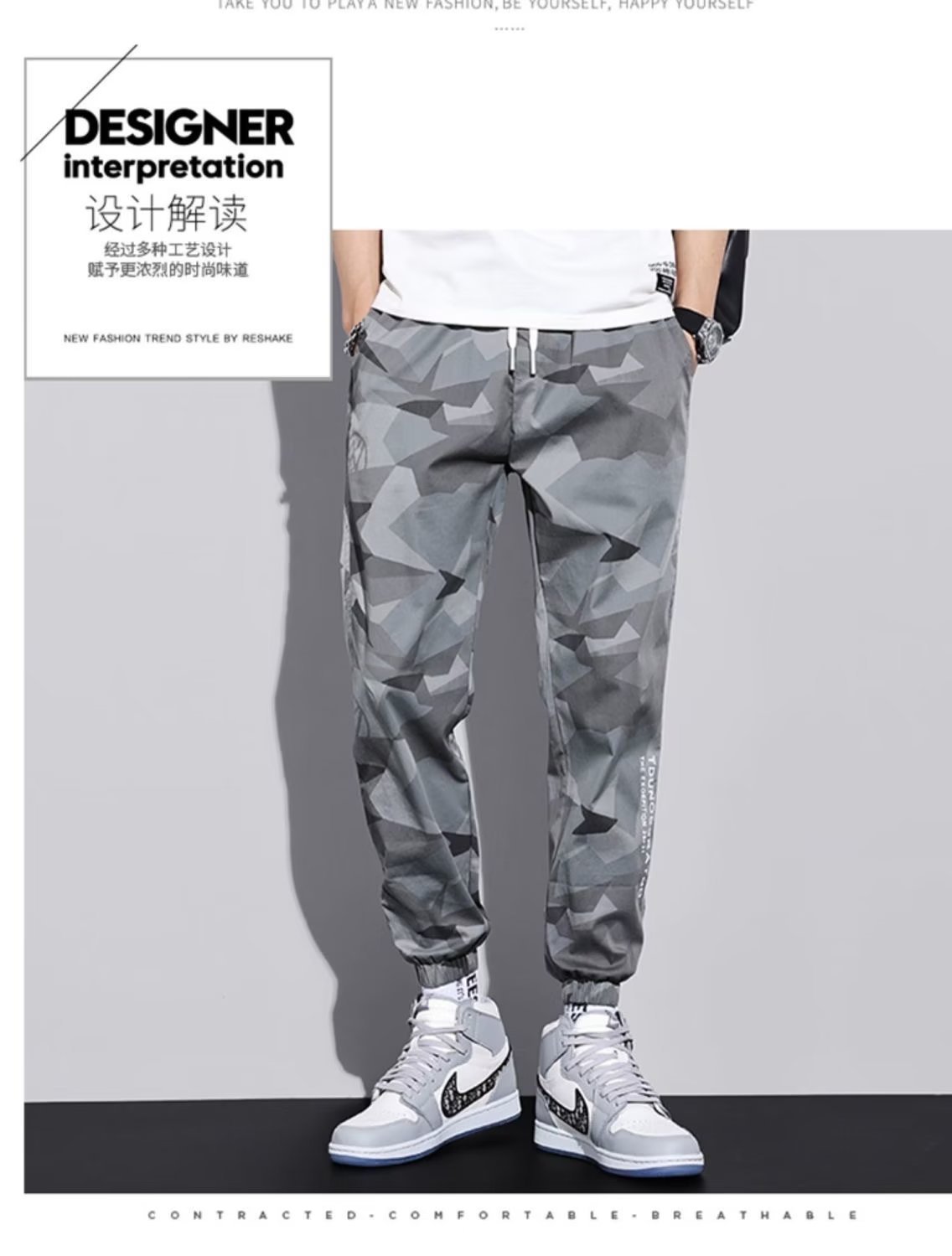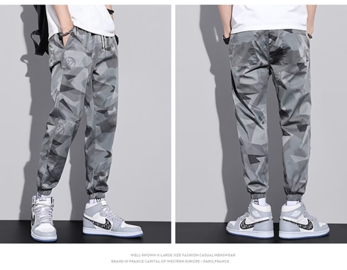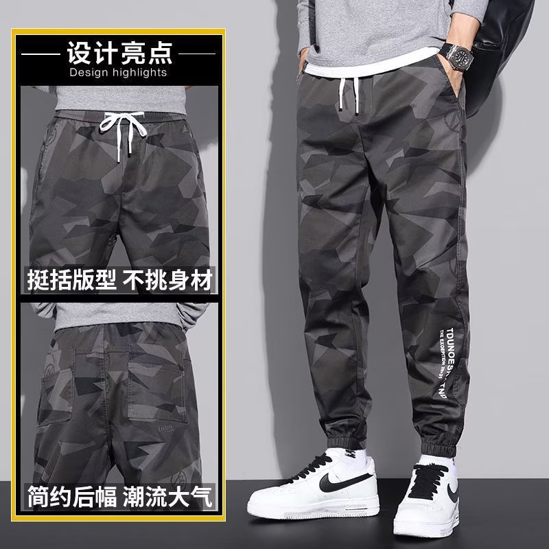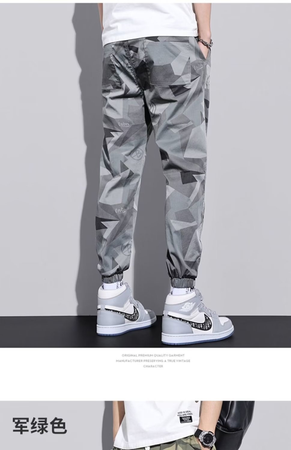 위장 아이스 실크 바지 남성 여름 얇은 스포츠 크롭 팬츠 트렌디 한 봄과 가을 발목 묶은 캐주얼 롱 팬츠 남성