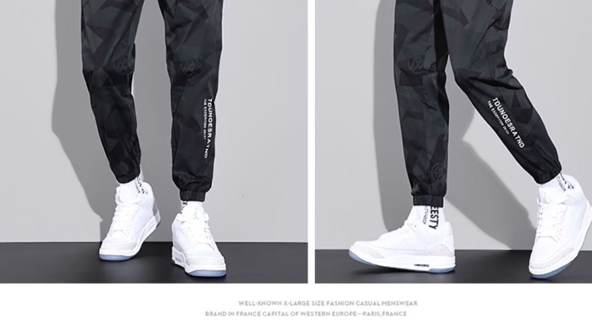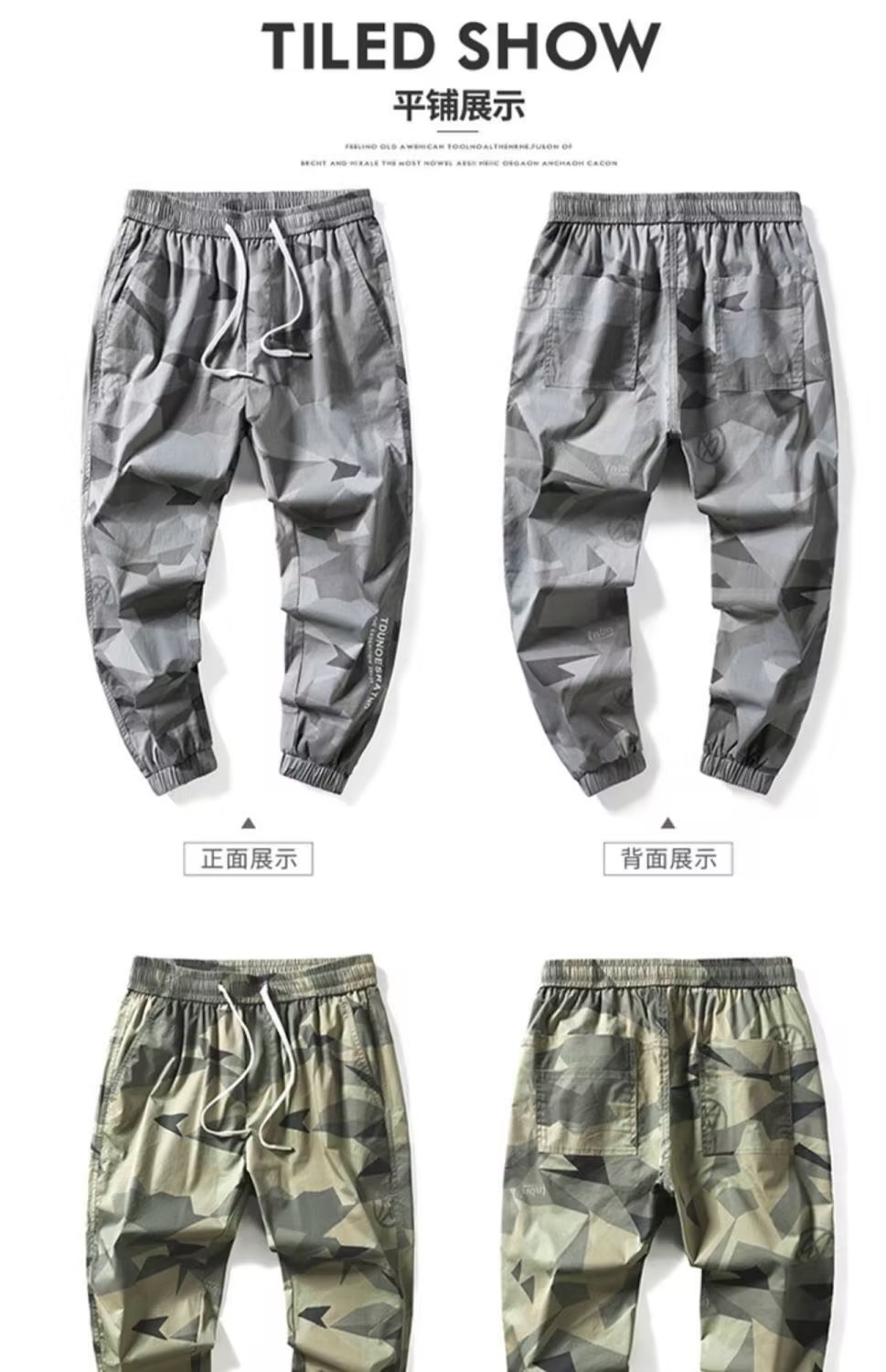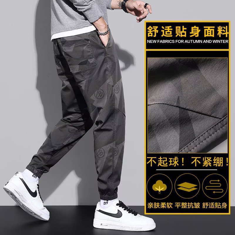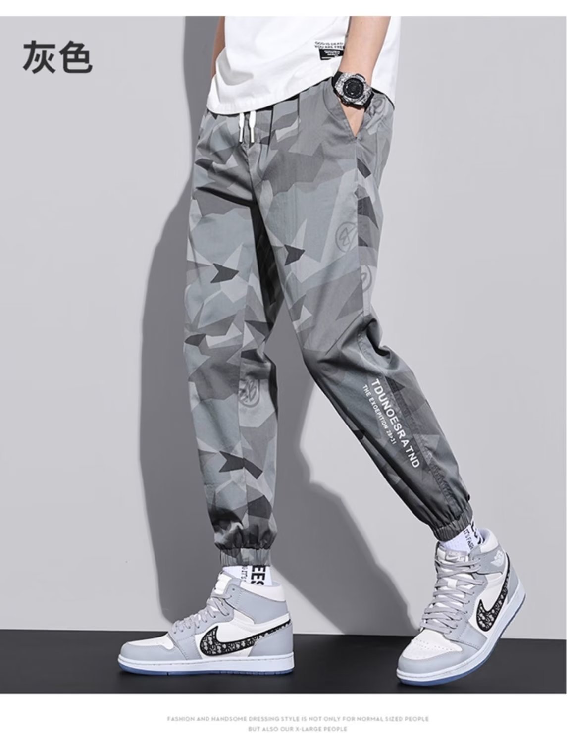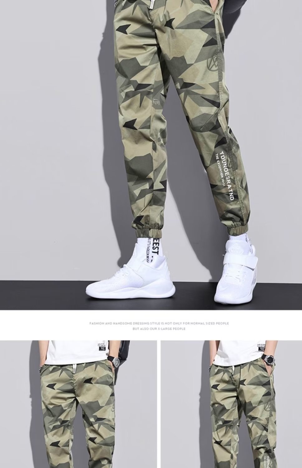위장 아이스 실크 바지 남성 여름 얇은 스포츠 크롭 팬츠 트렌디 한 봄과 가을 발목 묶은 캐주얼 롱 팬츠 남성