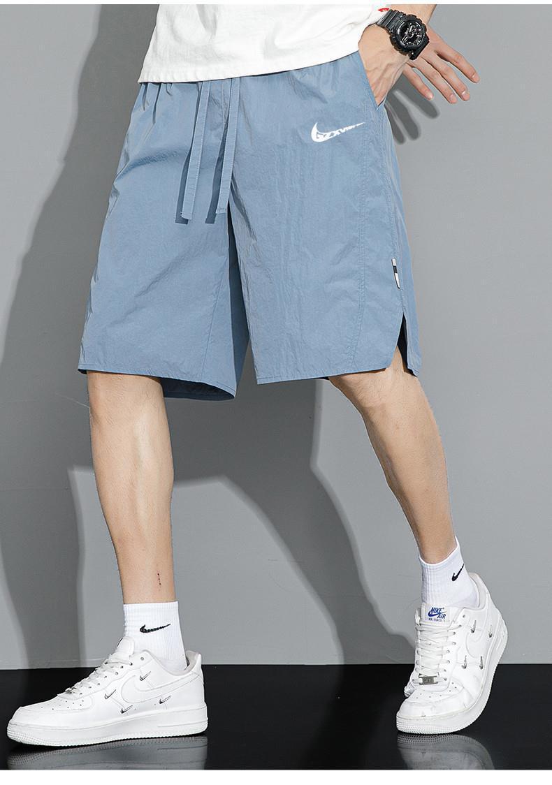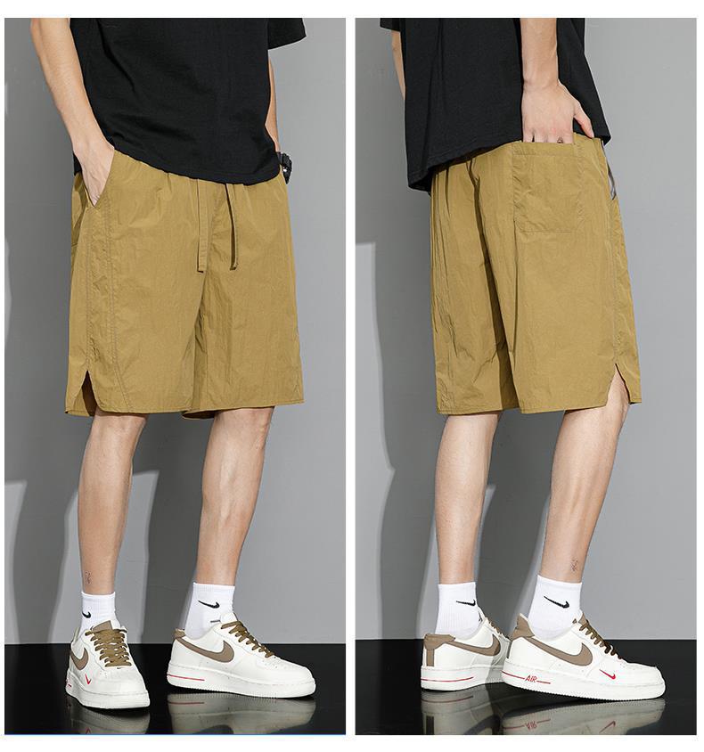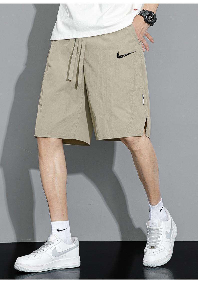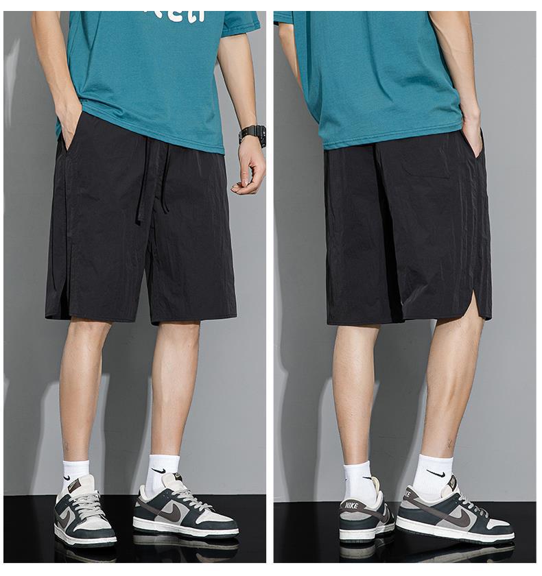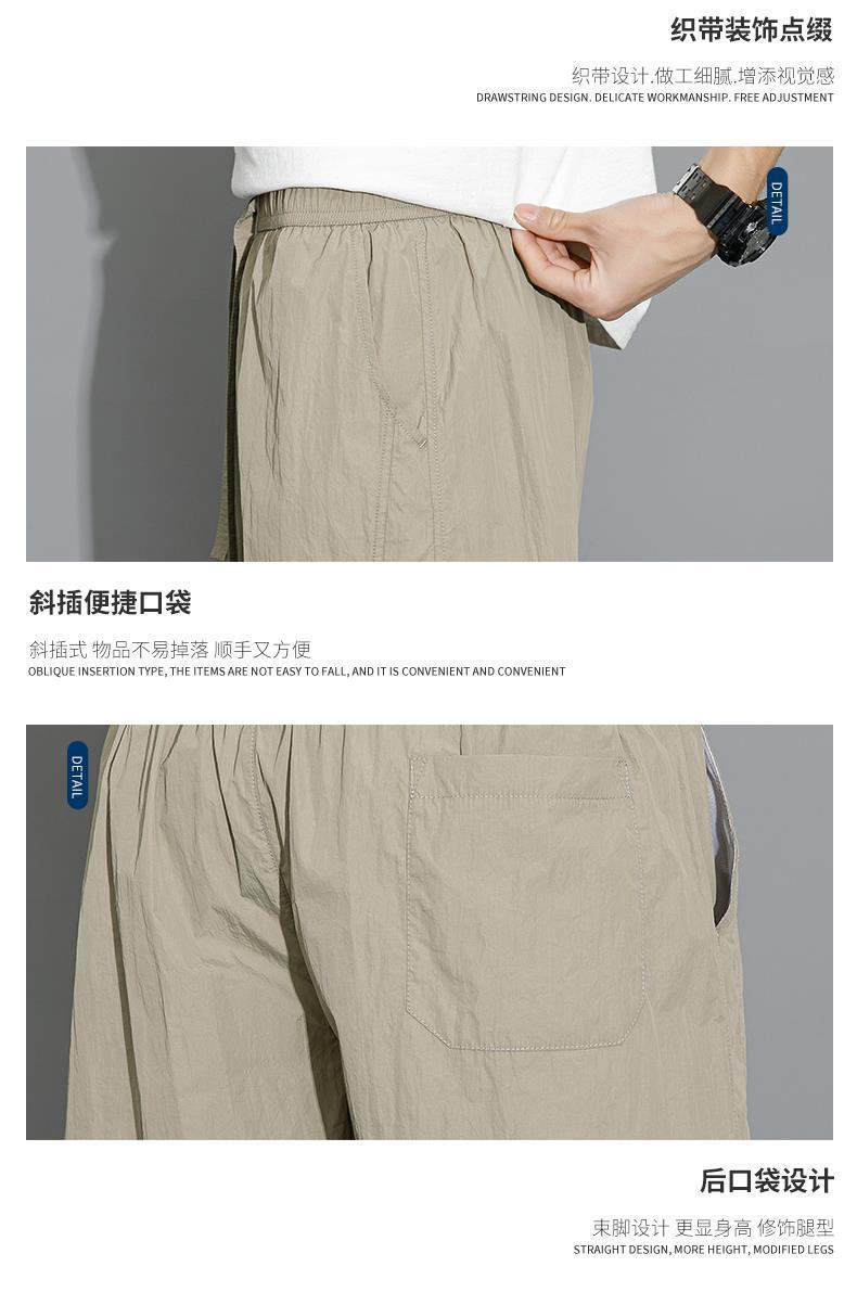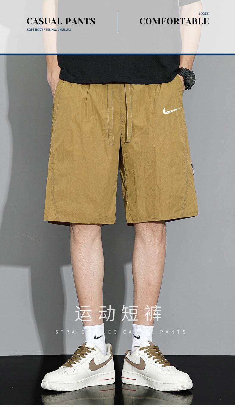 남성복 2025 여름 미국 트렌디 브랜드 반바지 남성 아이스 실크 얇은 스포츠 캐주얼 루즈 스트레이트 5부 팬츠