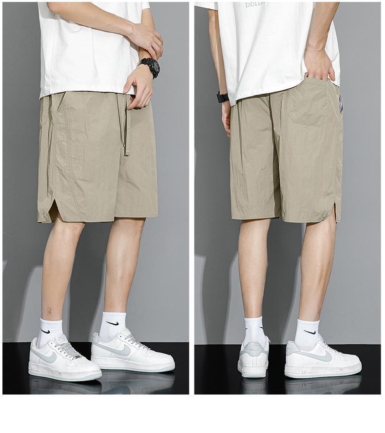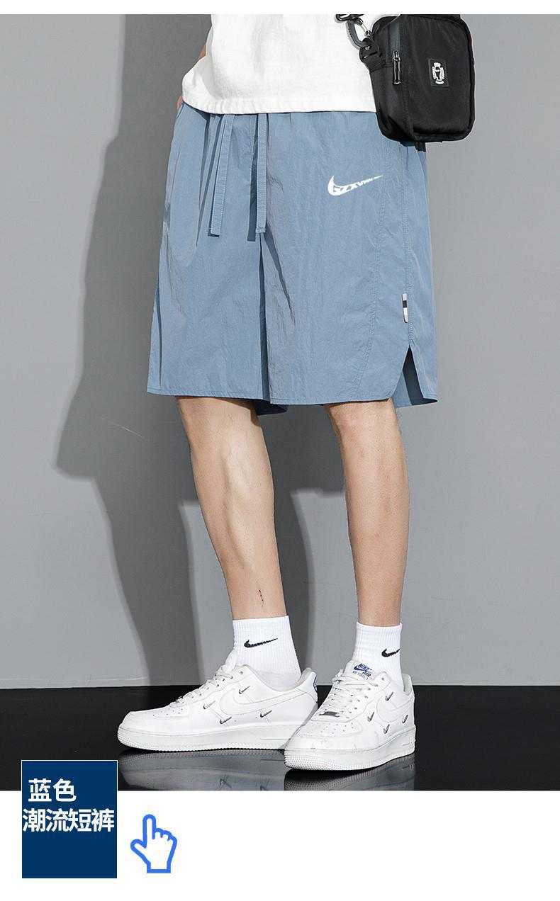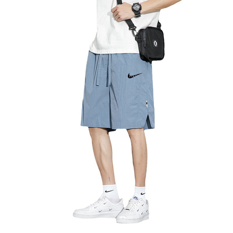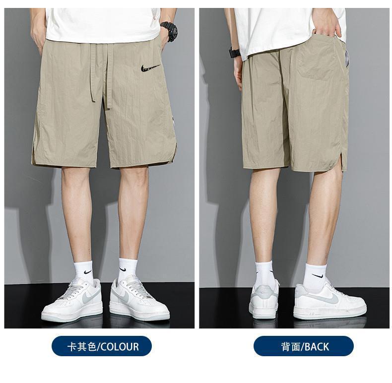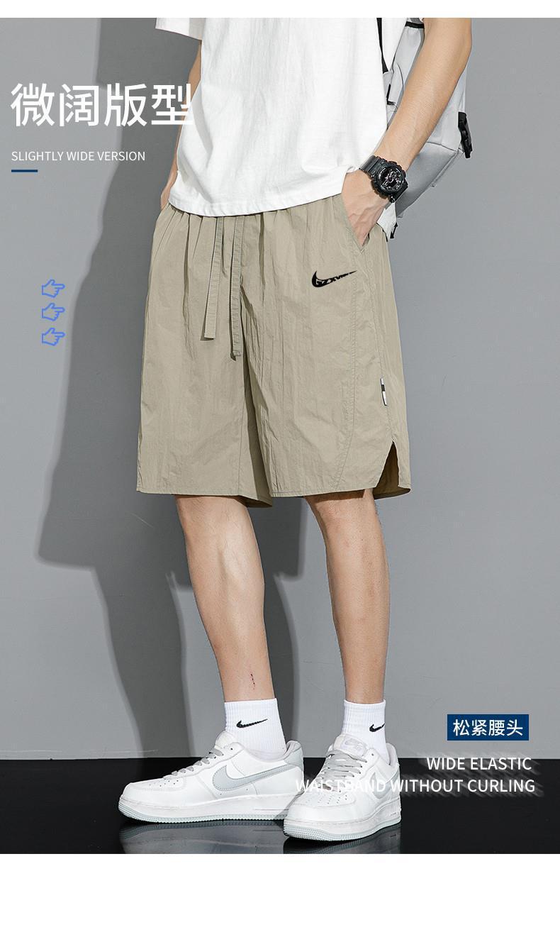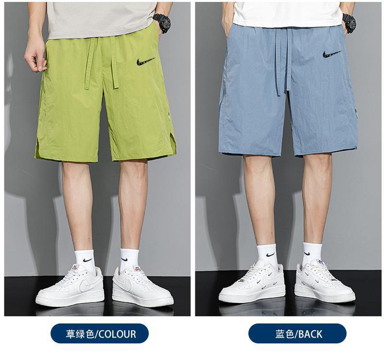 남성복 2025 여름 미국 트렌디 브랜드 반바지 남성 아이스 실크 얇은 스포츠 캐주얼 루즈 스트레이트 5부 팬츠