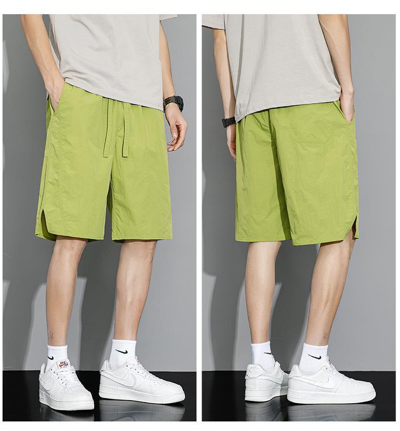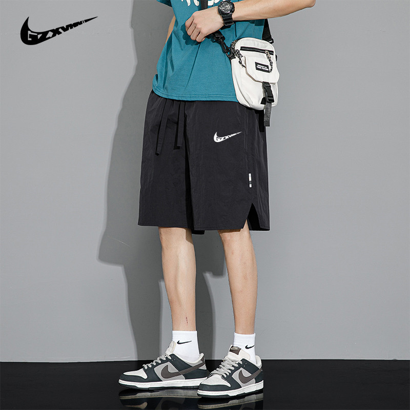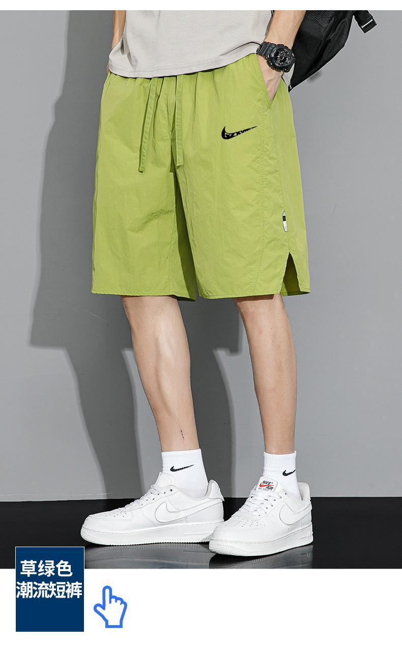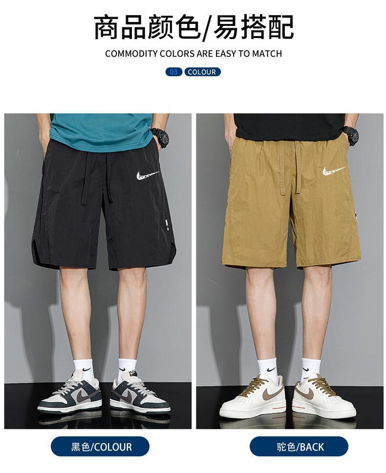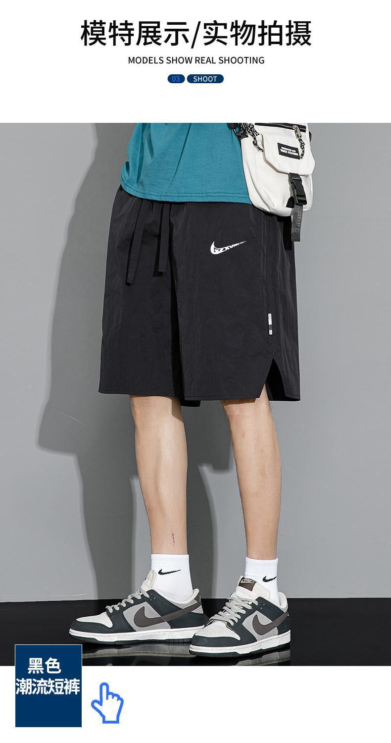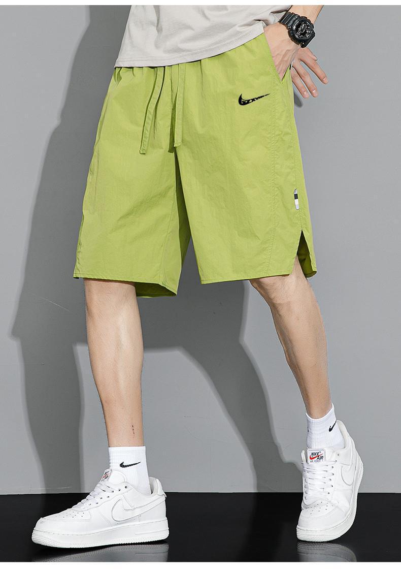 남성복 2025 여름 미국 트렌디 브랜드 반바지 남성 아이스 실크 얇은 스포츠 캐주얼 루즈 스트레이트 5부 팬츠