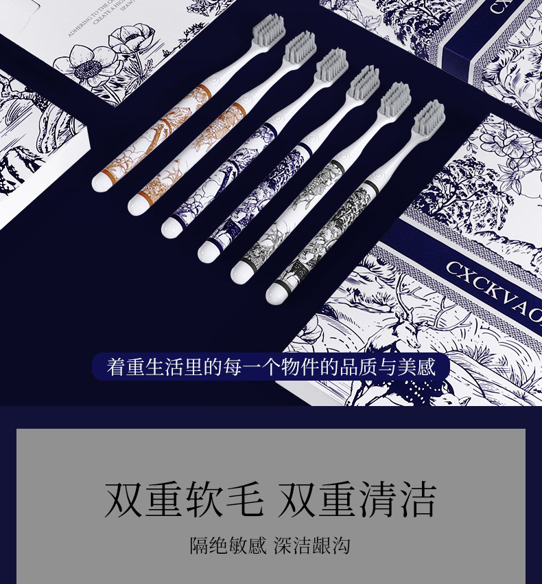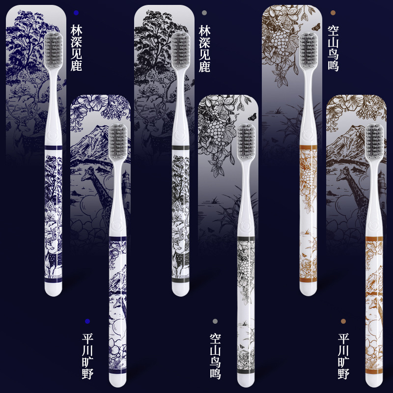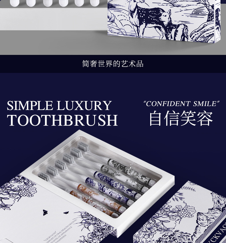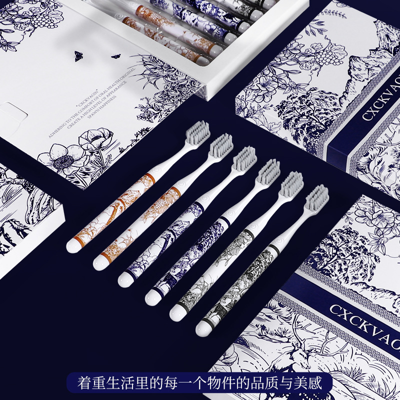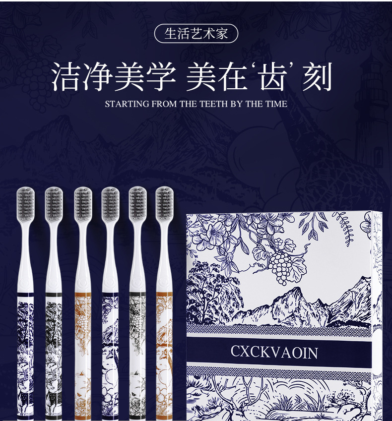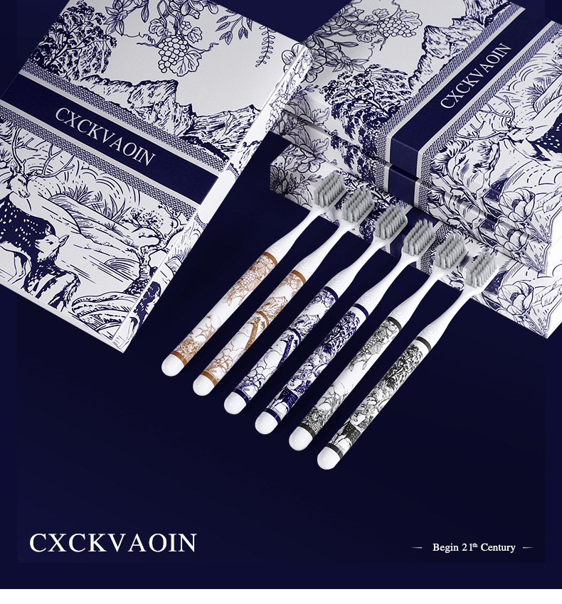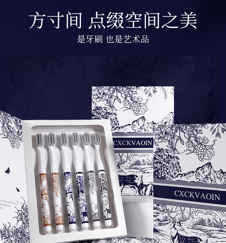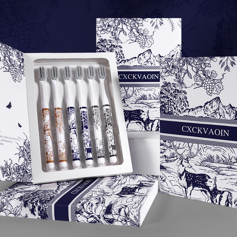 라이브 폭발 CXCKVAOIN 부드러운 헤어 칫솔 풍경 그림 손잡이 깨끗한 치약 보호 칫솔 홈 6 선물 상자