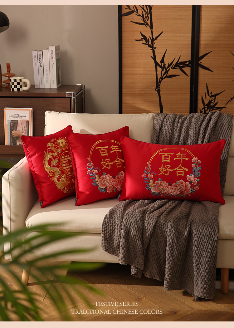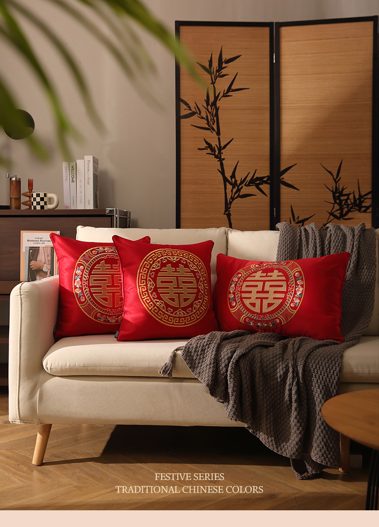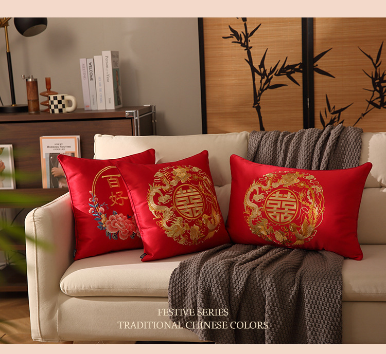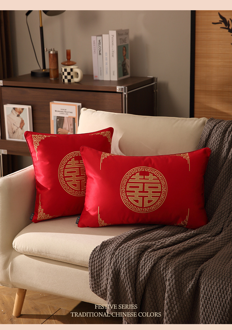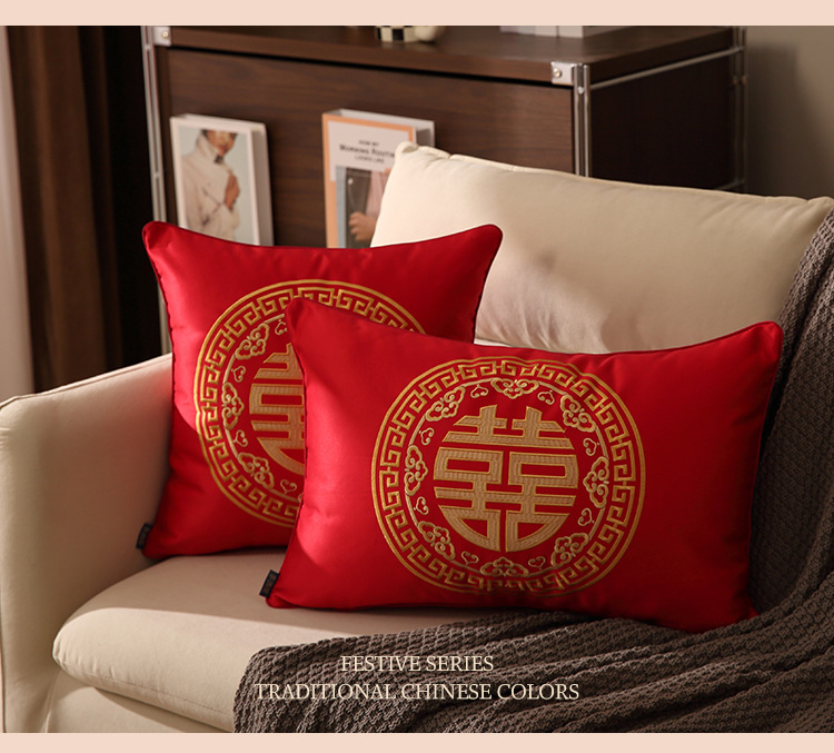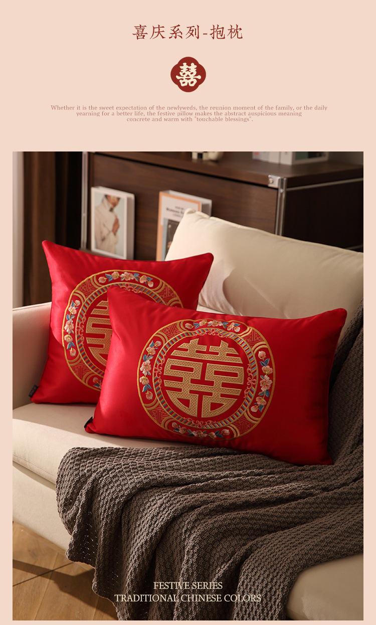 웨딩 레드 베개 중국 스타일 축제 장식 베개 소파 코튼 린넨 베개 커버 쿠션 거실 침대 베개 코어 베개