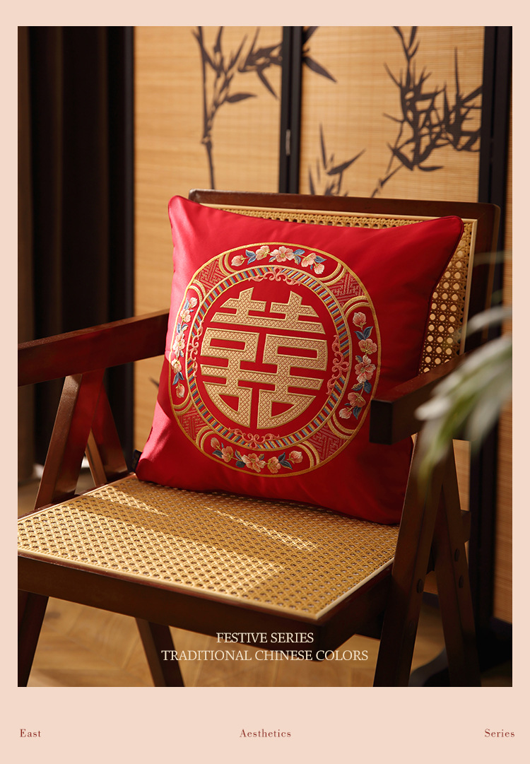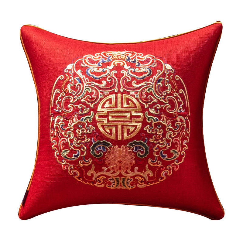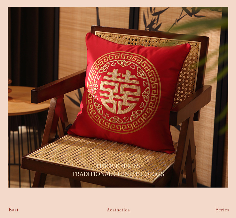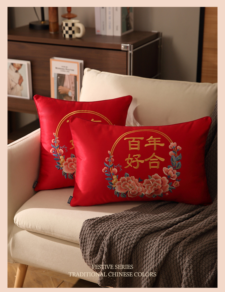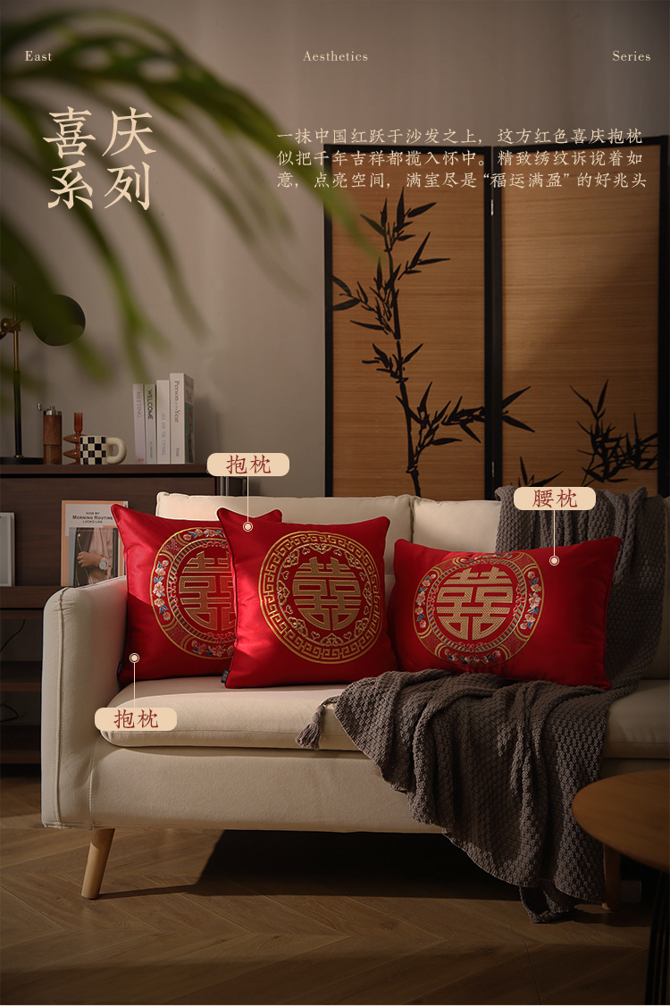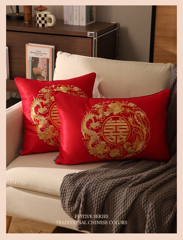 웨딩 레드 베개 중국 스타일 축제 장식 베개 소파 코튼 린넨 베개 커버 쿠션 거실 침대 베개 코어 베개