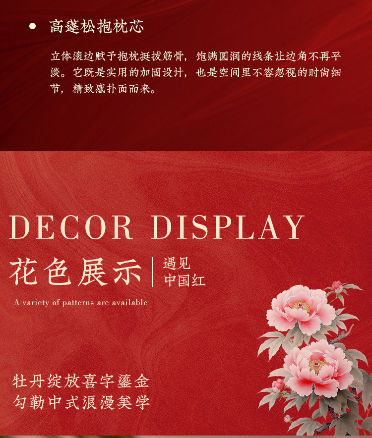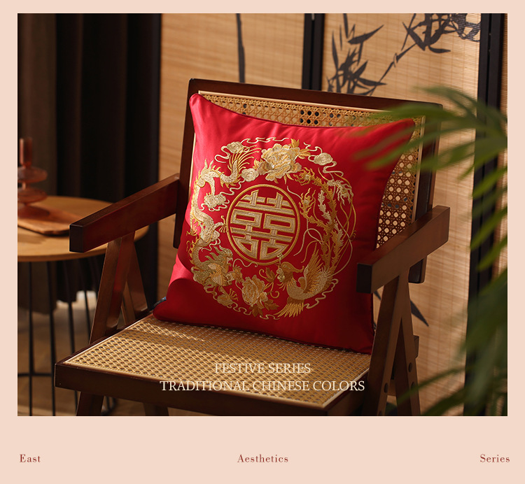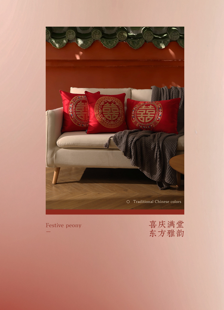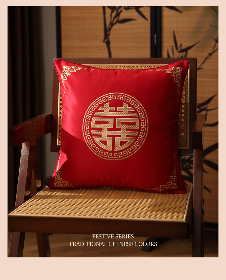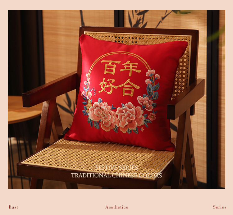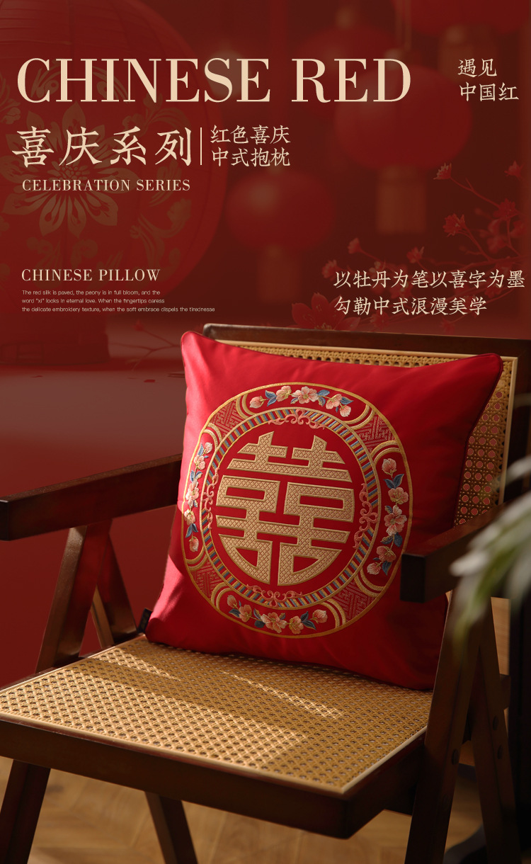 웨딩 레드 베개 중국 스타일 축제 장식 베개 소파 코튼 린넨 베개 커버 쿠션 거실 침대 베개 코어 베개