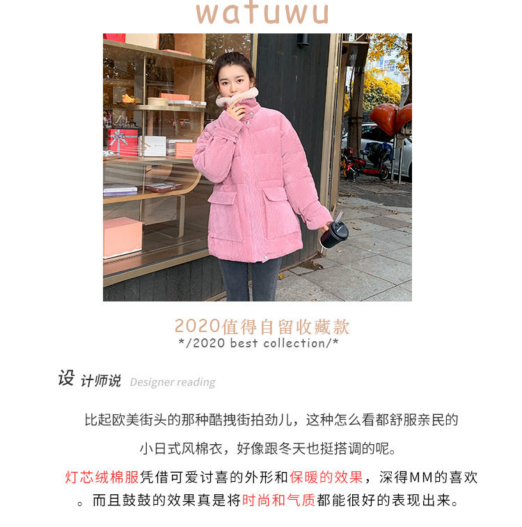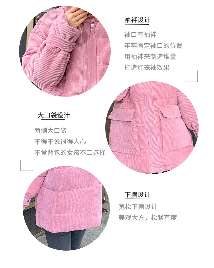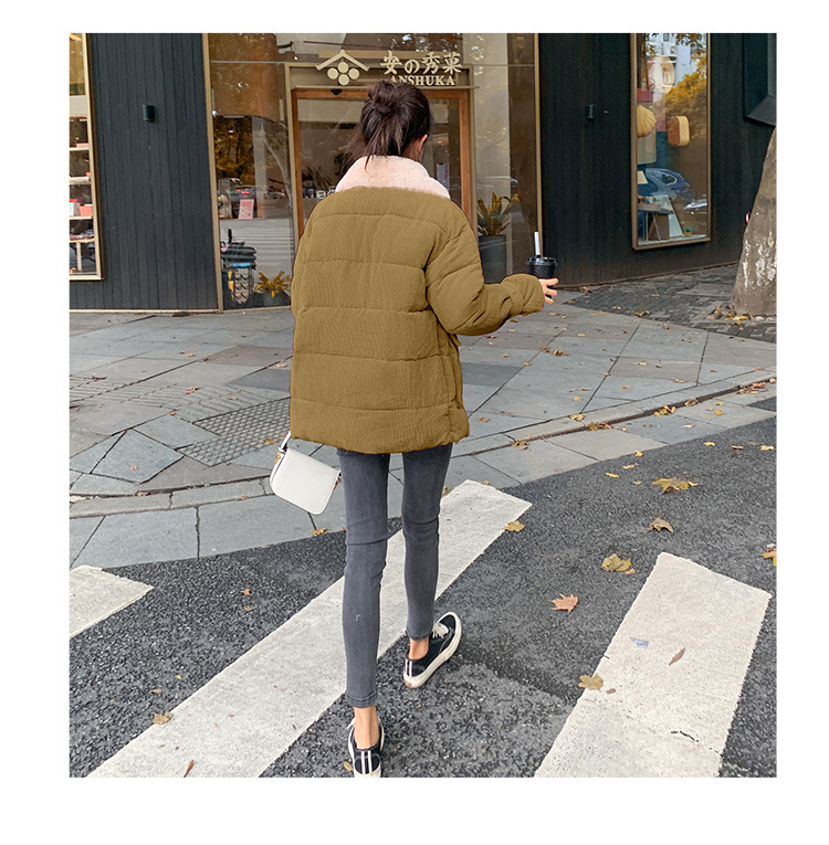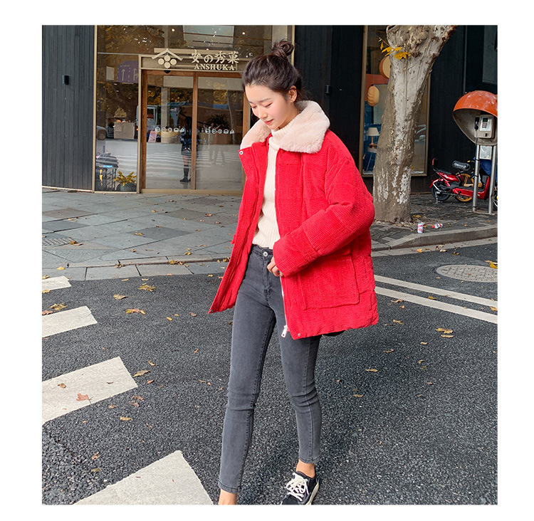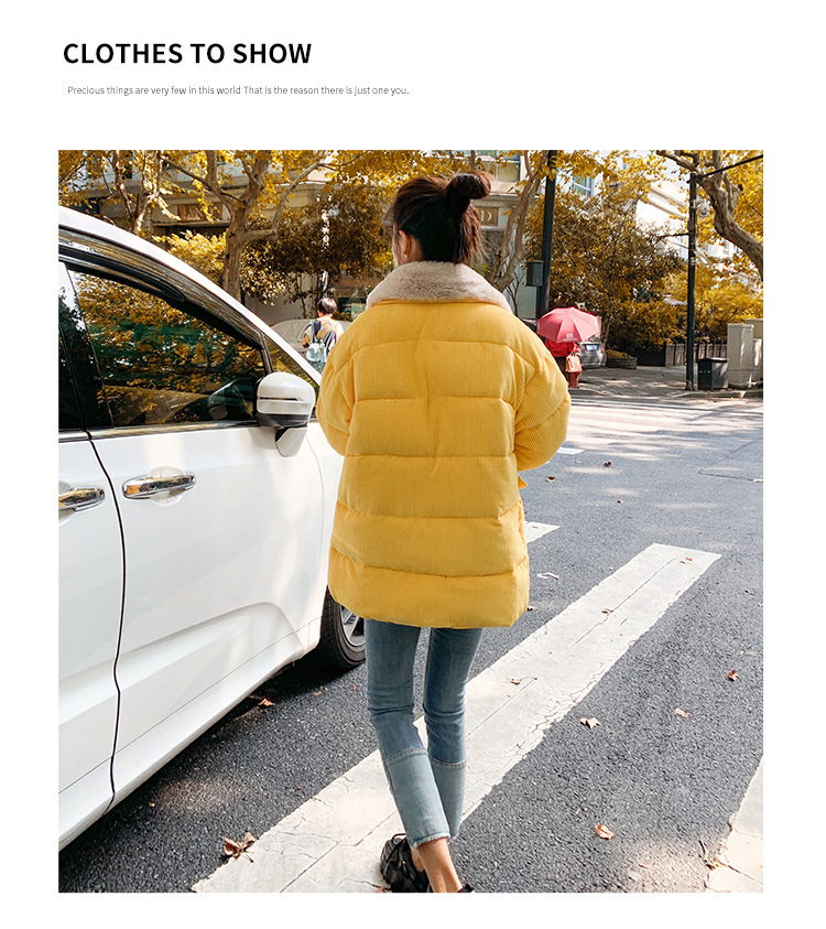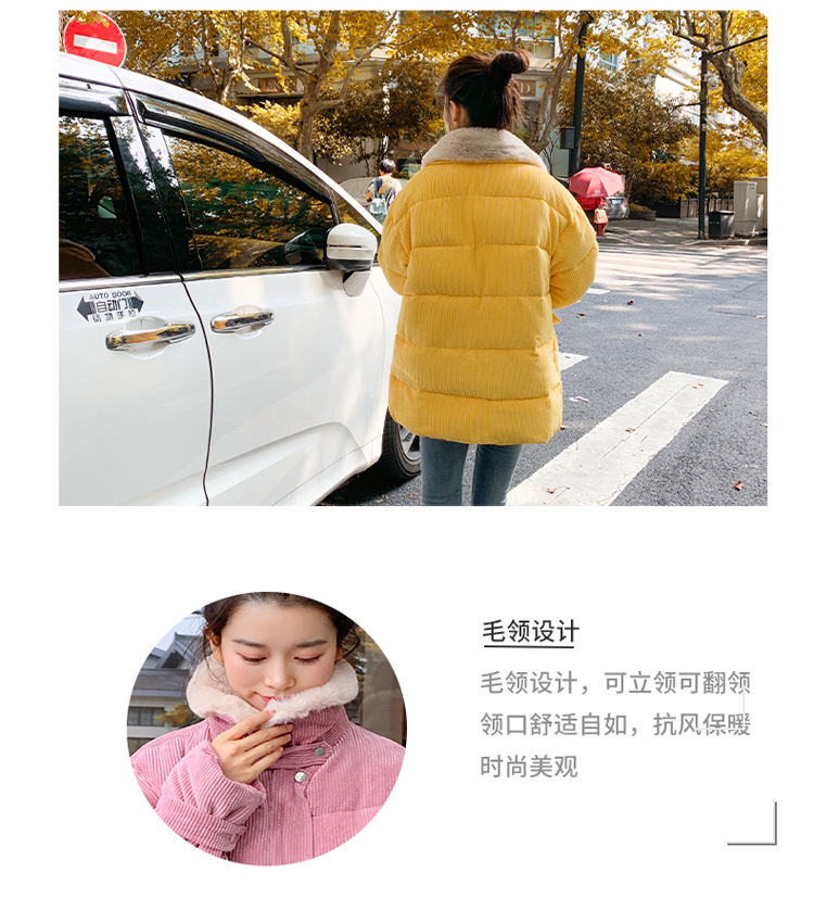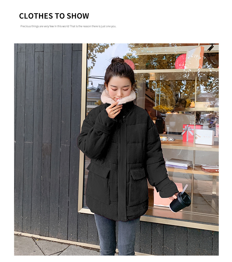 새로운 Ins Corduroy 학생 느슨한 빵 코트 플러스 사이즈 두꺼운 모피 칼라 다운 코튼 패딩 코트 여성용 코튼 패딩 코트 겨울