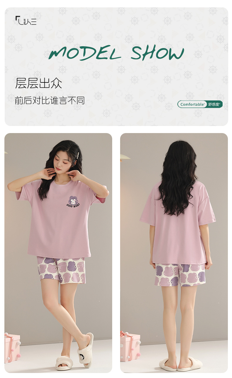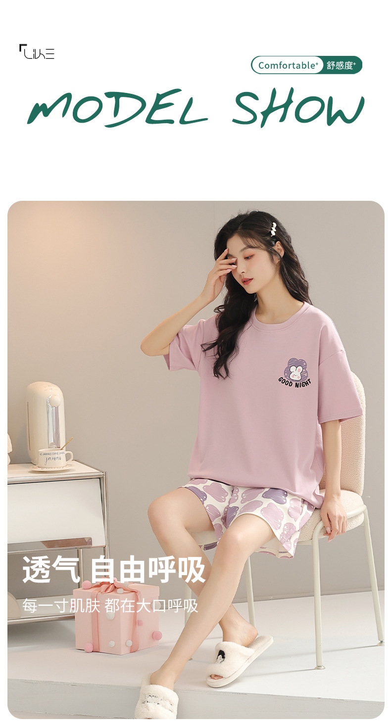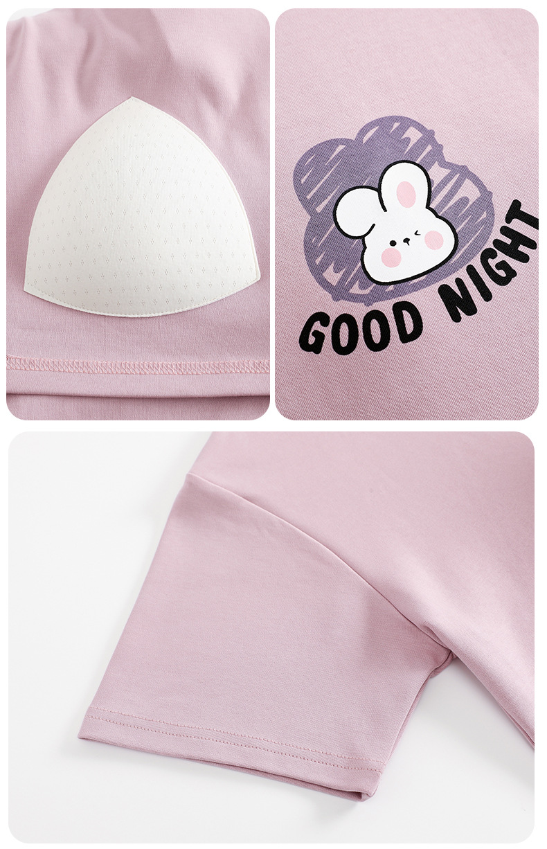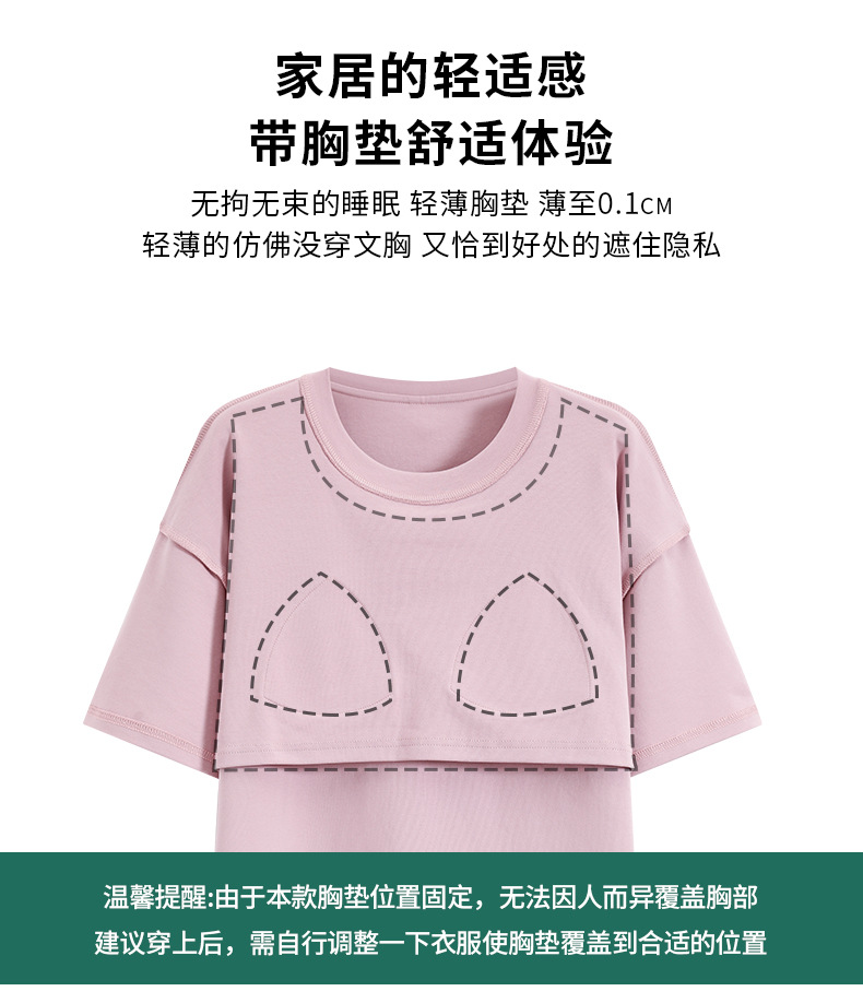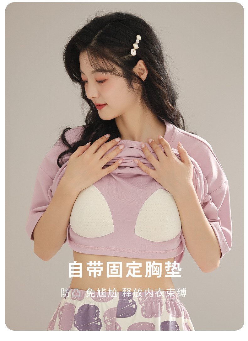 2026년 여름 신상 여성용 잠옷, 가슴 패드가 있는 반팔 3피스 세트, 면 소재, 인터넷 유명인들이 추천하는 인기 홈웨어