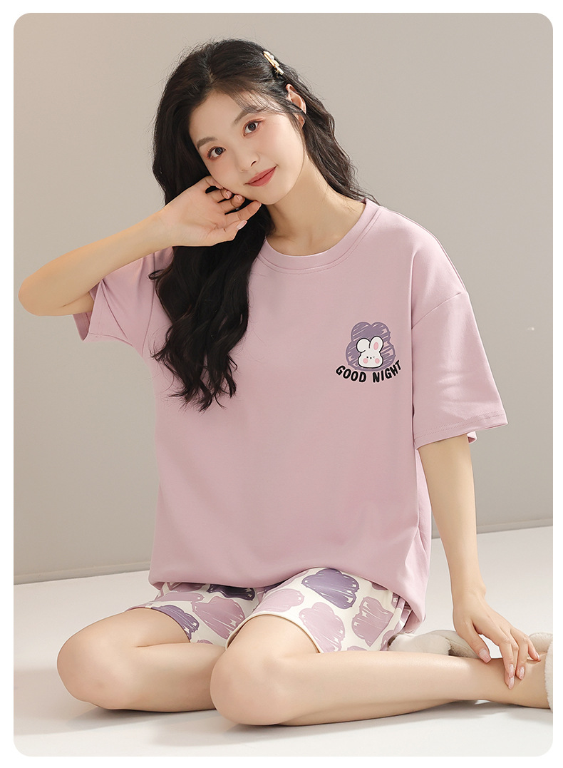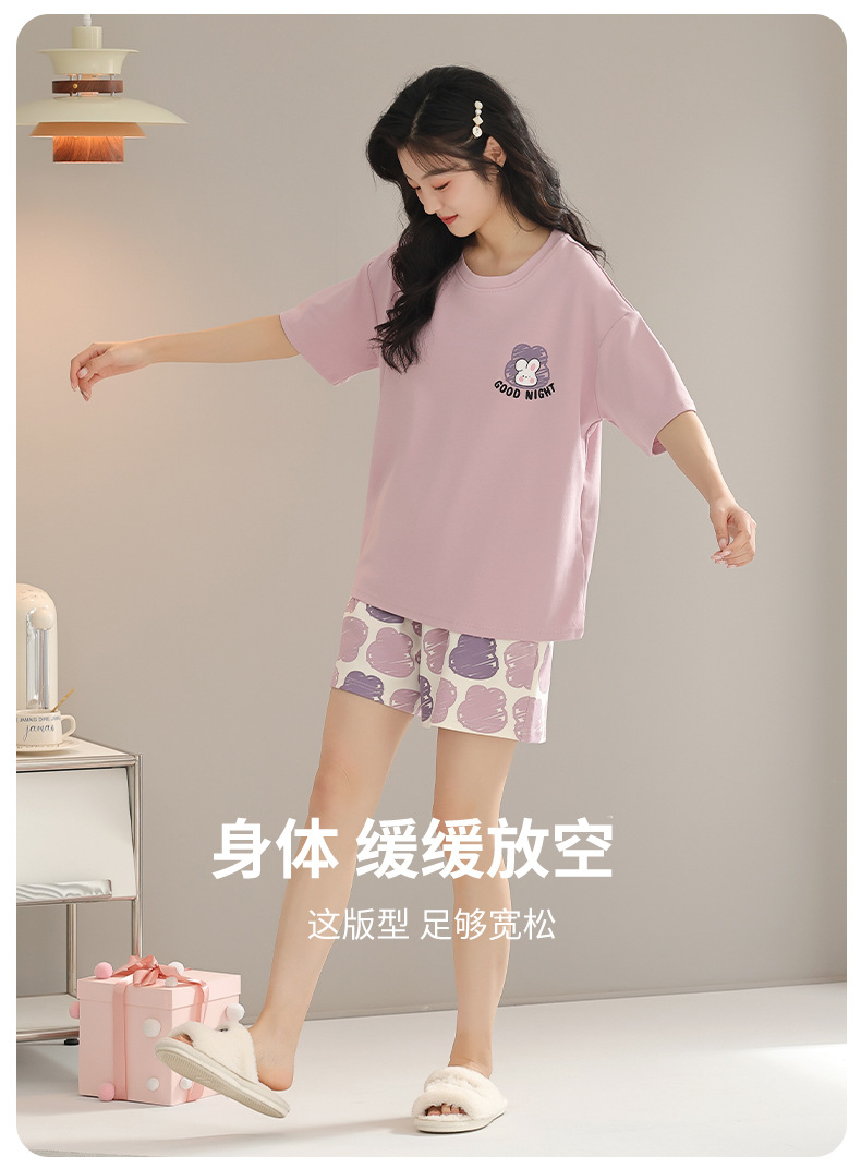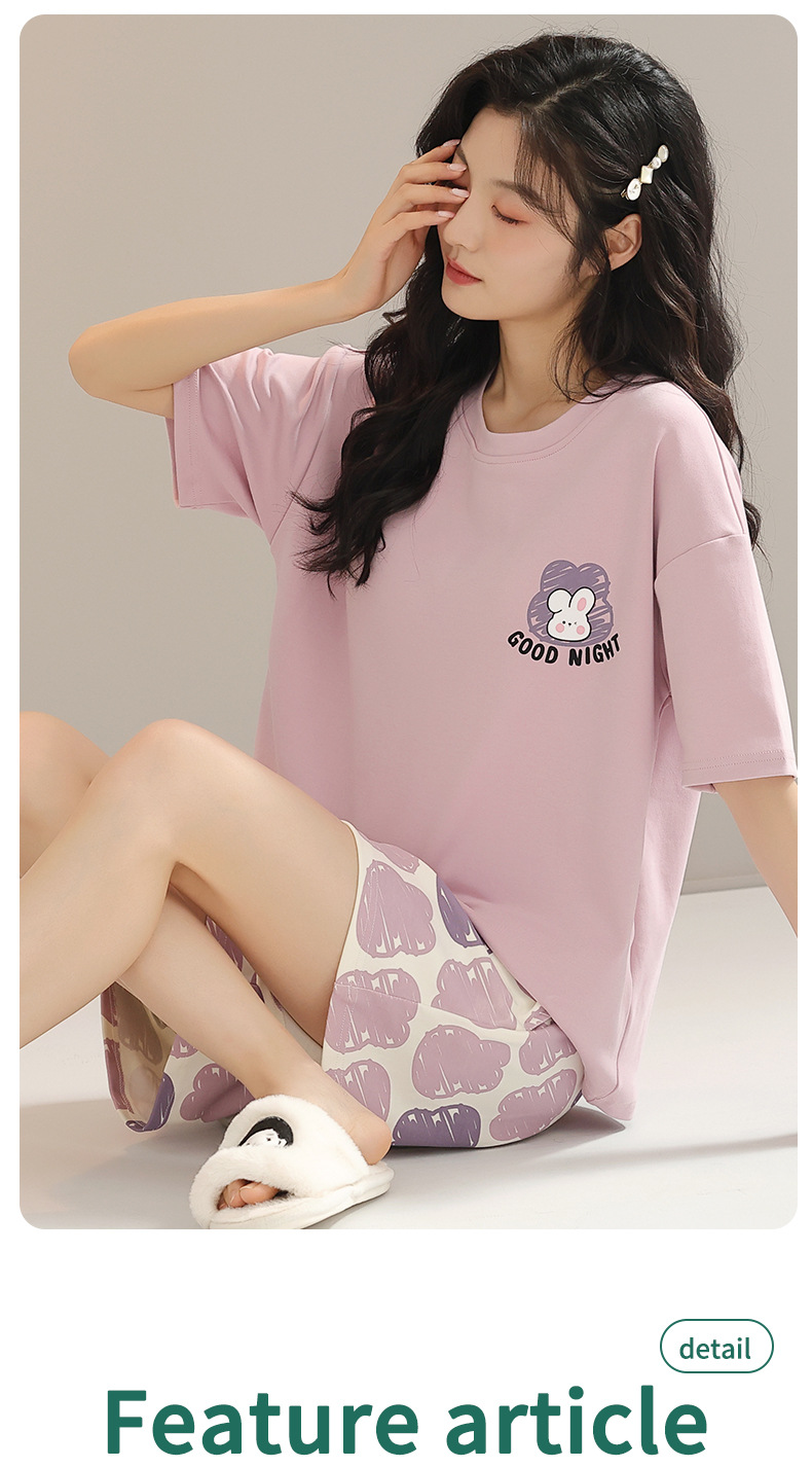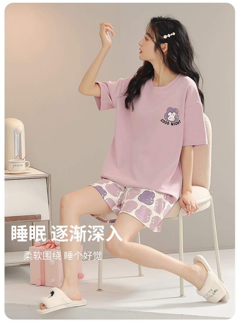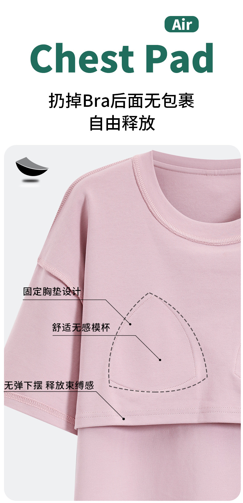 2026년 여름 신상 여성용 잠옷, 가슴 패드가 있는 반팔 3피스 세트, 면 소재, 인터넷 유명인들이 추천하는 인기 홈웨어