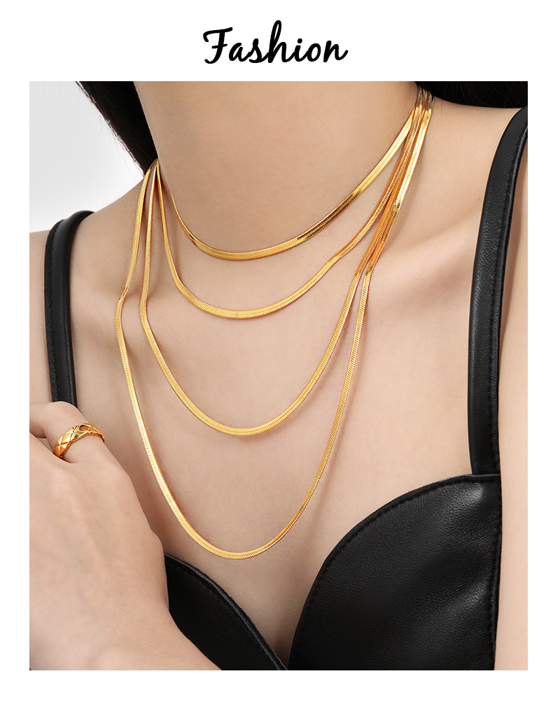 패션 크로스-국경 유럽과 미국의 간단한 플랫 뱀 뼈 체인 알몸 체인 목걸이 여성의 개성과 기질 올 매치 골드 도금 티타늄 스틸 쇄골 체인