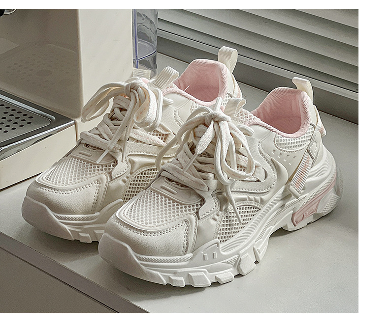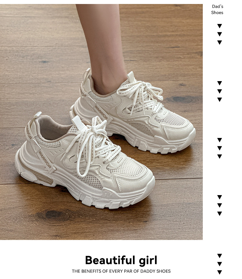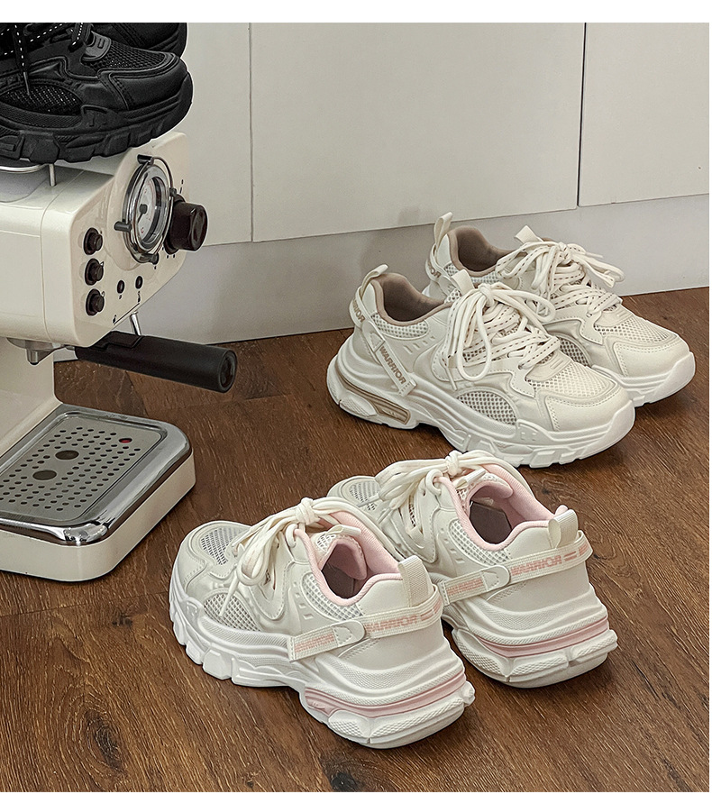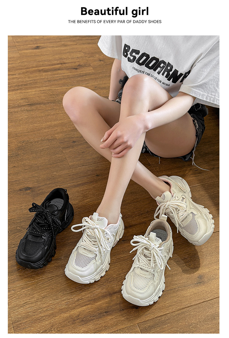 Huili 여성 신발 스포츠 메쉬 여성의 2024 새로운 라이트 런닝 슈즈 올 매치 봄 두꺼운 신발 토레 슈즈