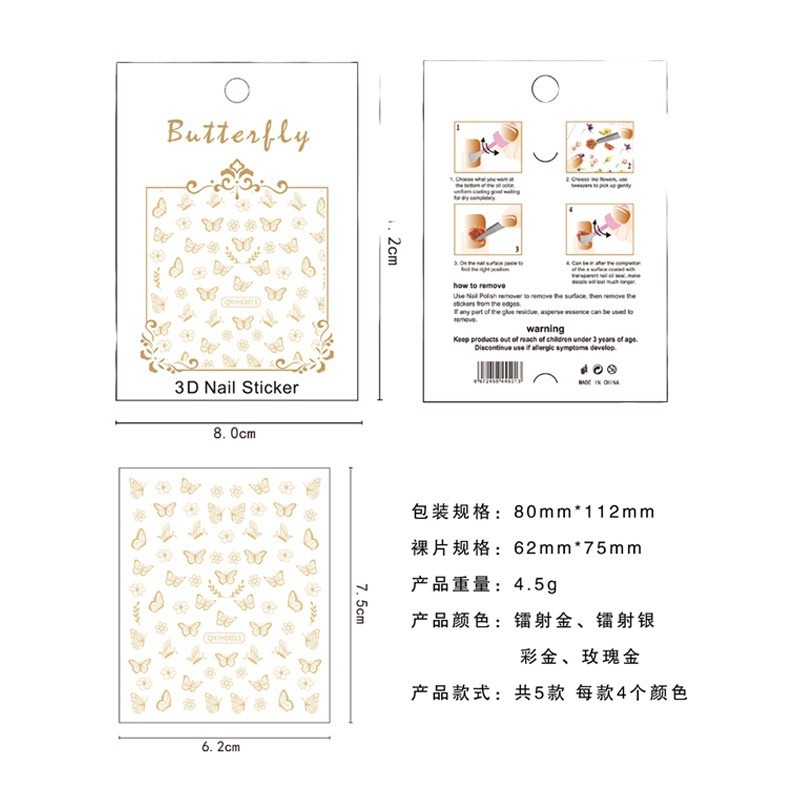 【名称】跨境爆款3D烫金蝴蝶美甲贴纸