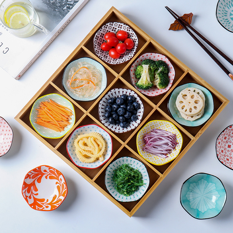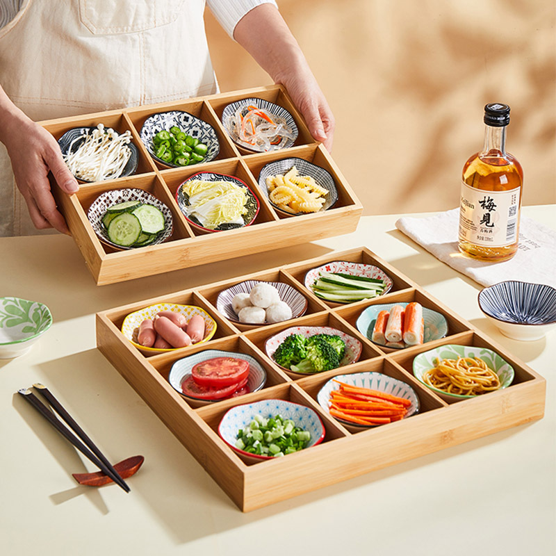 대나무와 나무 Jiugongge 뜨거운 냄비 접시 트레이 식기 플래터 바베큐 플레이트 오븐 간식 상자 말린 과일 플레이트