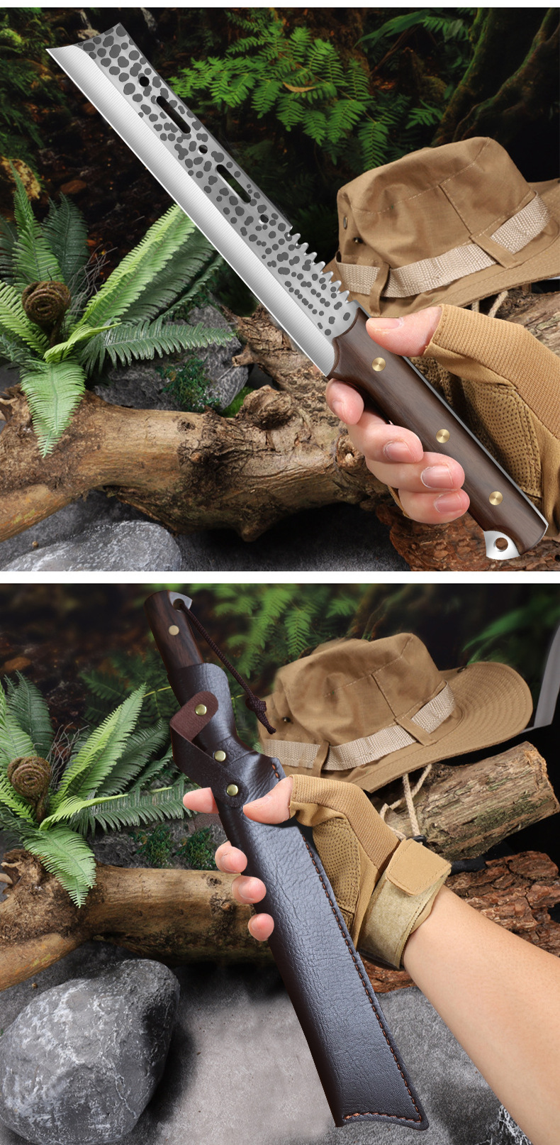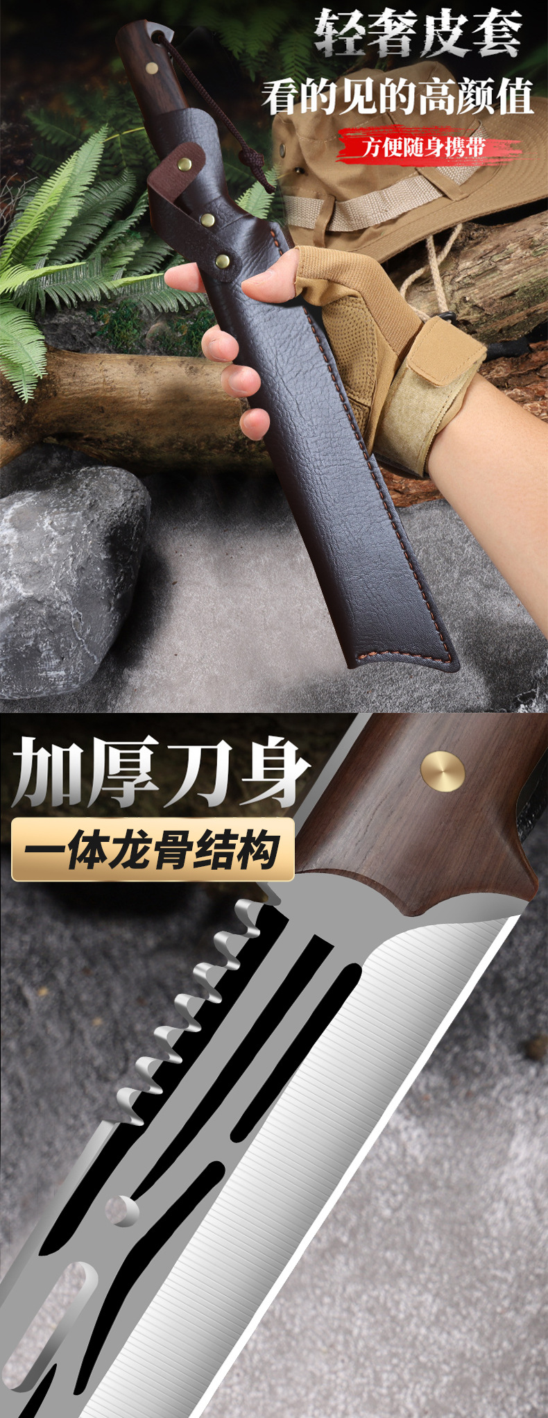 야외 정글 오픈 캠핑 휴대용 생존 절단 목재 절단 나이프 높은 경도 위조 날카로운 칼
