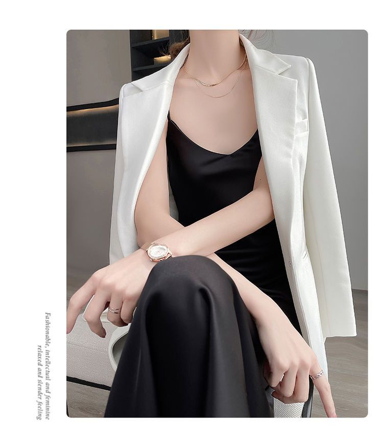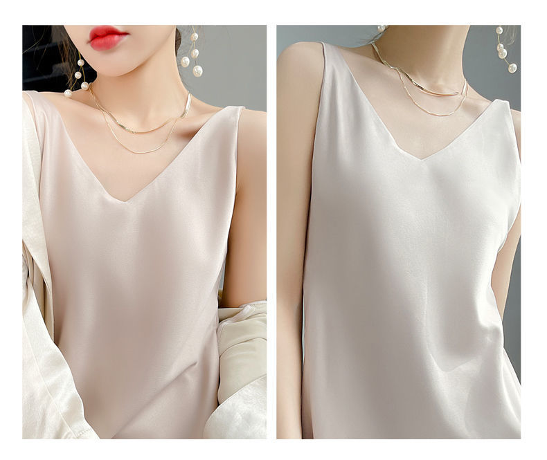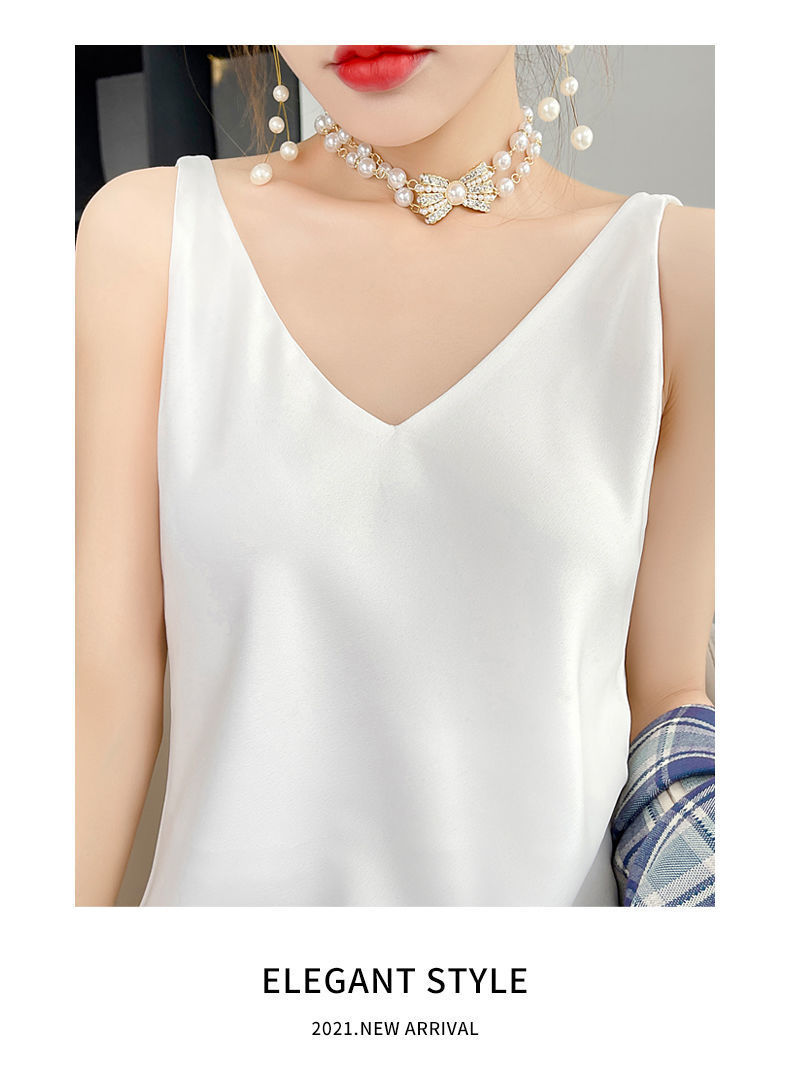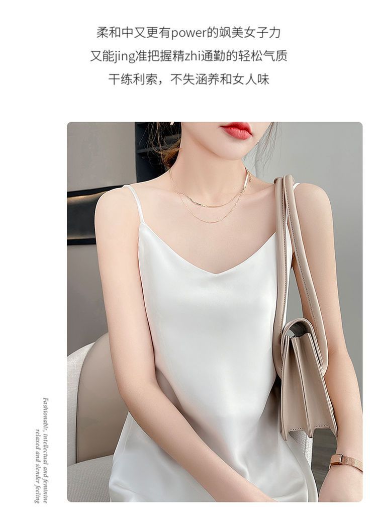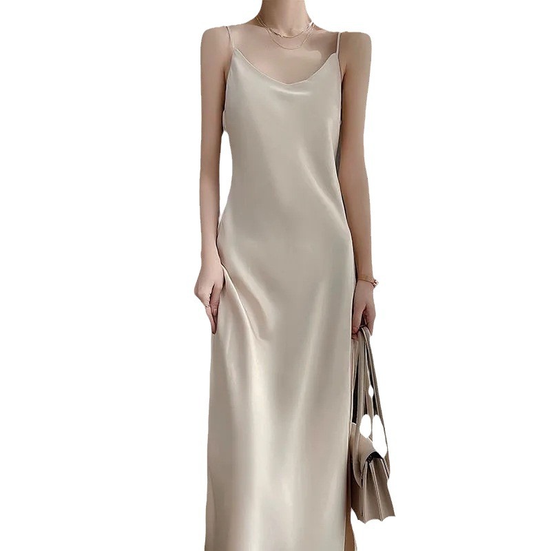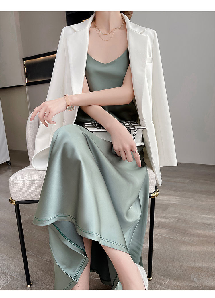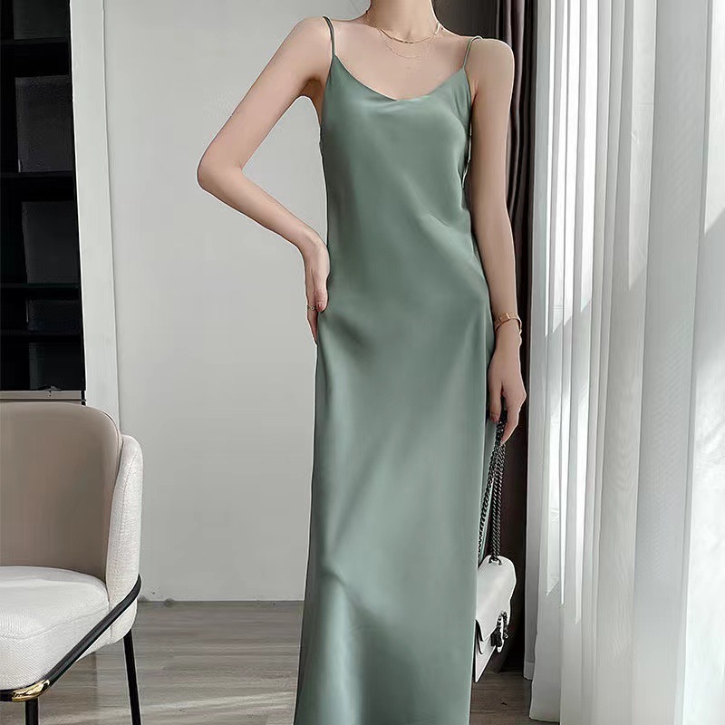 실크 반팔 서스펜더 드레스, 멀버리 실크, 고급 솔리드 컬러, 패셔너블한 스타일, 중간 길이, 루즈한 허리라인