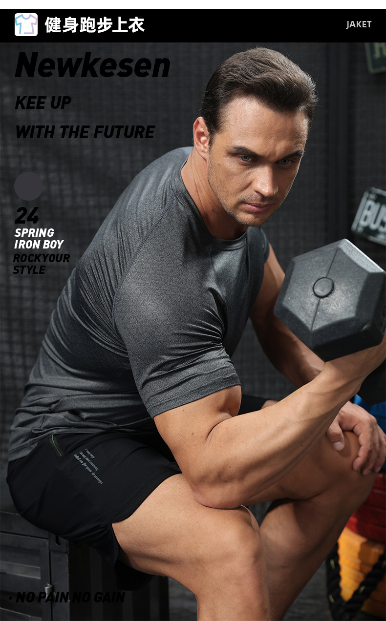 캐주얼 스포츠 반팔 티셔츠 남자 여름 얇은 빠른 건조 옷 야외 달리기 농구 훈련 피트니스 옷 탑