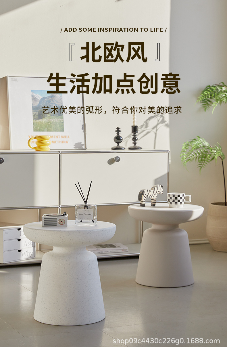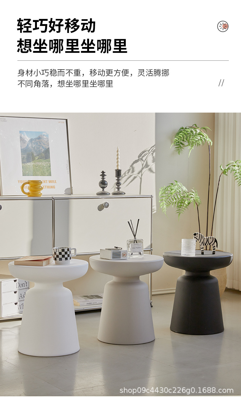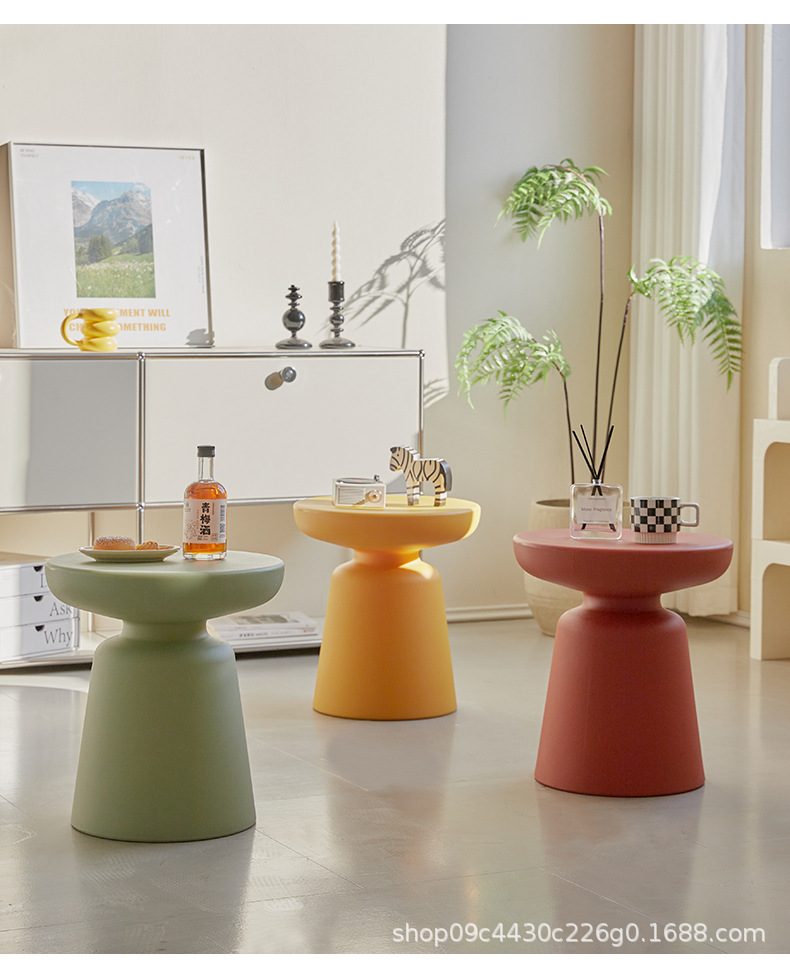 북유럽 간단한 버섯 커피 테이블 Ins 스타일 작은 아파트 가구 발코니 라운드 테이블 높은 색상 값 플라스틱 사이드 테이블