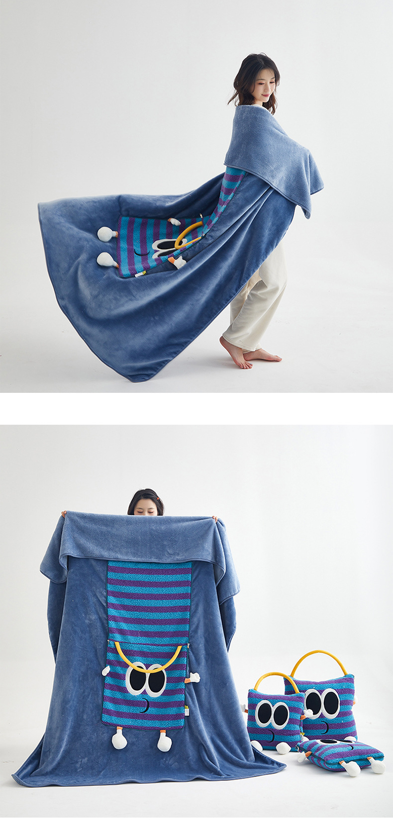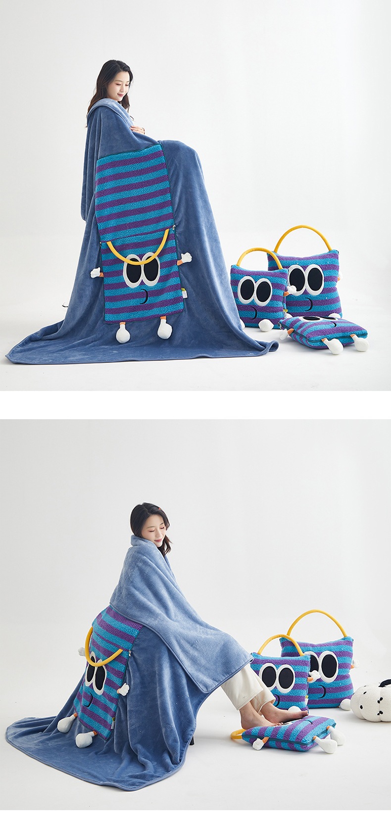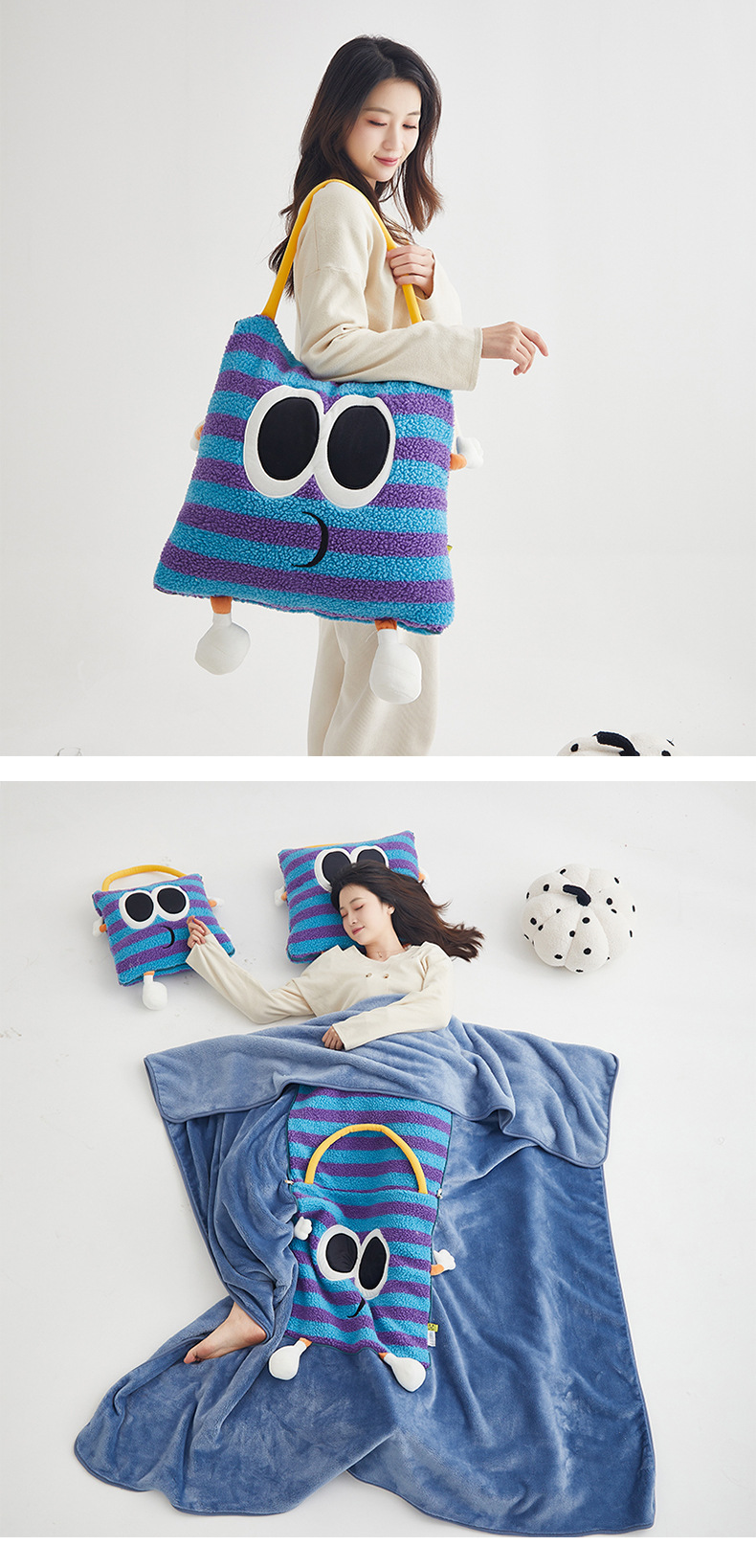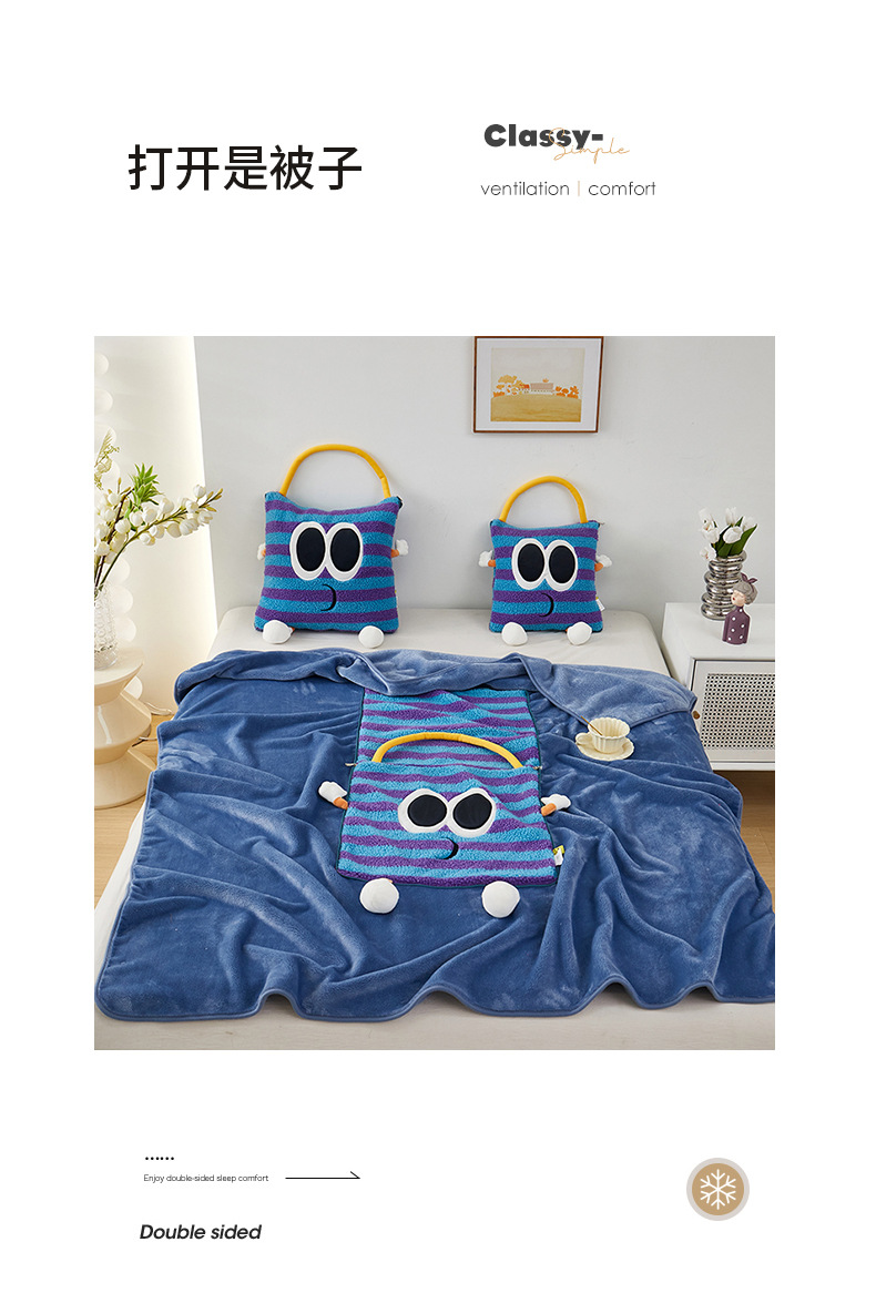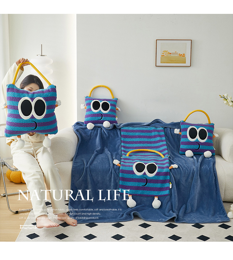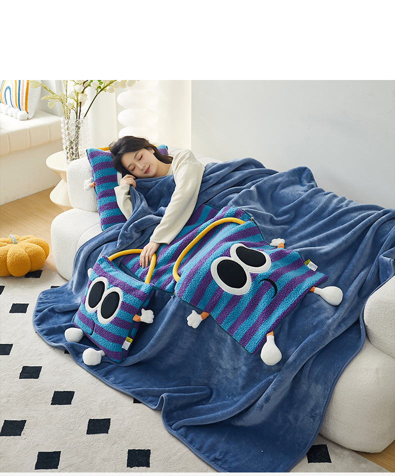 도파민 베개 담요 2-in-1 양털 베개 이불 학생 점심시간 쿠션 자동차 겸용 에어컨 이불