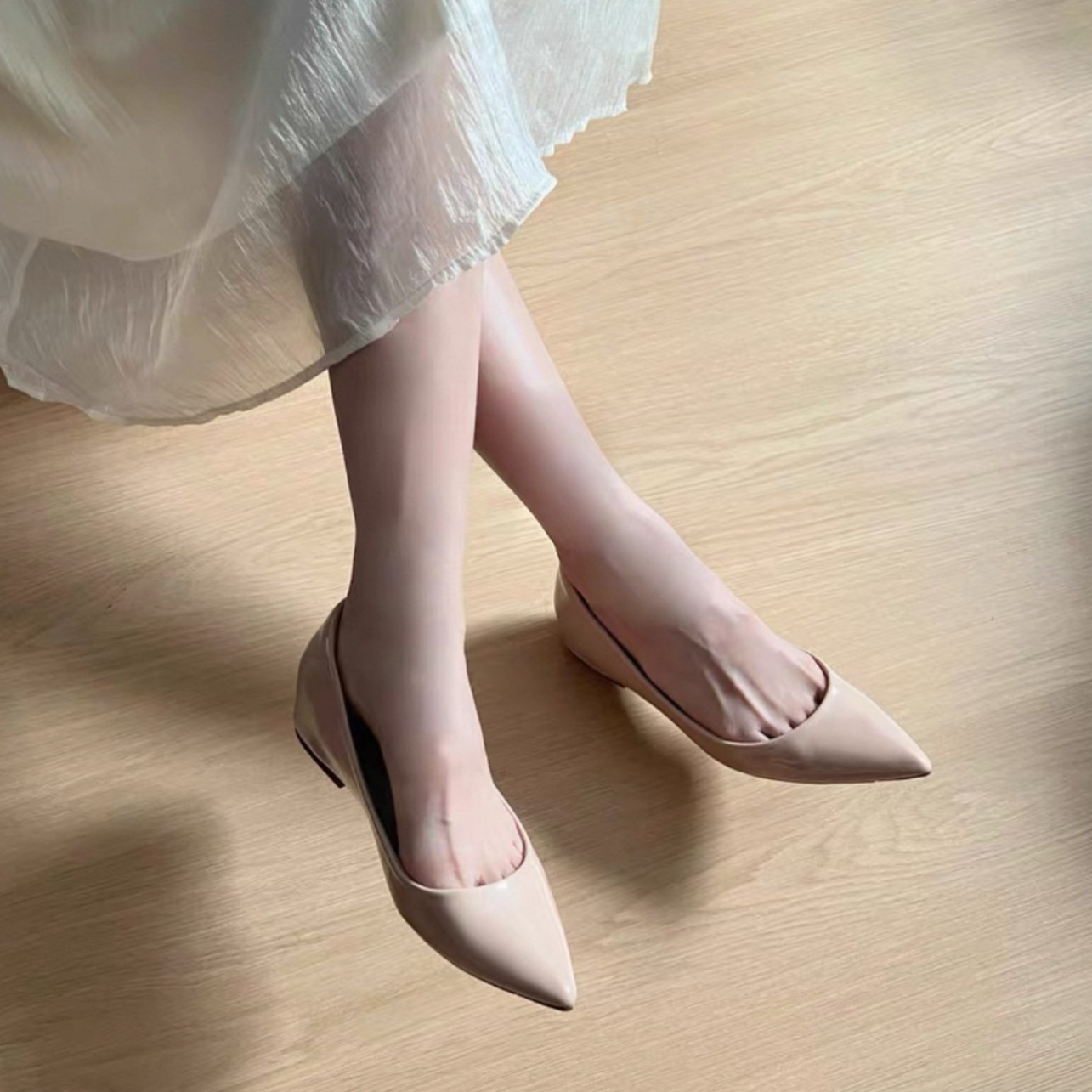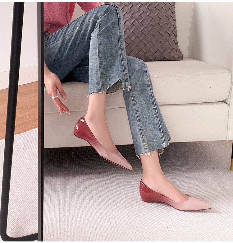 2025년 신상 봄 가을 프렌치 스타일 누드 컬러 키높이 뾰족코 플랫 슈즈 여성용 얇은 굽 다용도 출퇴근용 신발