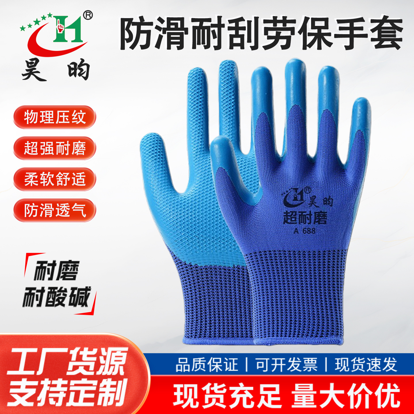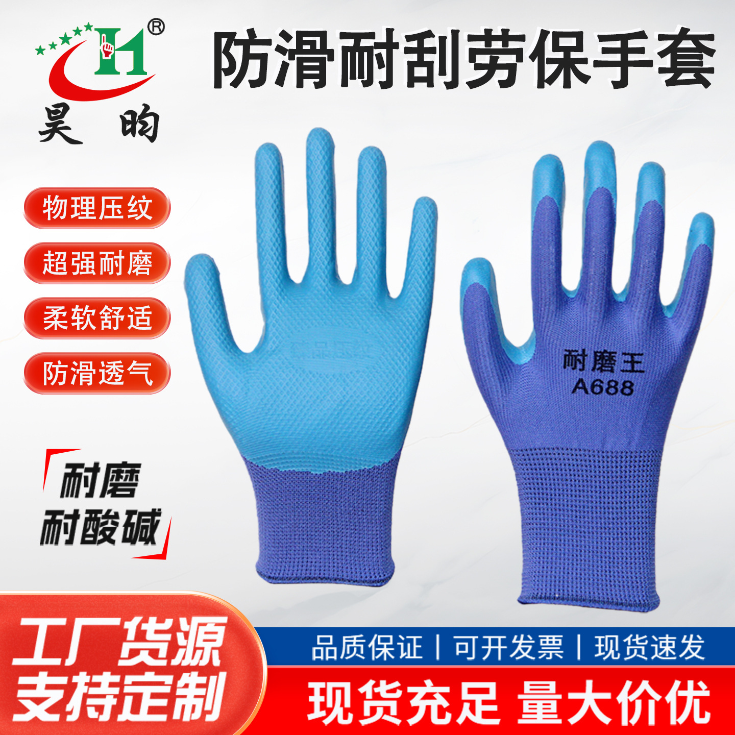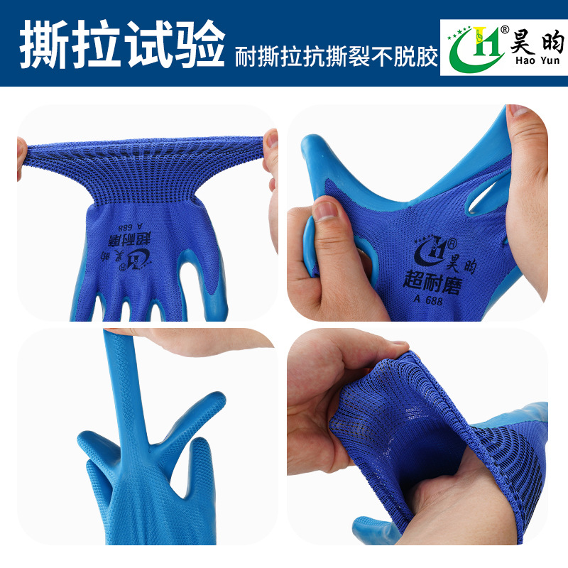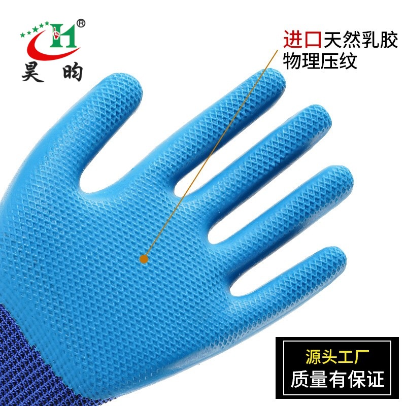하오윤 노동 보호용 물리적 엠보싱 내마모성 미끄럼 방지 두꺼운 라텍스 작업장용 내구성 있는 부드럽고 통기성 좋은 장갑