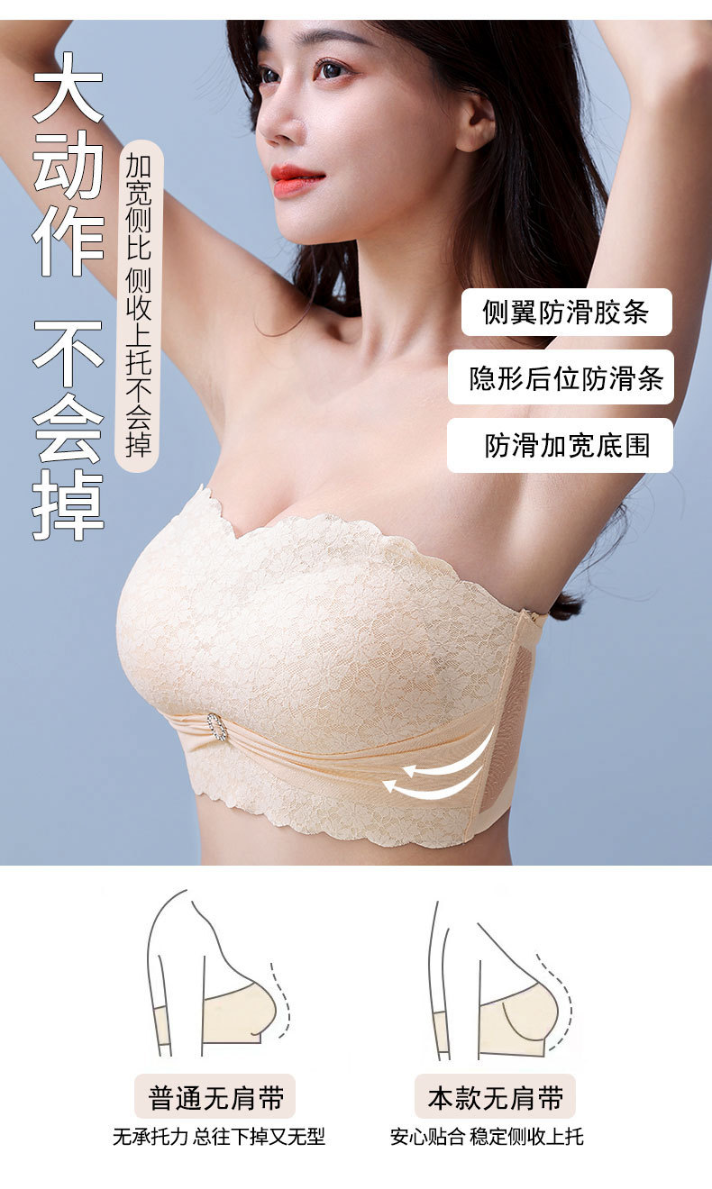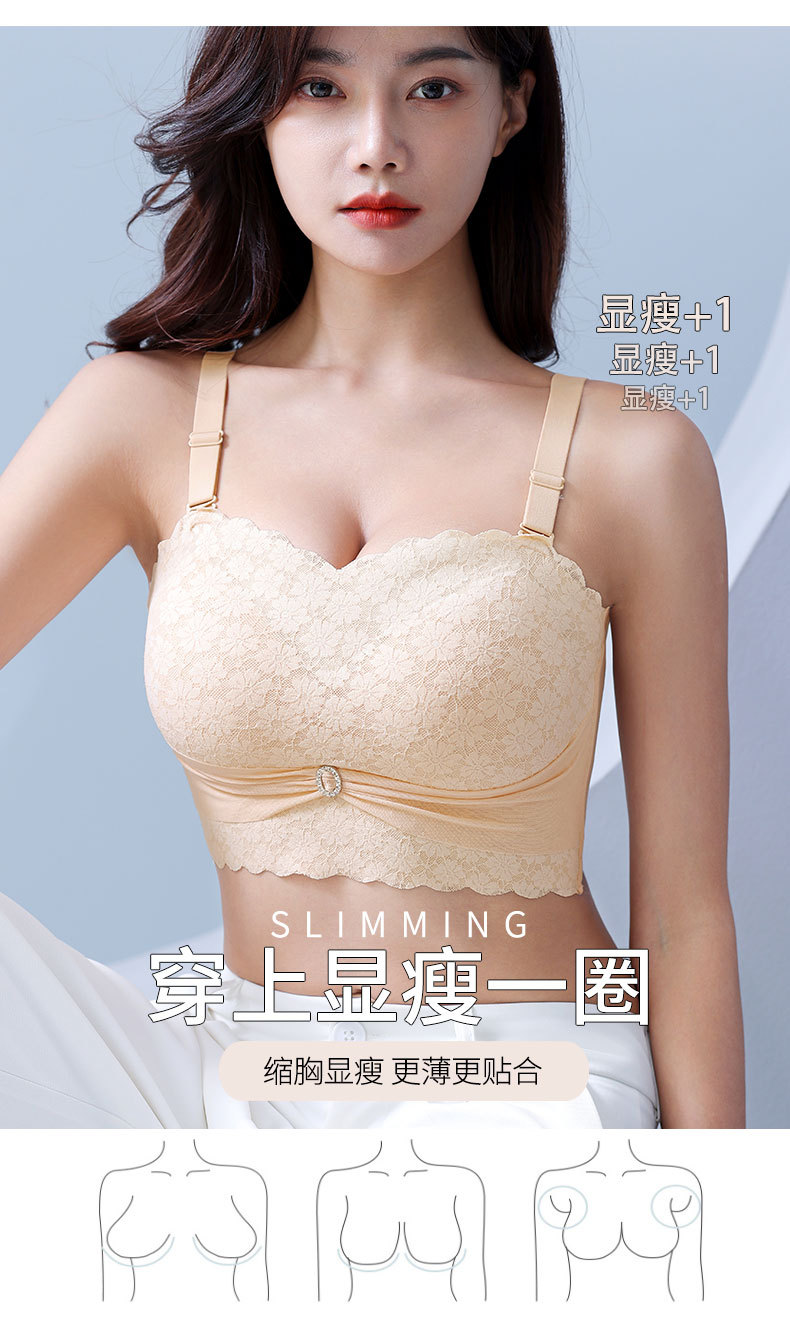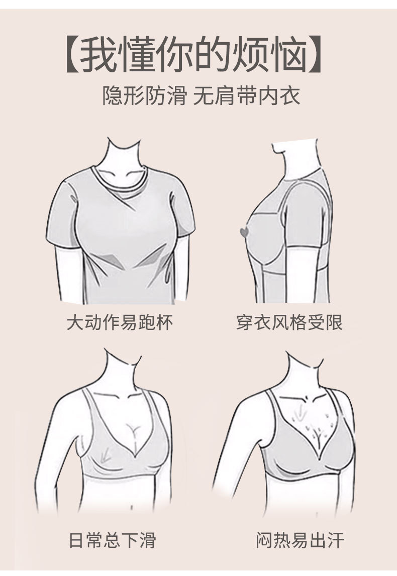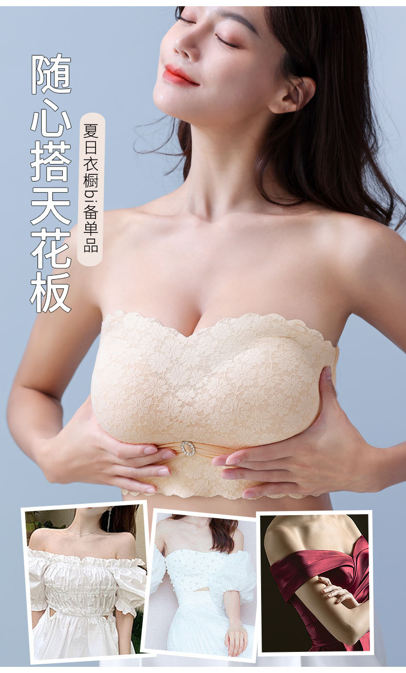여름 얇은 끈이없는 속옷 여성용 미끄럼 방지 가슴 포장 섹시한 끈이없는 브래지어 큰 브래지어 작은 가슴