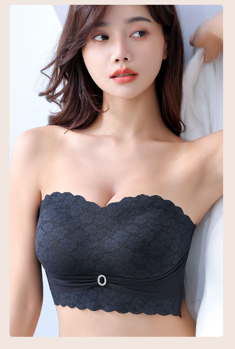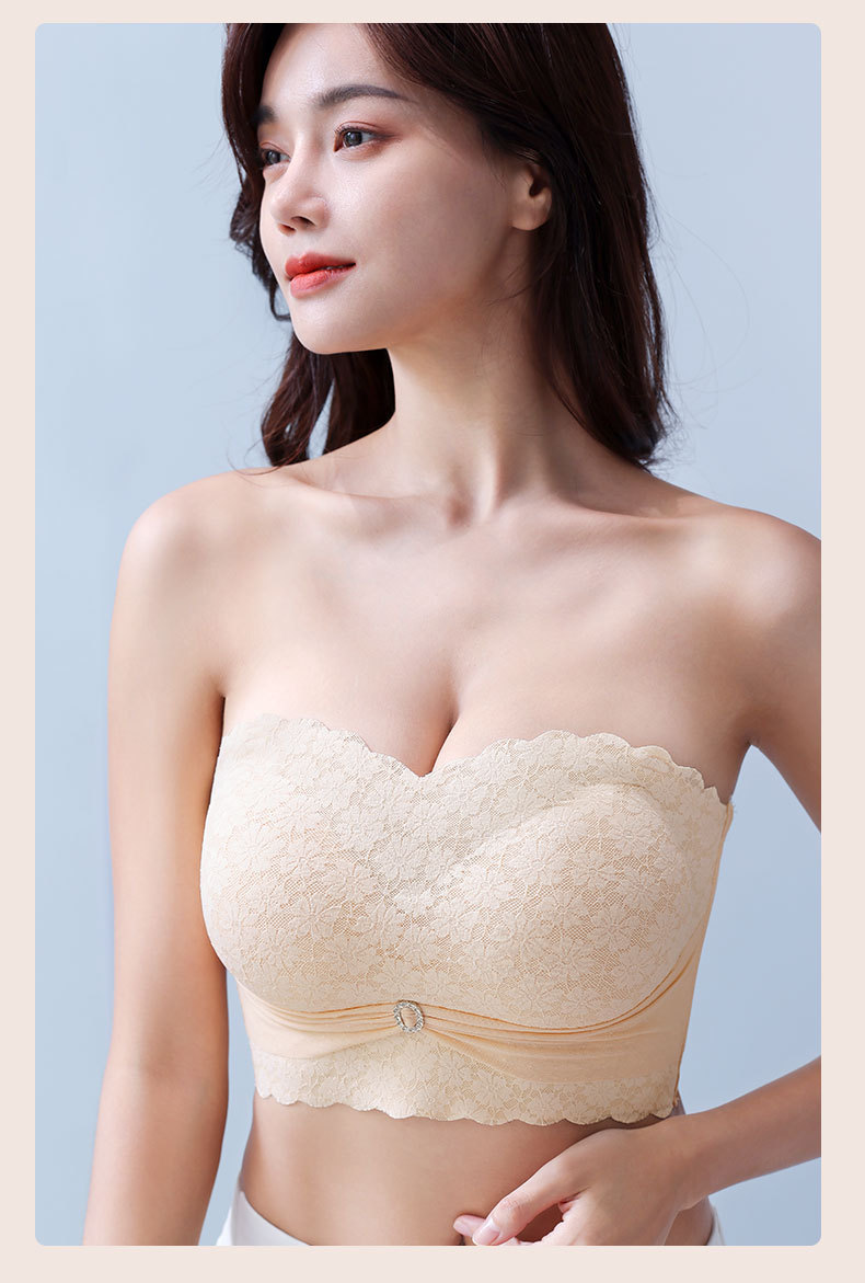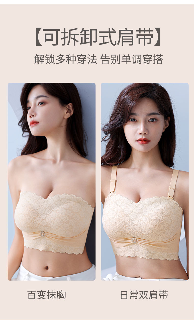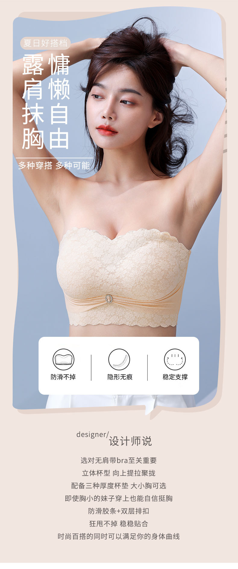 여름 얇은 끈이없는 속옷 여성용 미끄럼 방지 가슴 포장 섹시한 끈이없는 브래지어 큰 브래지어 작은 가슴