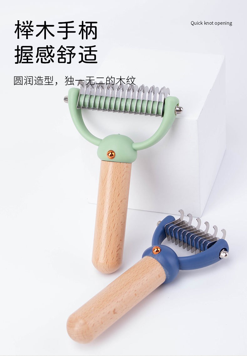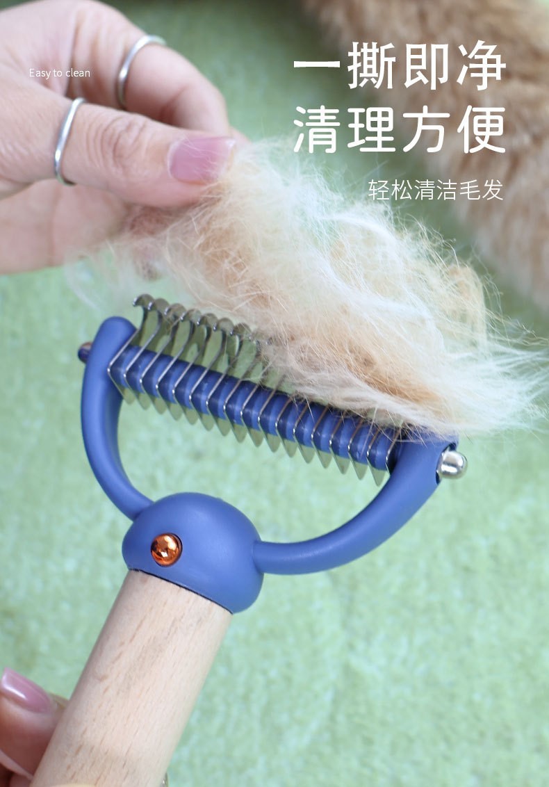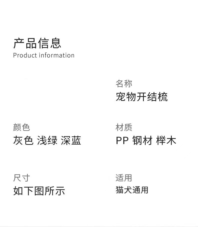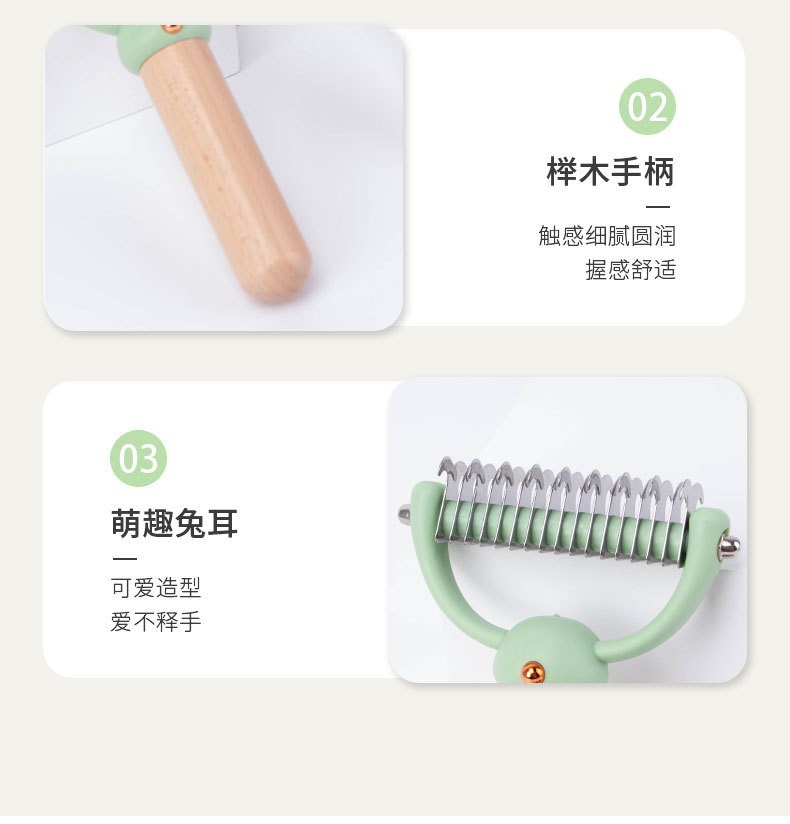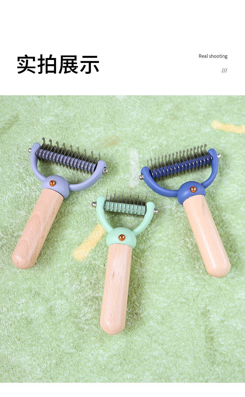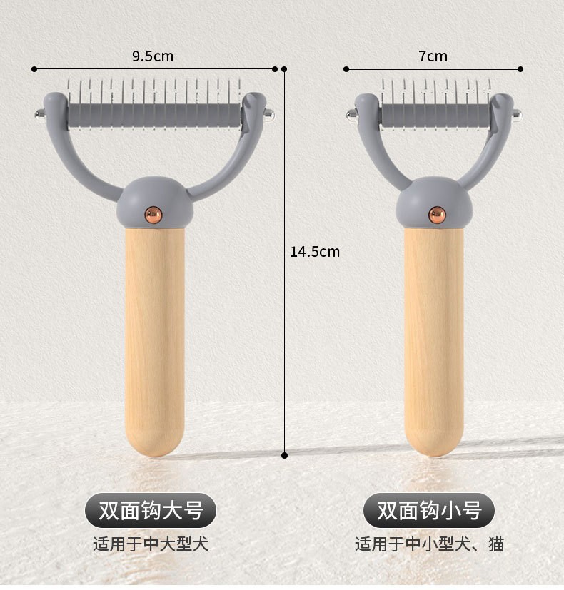 用途/卖点:宠物开结梳可以去除猫和狗狗的浮毛,而使用实木手柄不锈钢双钩齿梳则能有效去除猫和狗身上的杂质。这款不锈钢双面梳子不仅可以梳理毛发,还可以用于褪毛用途。它是一款多功能性强的猫狗去毛用品,非常实用。