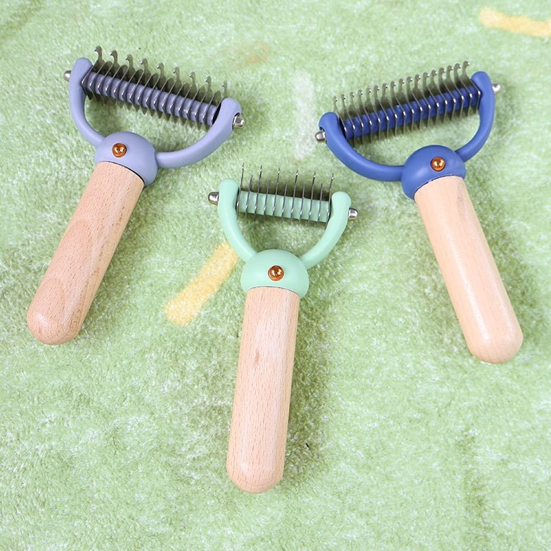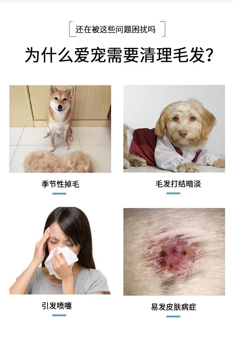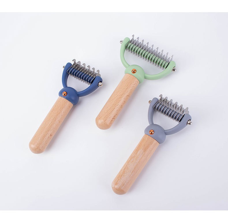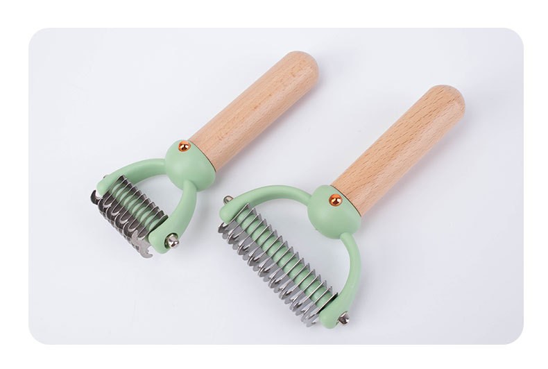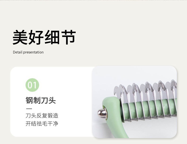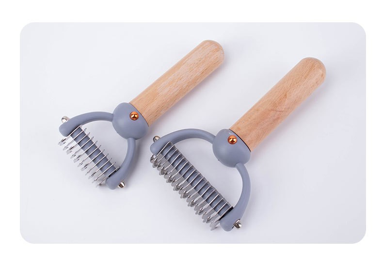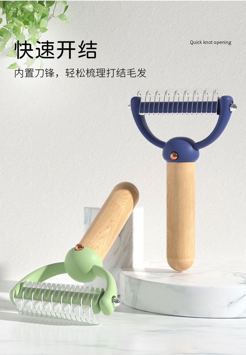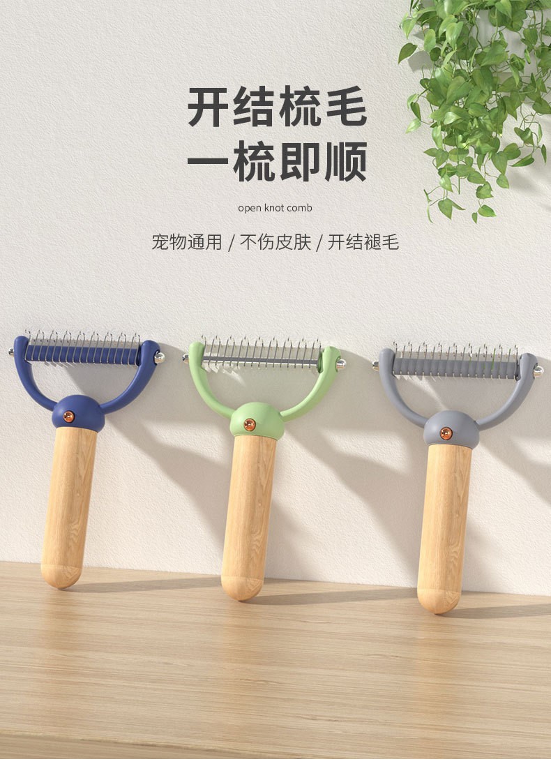 用途/卖点:宠物开结梳可以去除猫和狗狗的浮毛,而使用实木手柄不锈钢双钩齿梳则能有效去除猫和狗身上的杂质。这款不锈钢双面梳子不仅可以梳理毛发,还可以用于褪毛用途。它是一款多功能性强的猫狗去毛用品,非常实用。