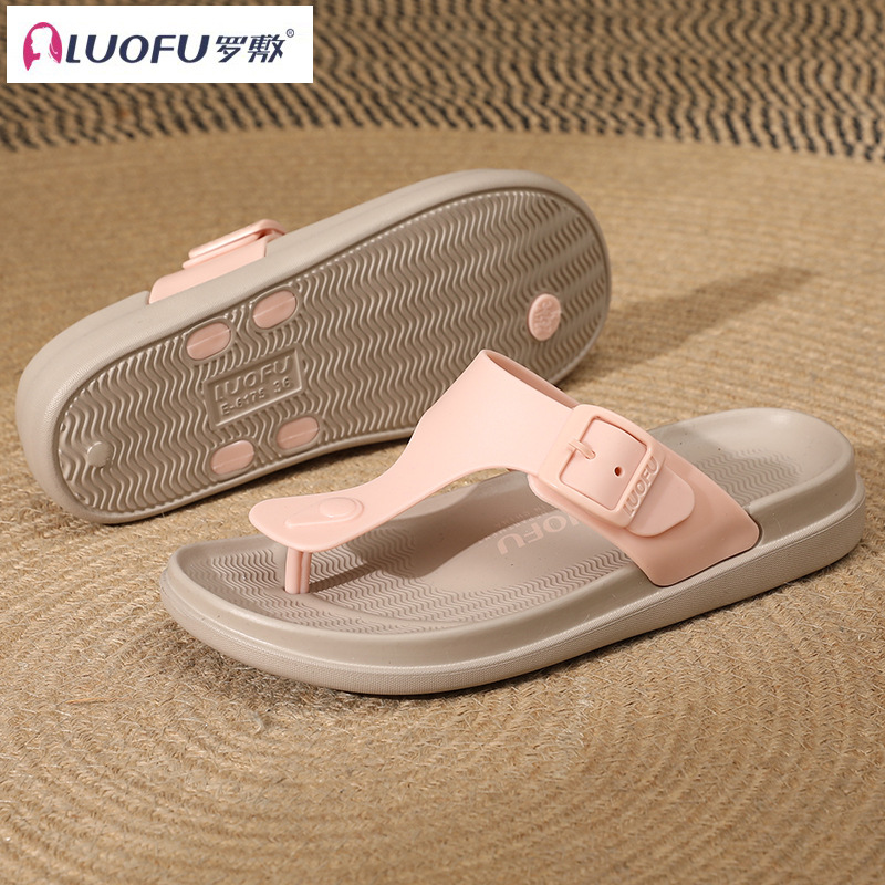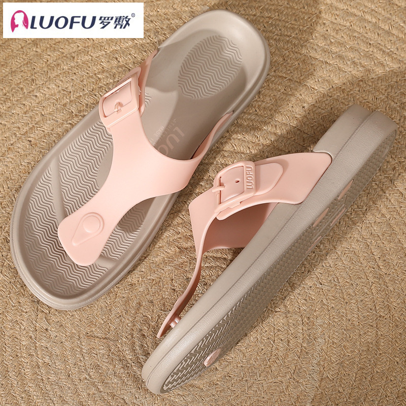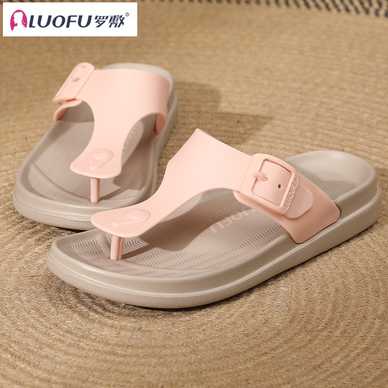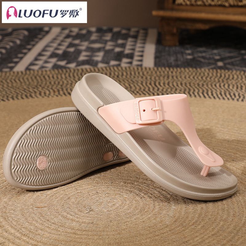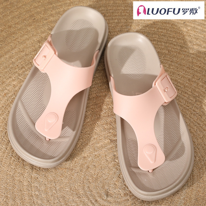 Luofu 미끄럼 방지 웨지 플립 플롭 여성용 캐주얼 여름 외부 착용 통 샌들 미드 힐 아우터 착용 두꺼운 밑창 샌들