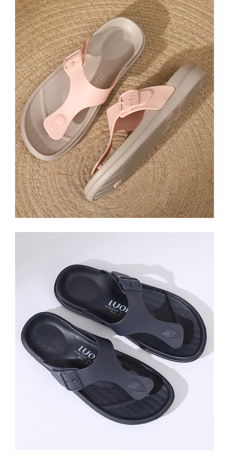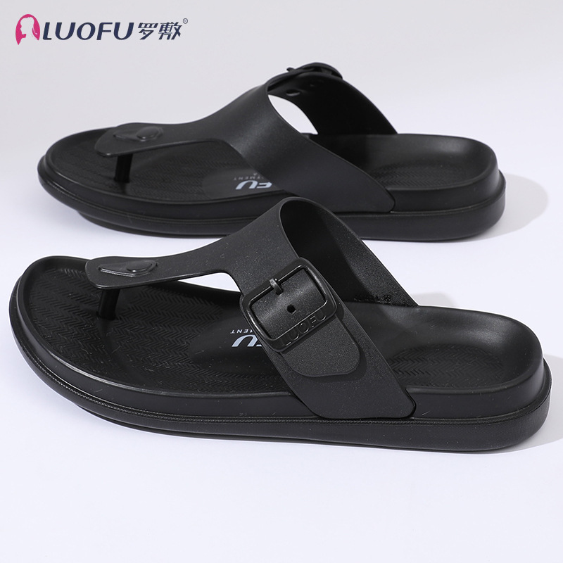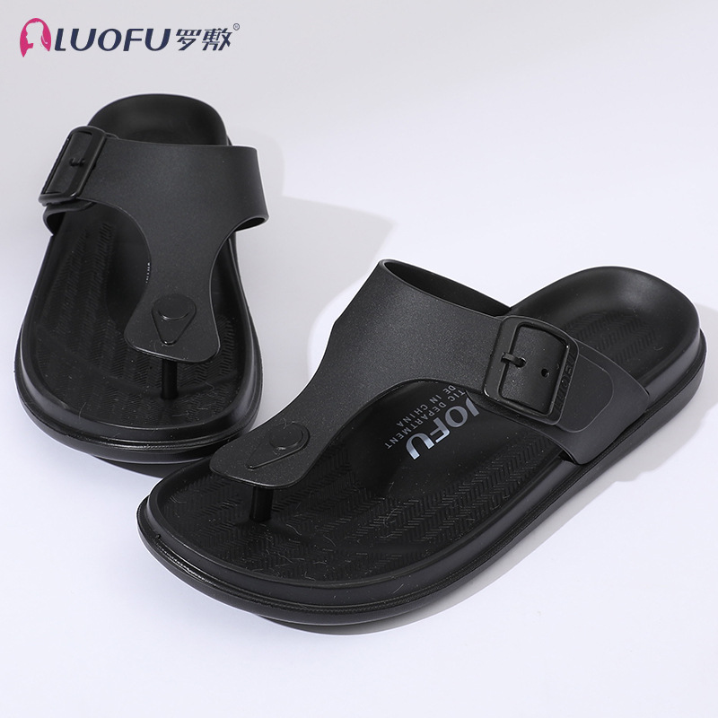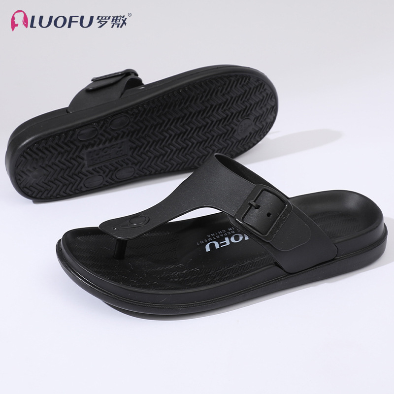 Luofu 미끄럼 방지 웨지 플립 플롭 여성용 캐주얼 여름 외부 착용 통 샌들 미드 힐 아우터 착용 두꺼운 밑창 샌들