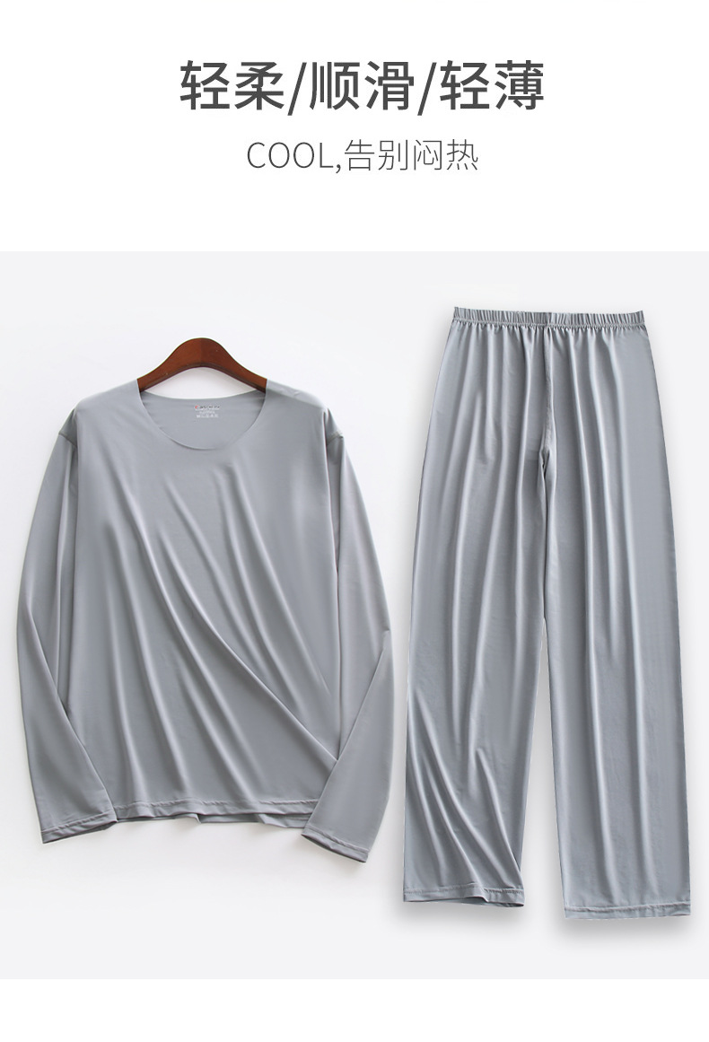 [리퀴드 아이스 실크] 봄과 여름 초박형 남자 긴팔 9 점 바지 파자마 세트 고탄성 홈 옷