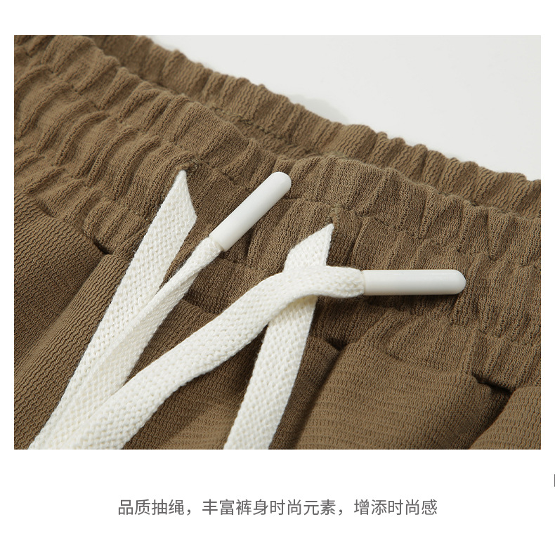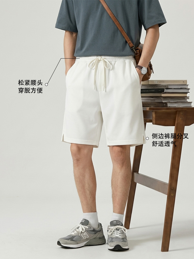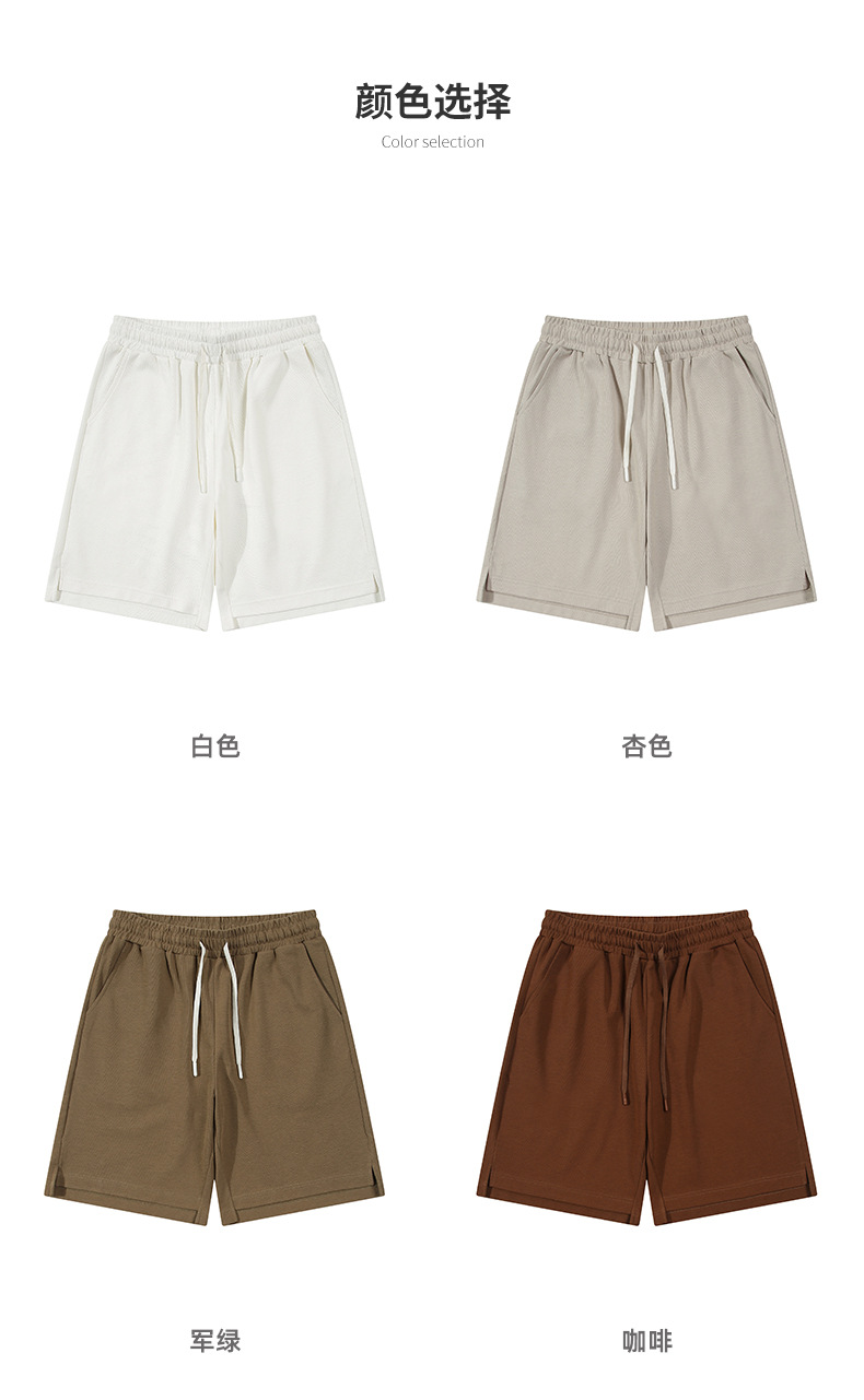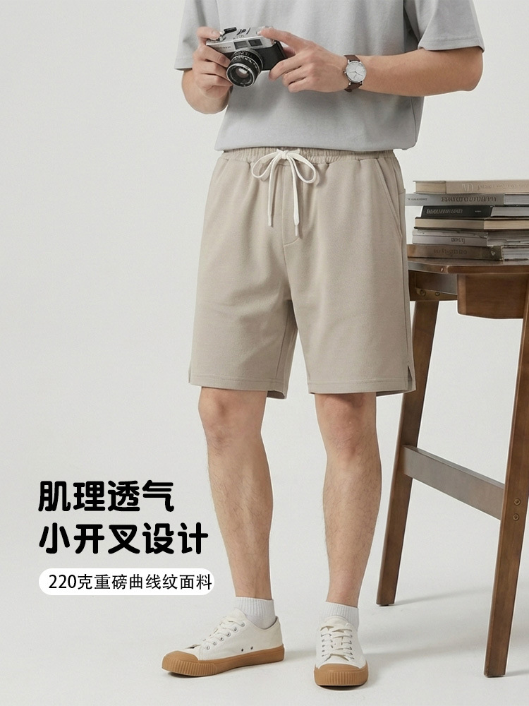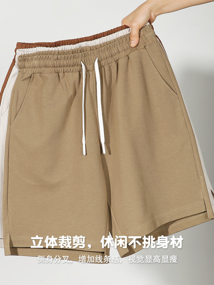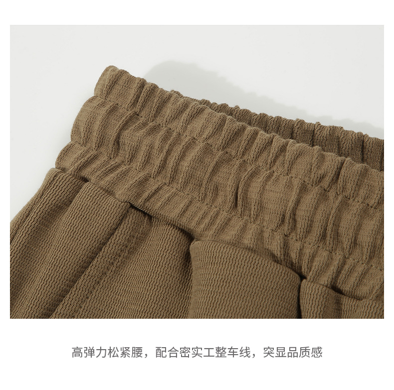 덩지에 남성복 2026 반바지, 신축성 있는 허리, 질감 있는 단색, 루즈핏, 스플릿 디자인, 스포츠 5부 바지, 아메리칸 레트로 스타일
