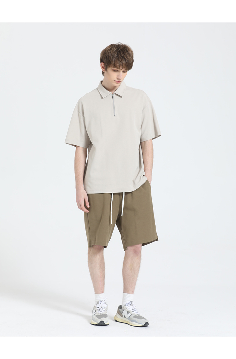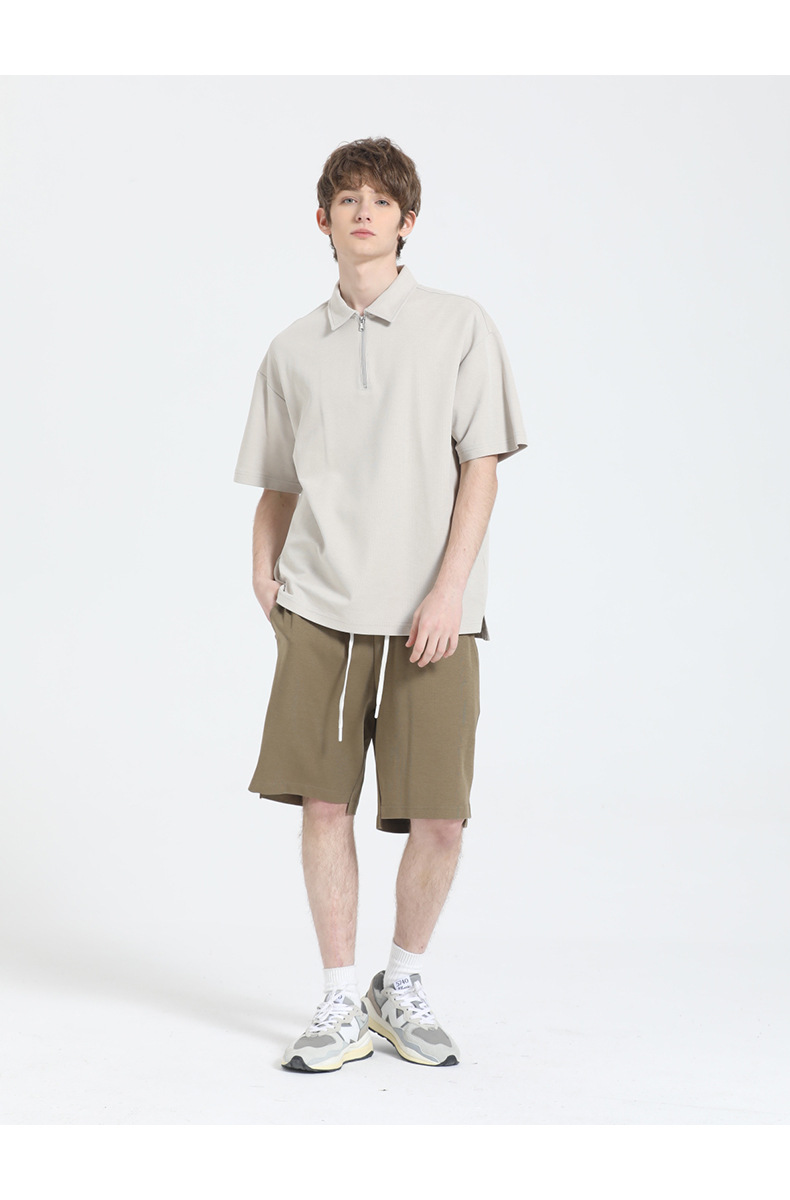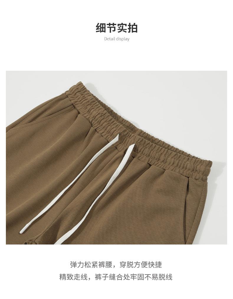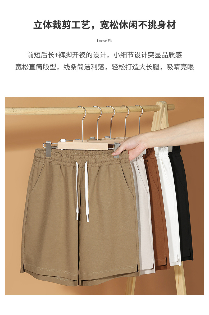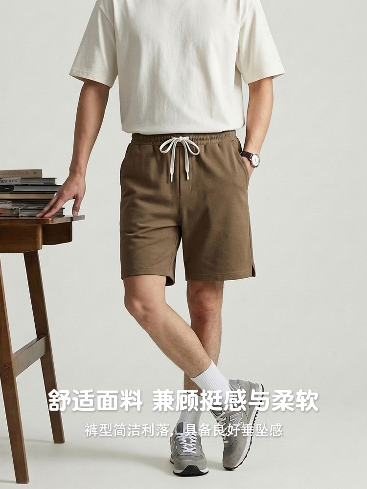 덩지에 남성복 2026 반바지, 신축성 있는 허리, 질감 있는 단색, 루즈핏, 스플릿 디자인, 스포츠 5부 바지, 아메리칸 레트로 스타일
