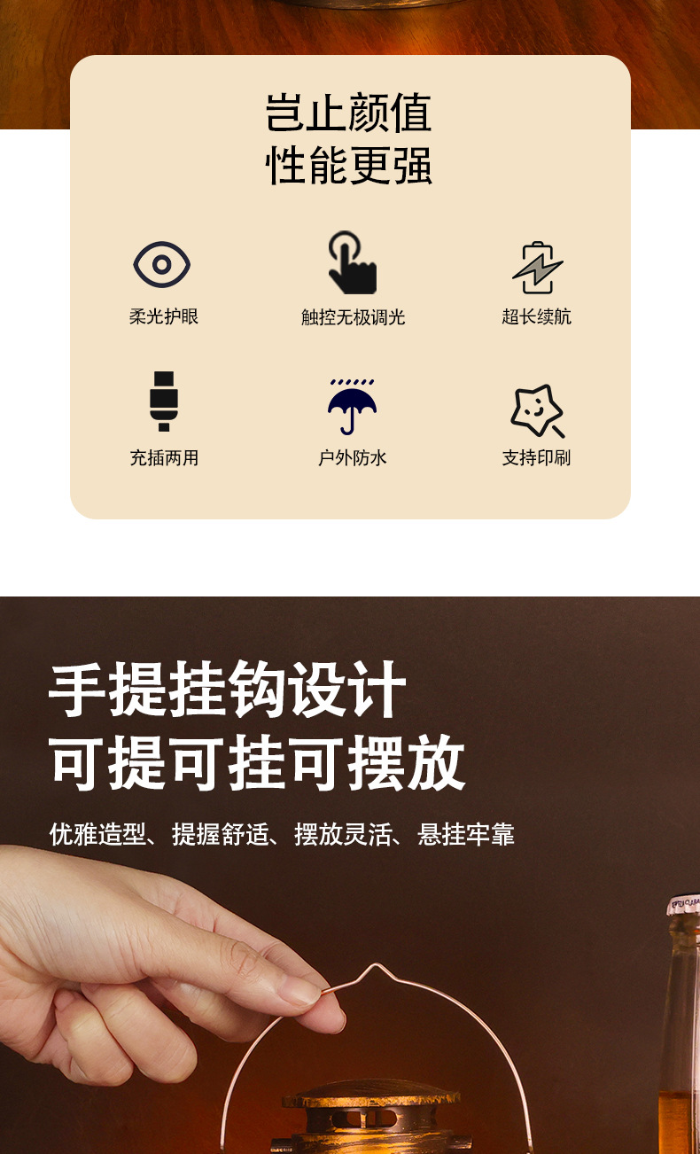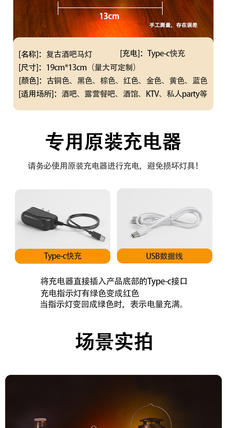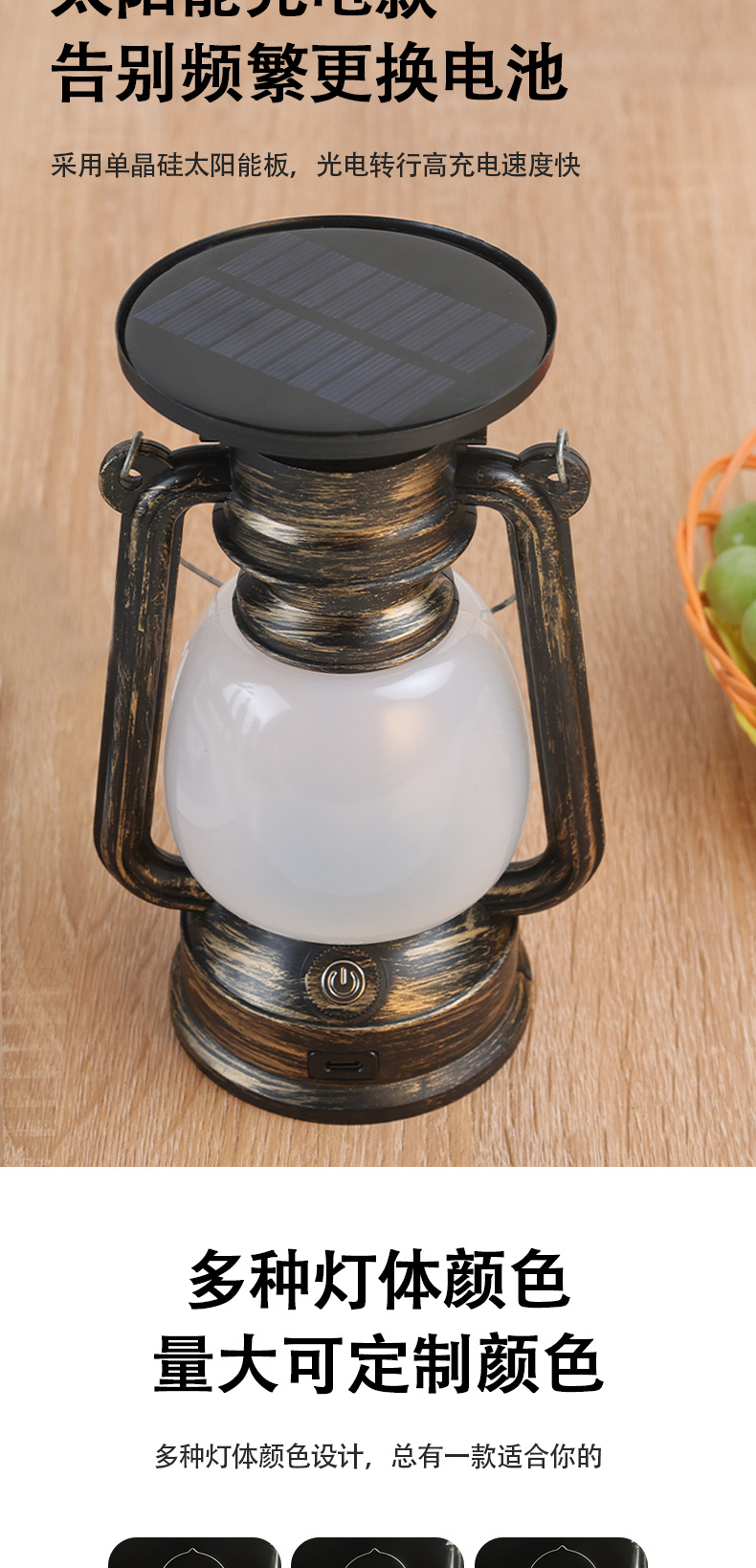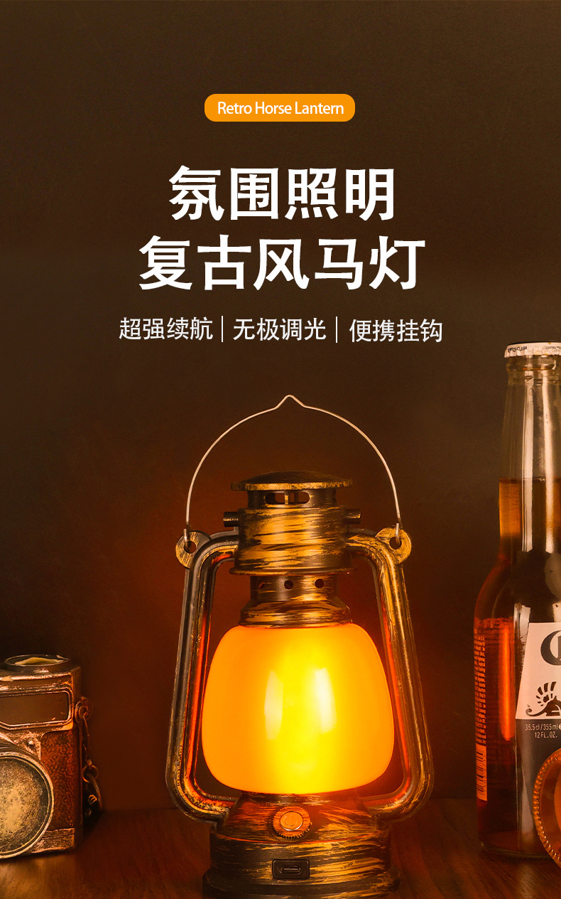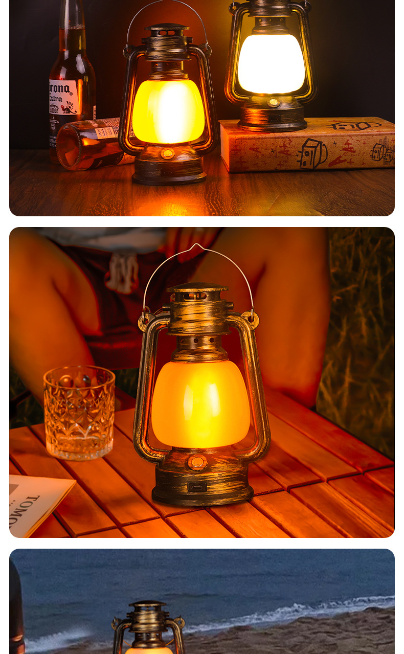 캠핑 테이블 램프 불꽃 빛 충전기 캠핑 테이블 램프 후크 충전기 청동 불꽃 말 램프 검은 불