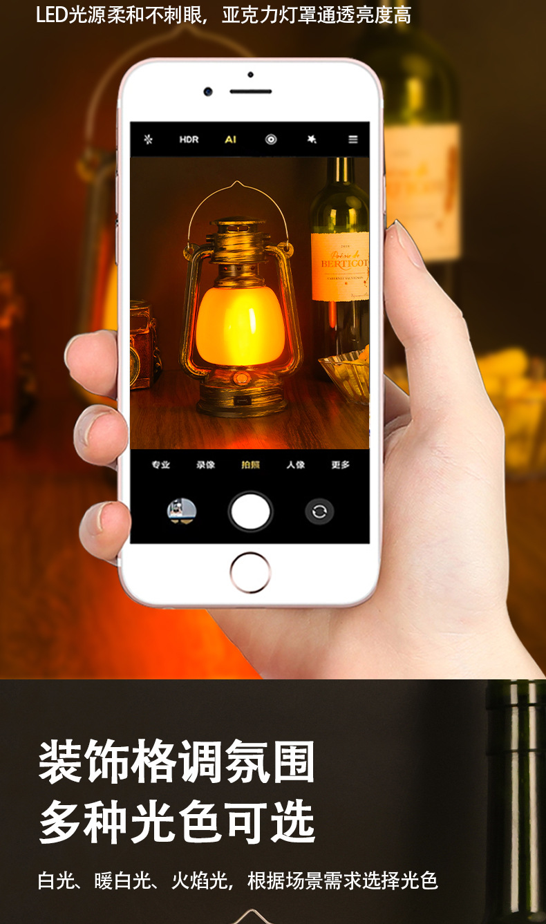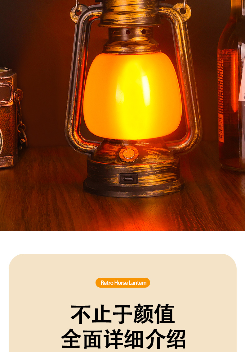 국경 led 충전 복고풍 등유 램프 휴대용 말 램프 비상 캠핑 텐트 램프 정원 램프 야외 캠핑 램프