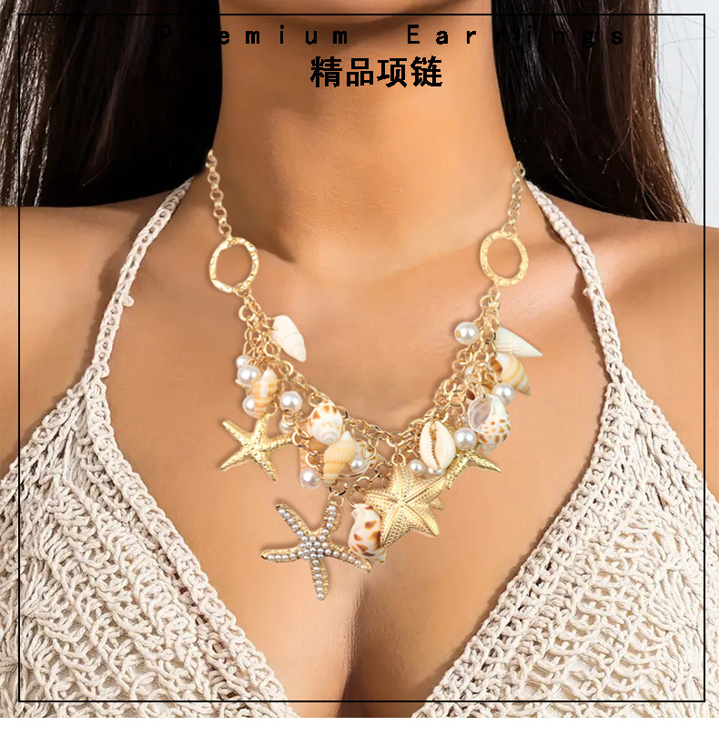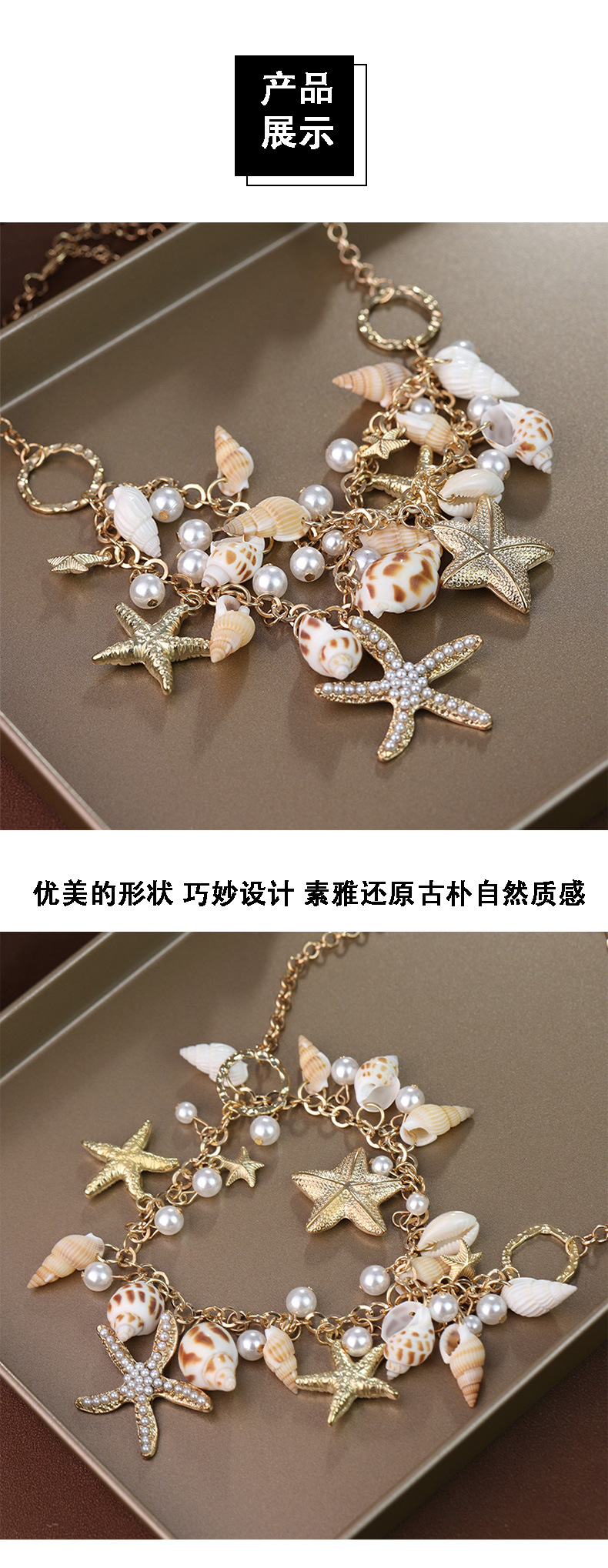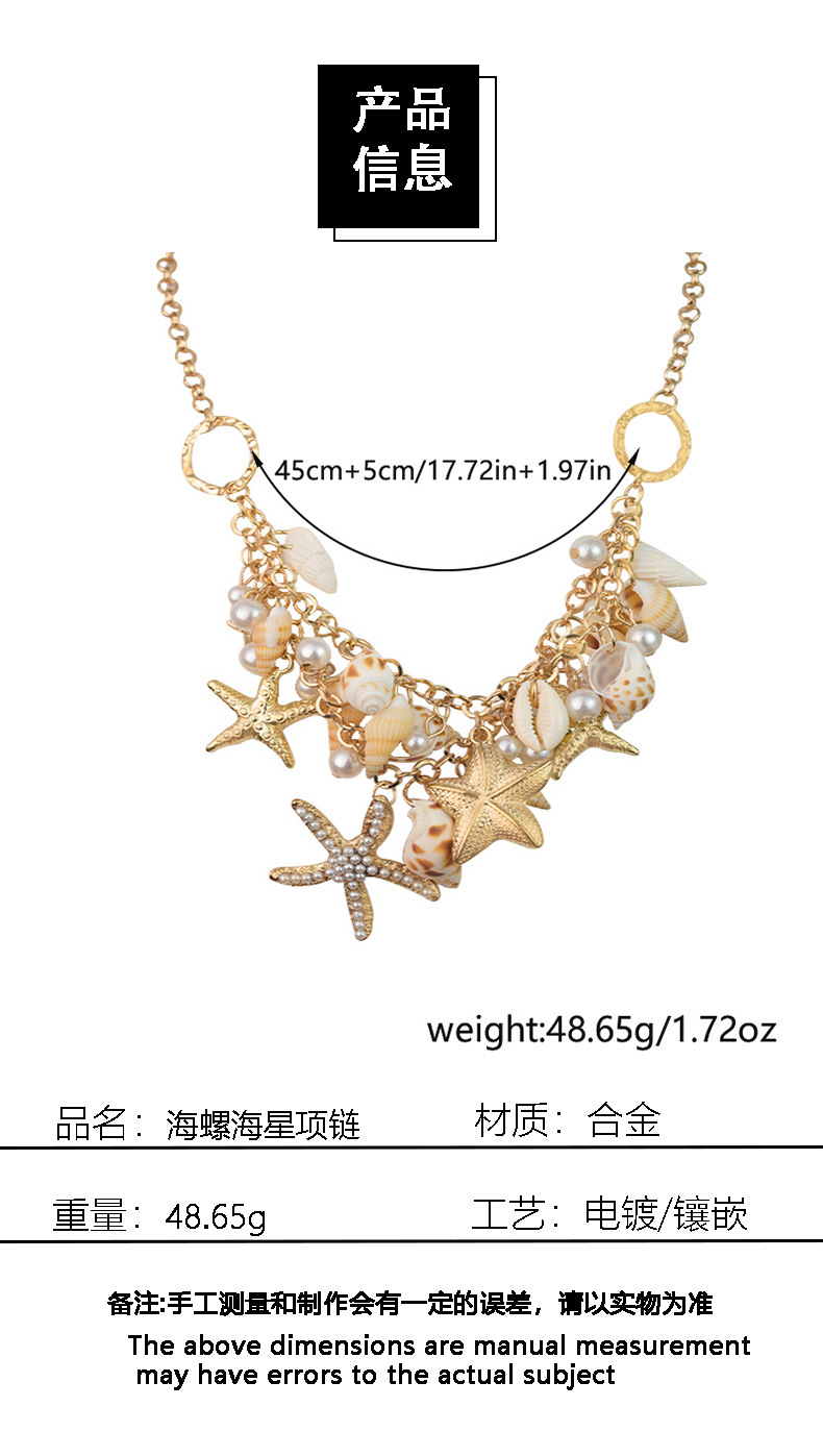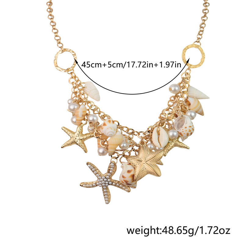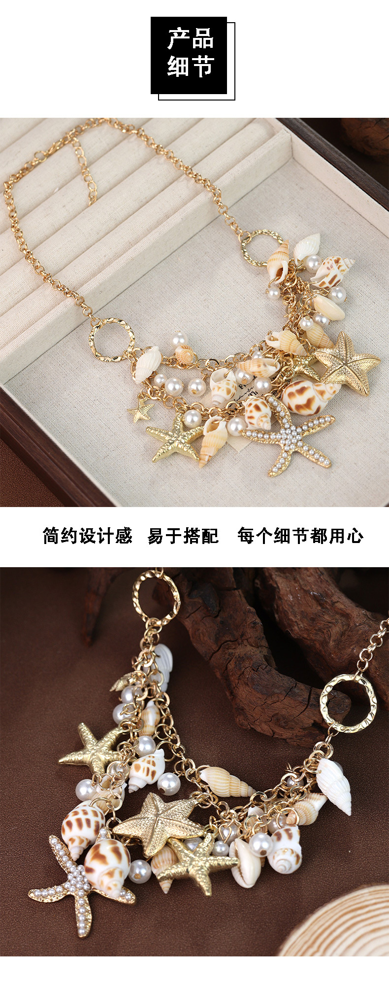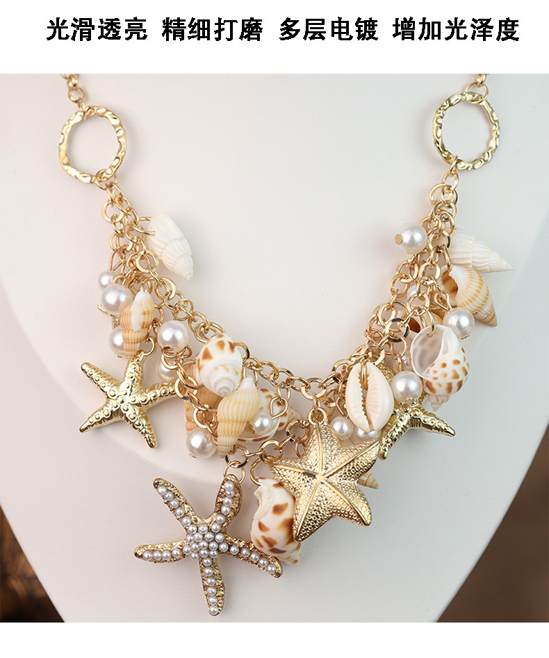 유럽풍 신상품 알리익스프레스 합금 펜던트 도금 유럽풍 체인 여성용 소라 불가사리 조개 목걸이 쇄골 장식