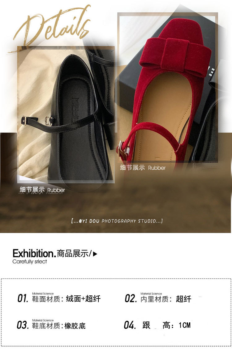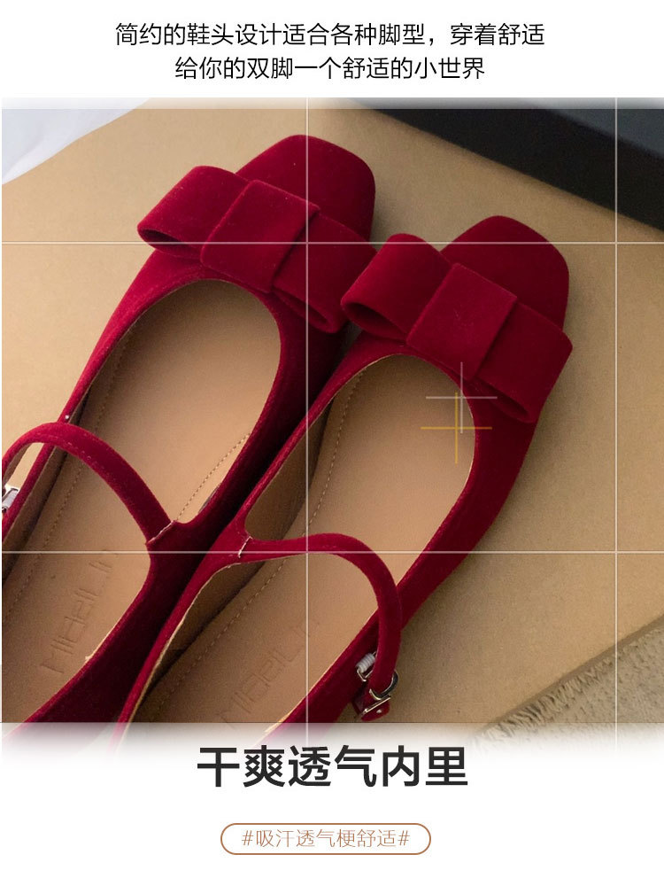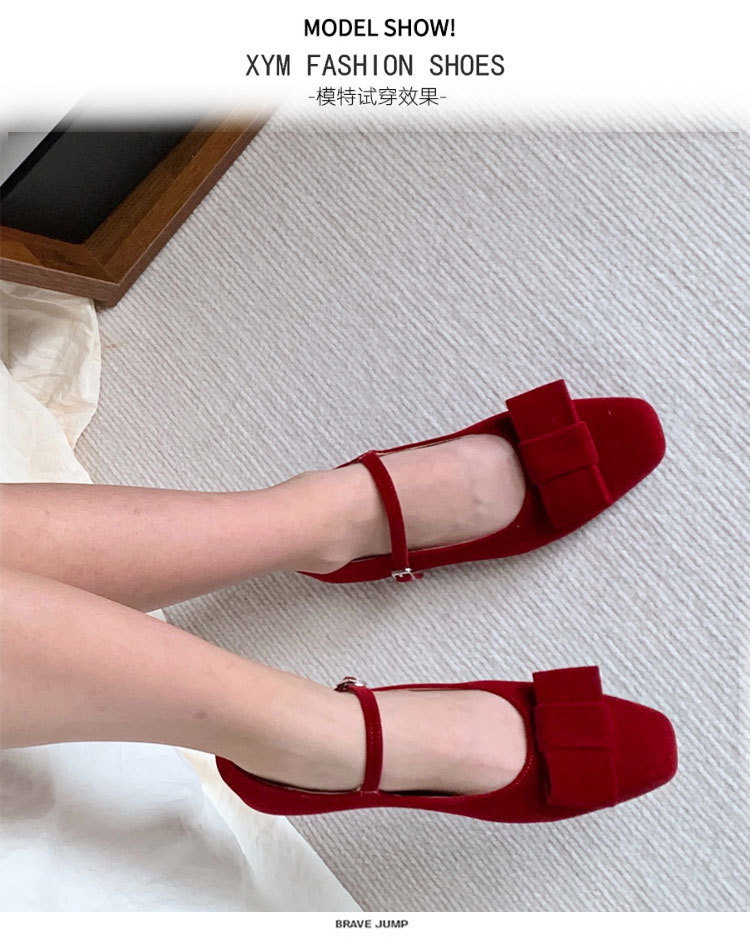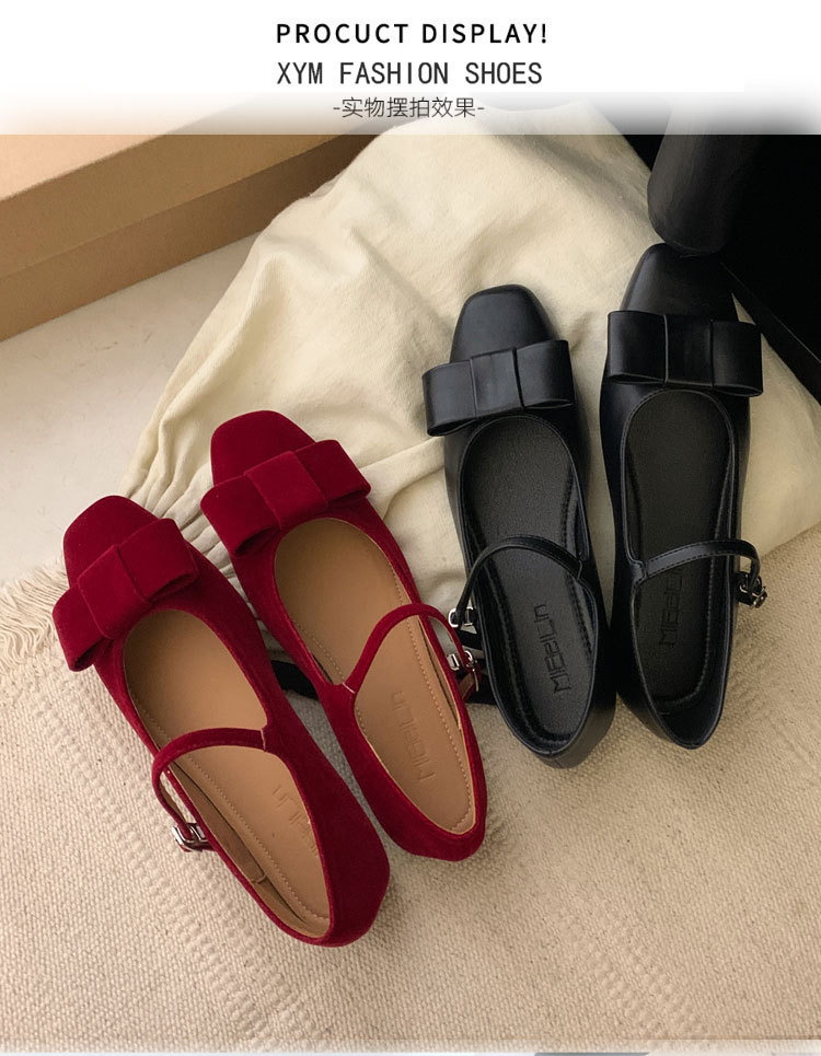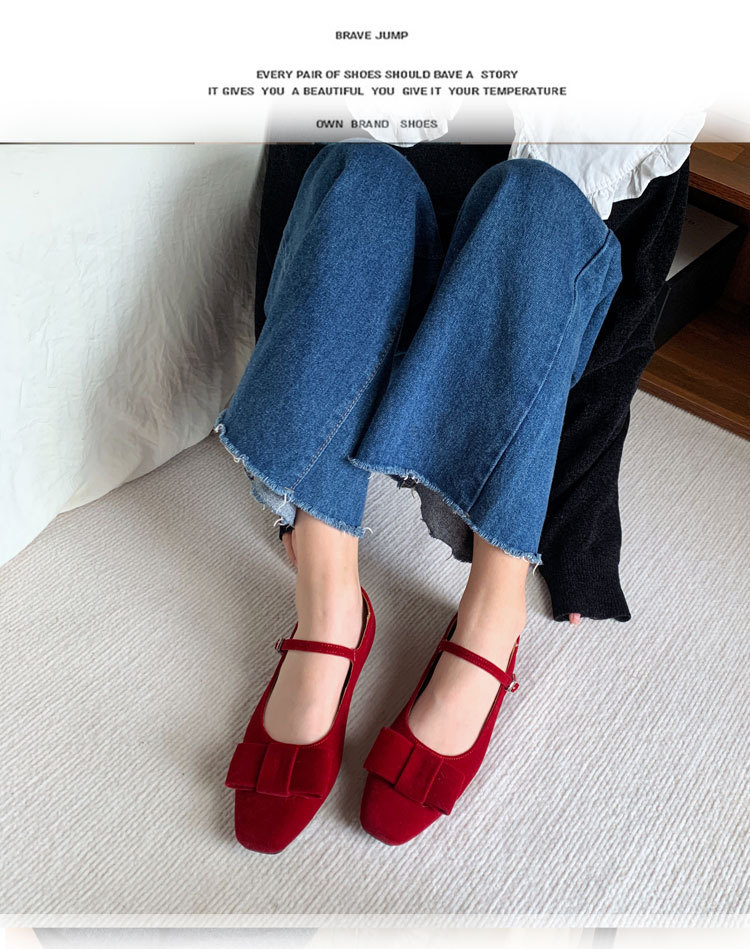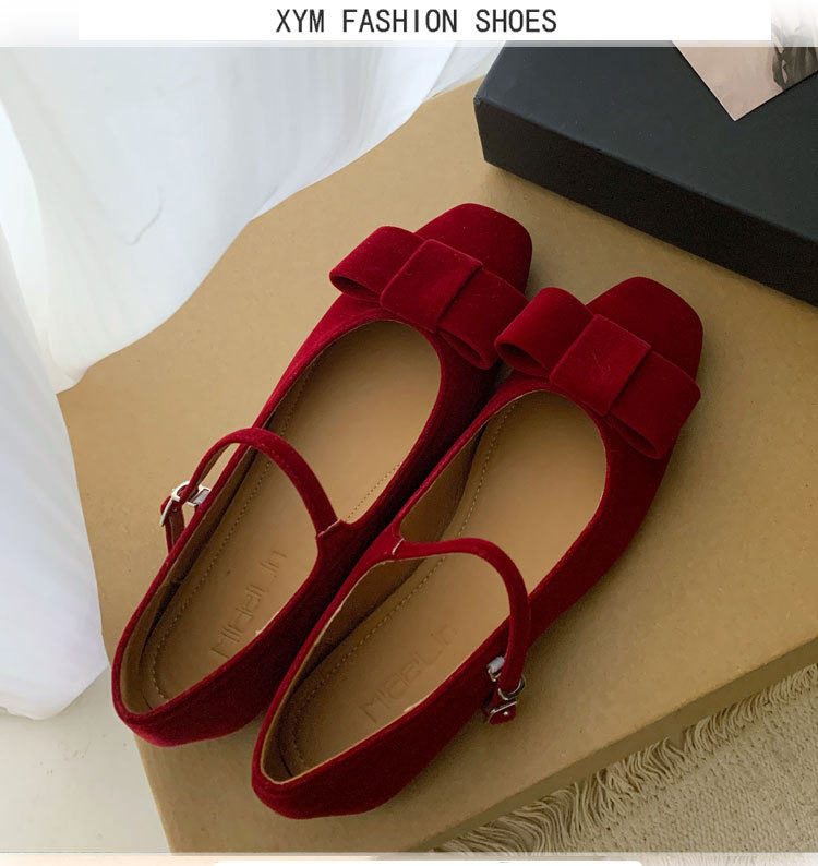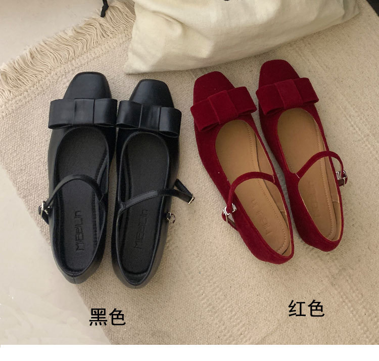여성을위한 프렌치 벨벳 메리 제인 신발 2025 봄 새로운 스타일 보우 스퀘어 토 기질 플랫 슈즈